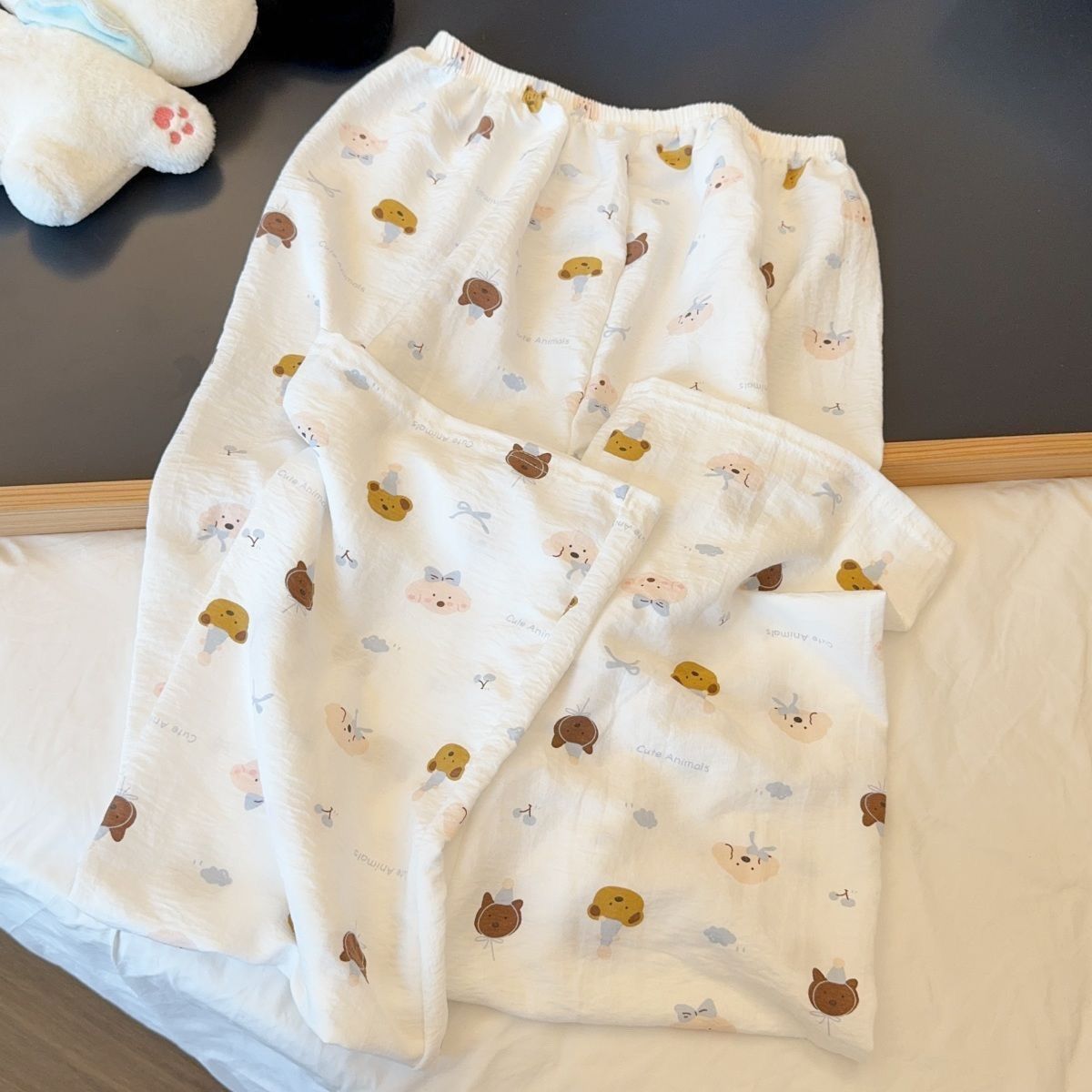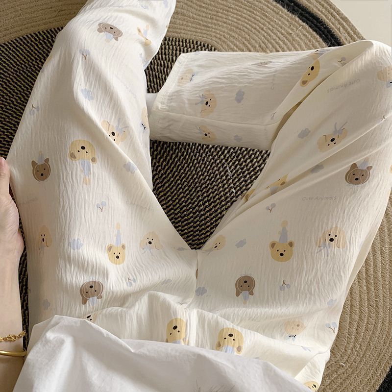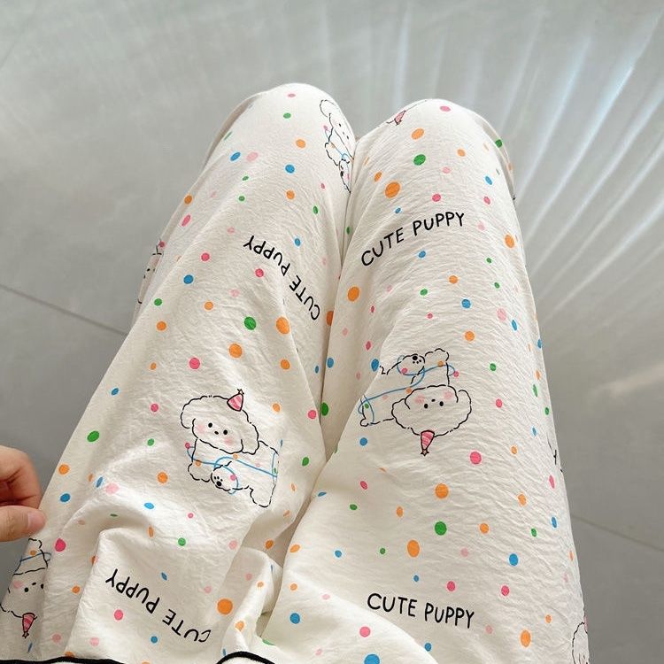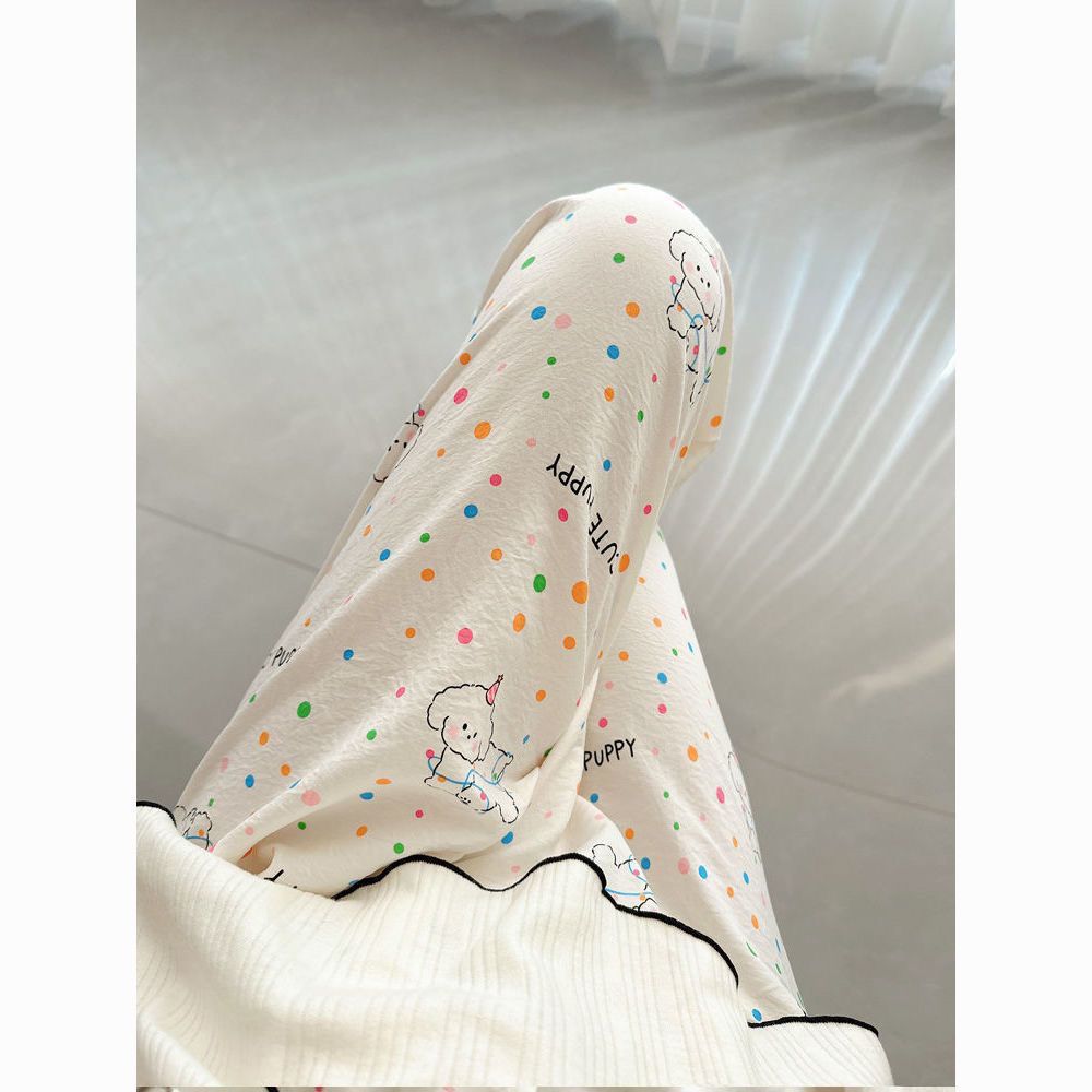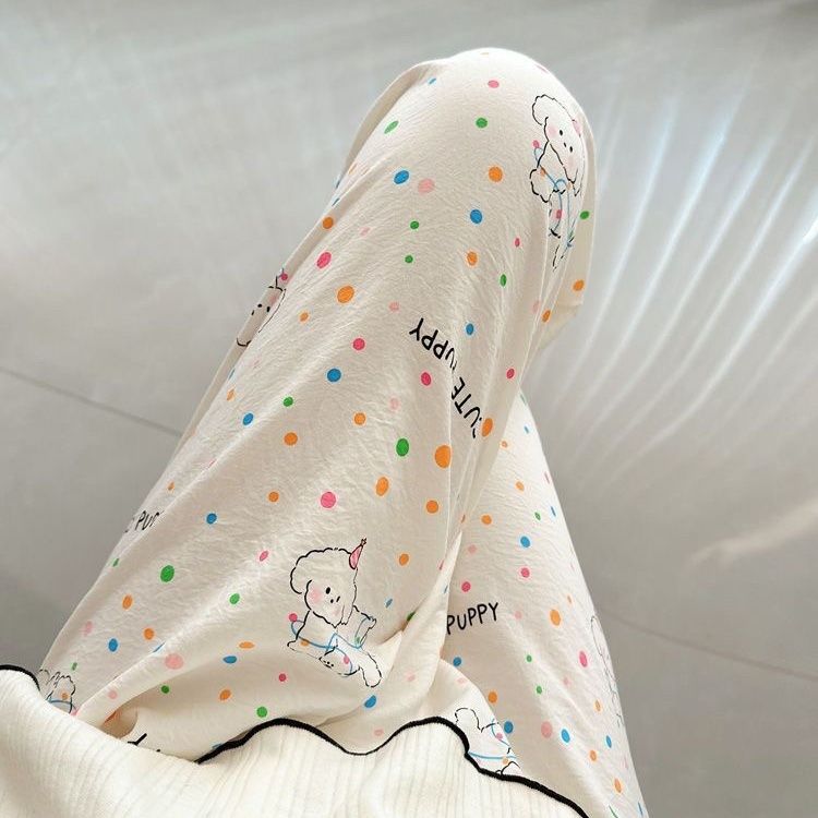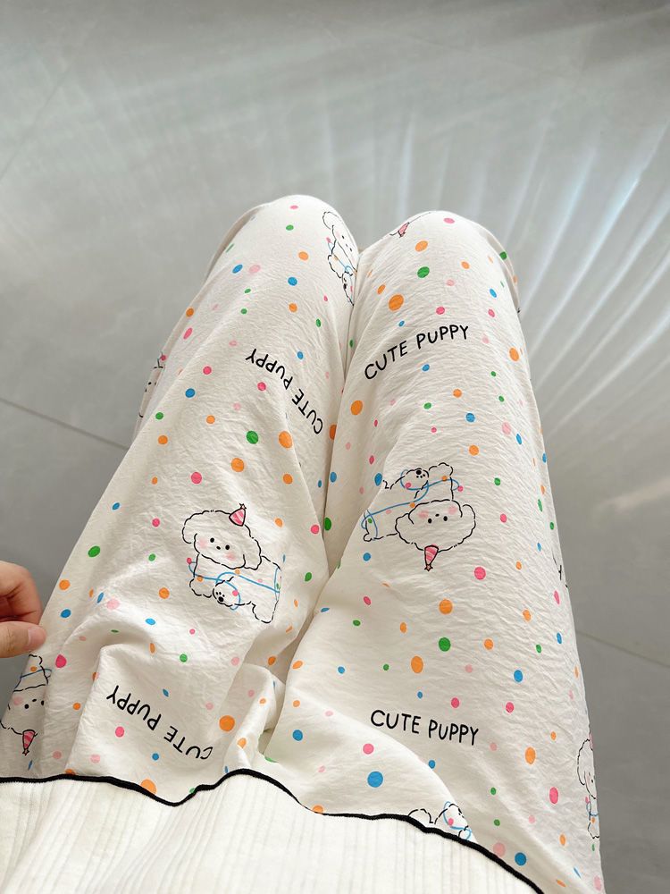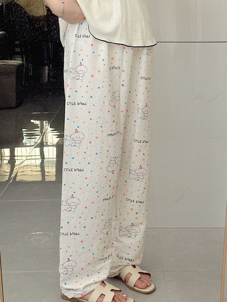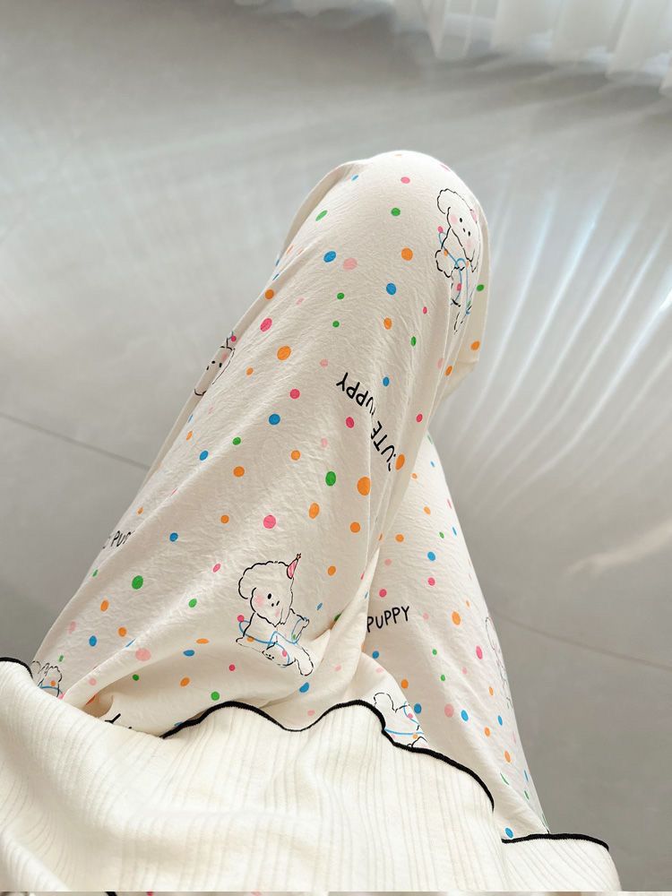 白色狗狗脚印睡裤女可外穿云朵棉夏季新款慵懒风春秋遛弯阔腿长裤