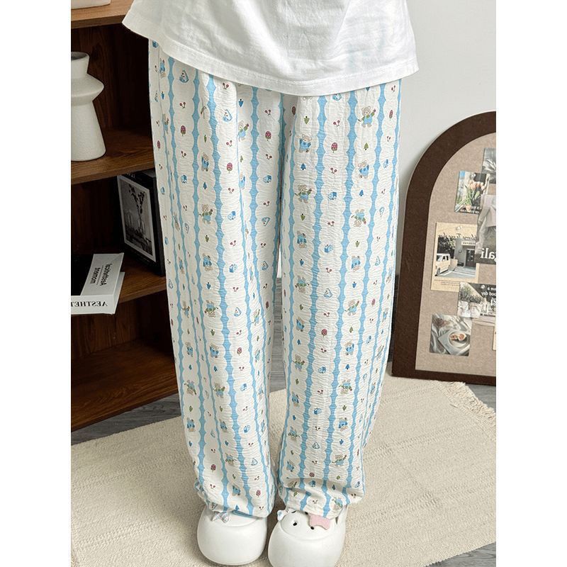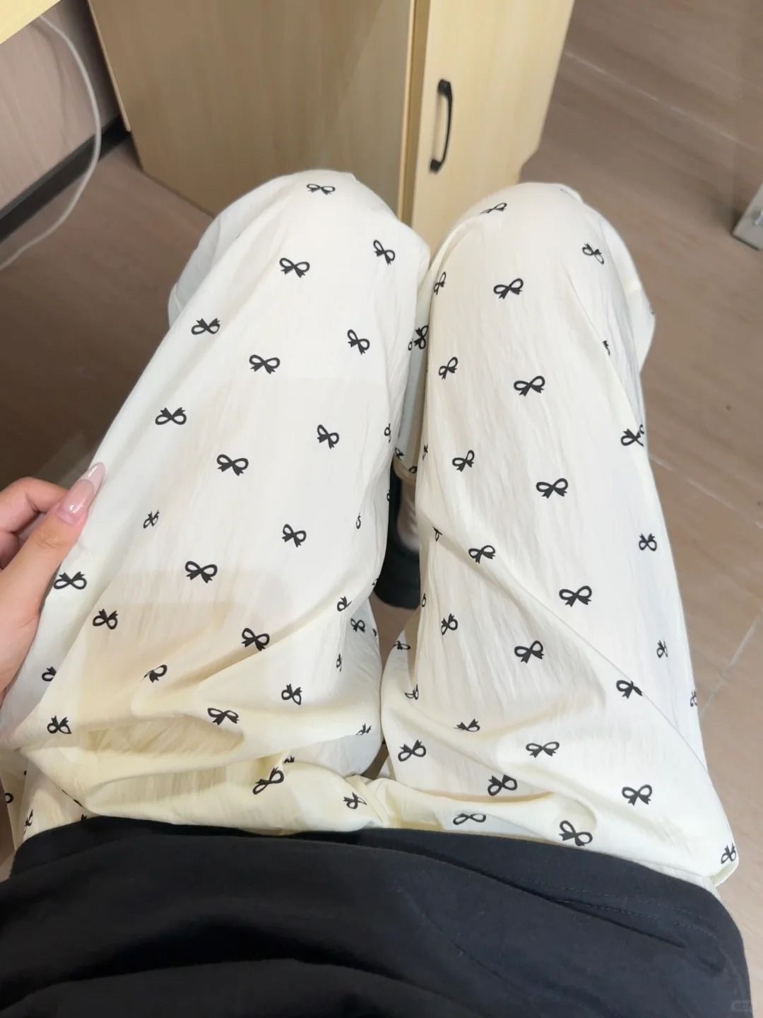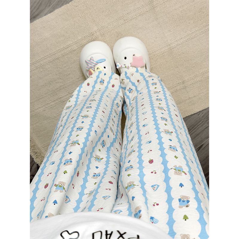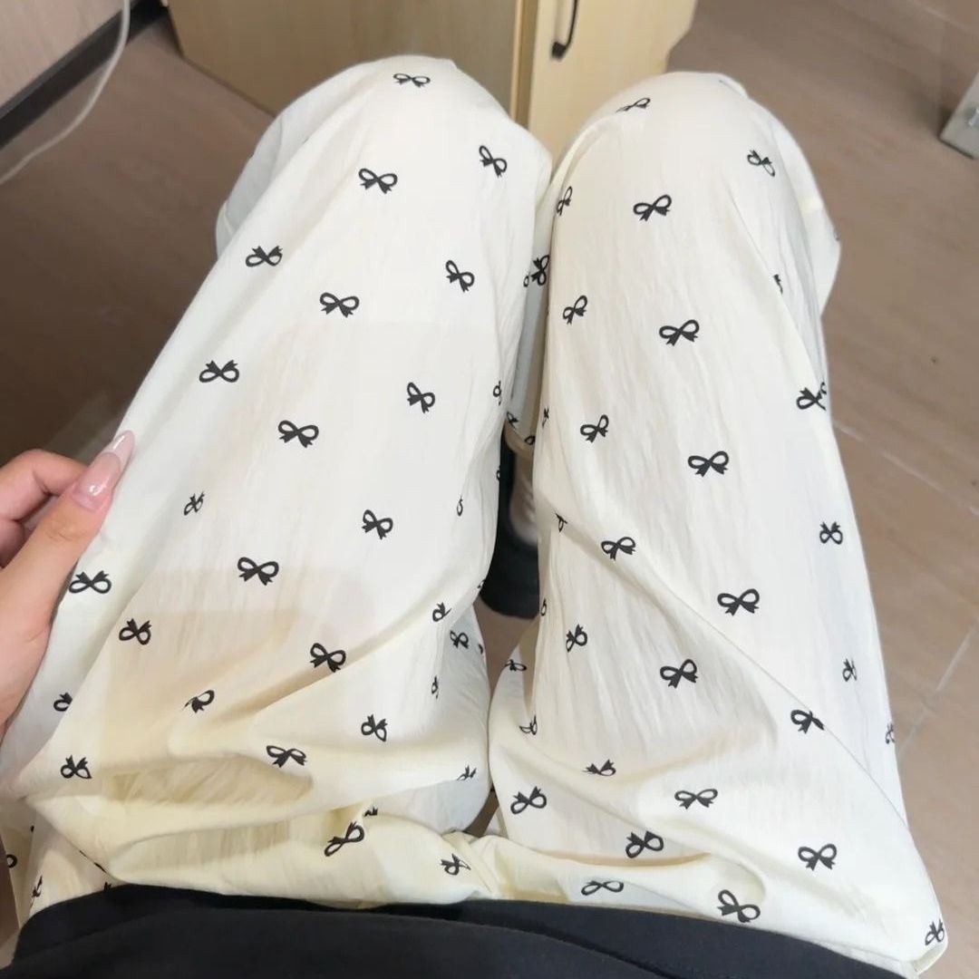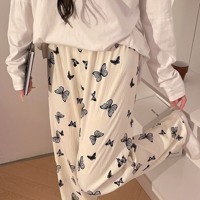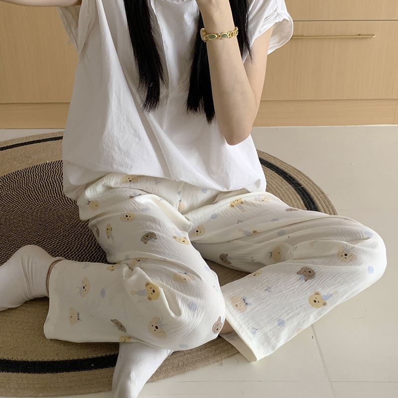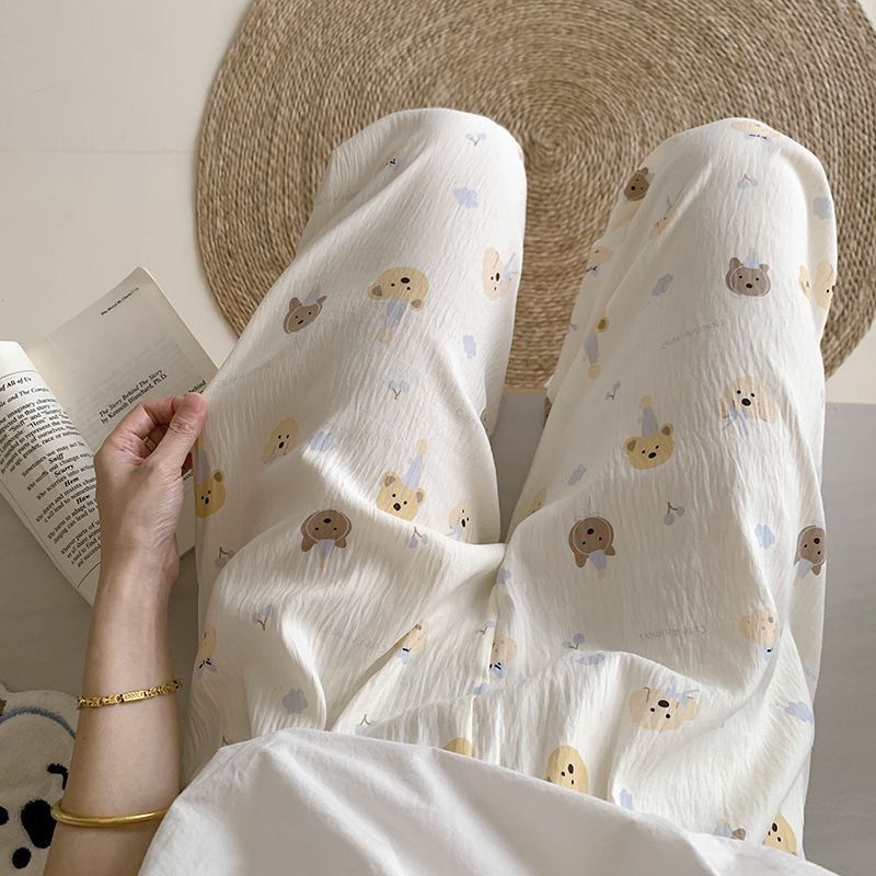 白色狗狗脚印睡裤女可外穿云朵棉夏季新款慵懒风春秋遛弯阔腿长裤
