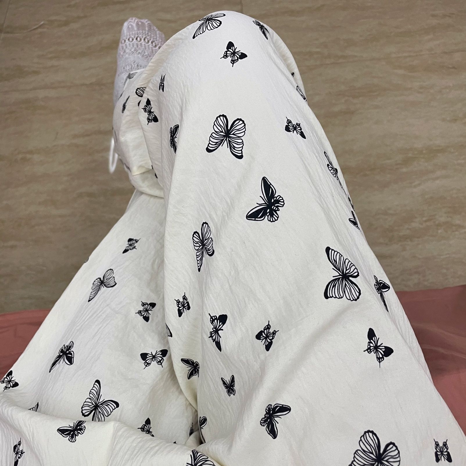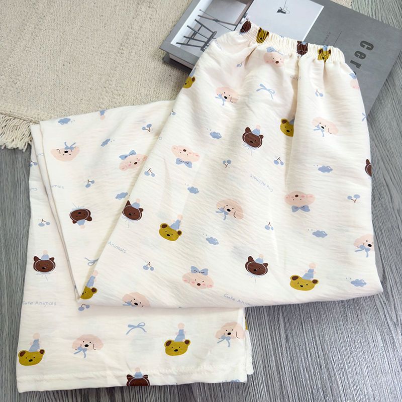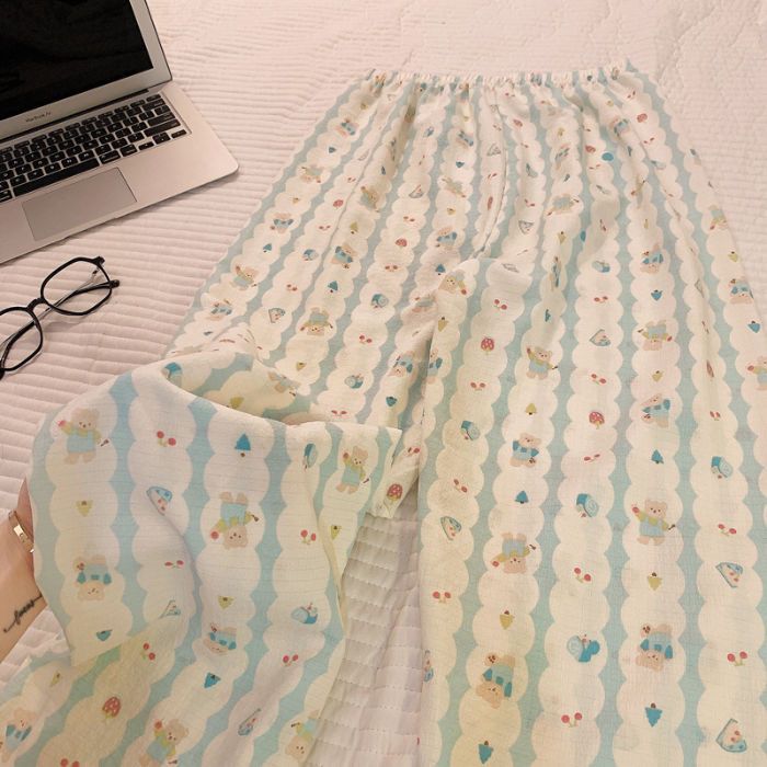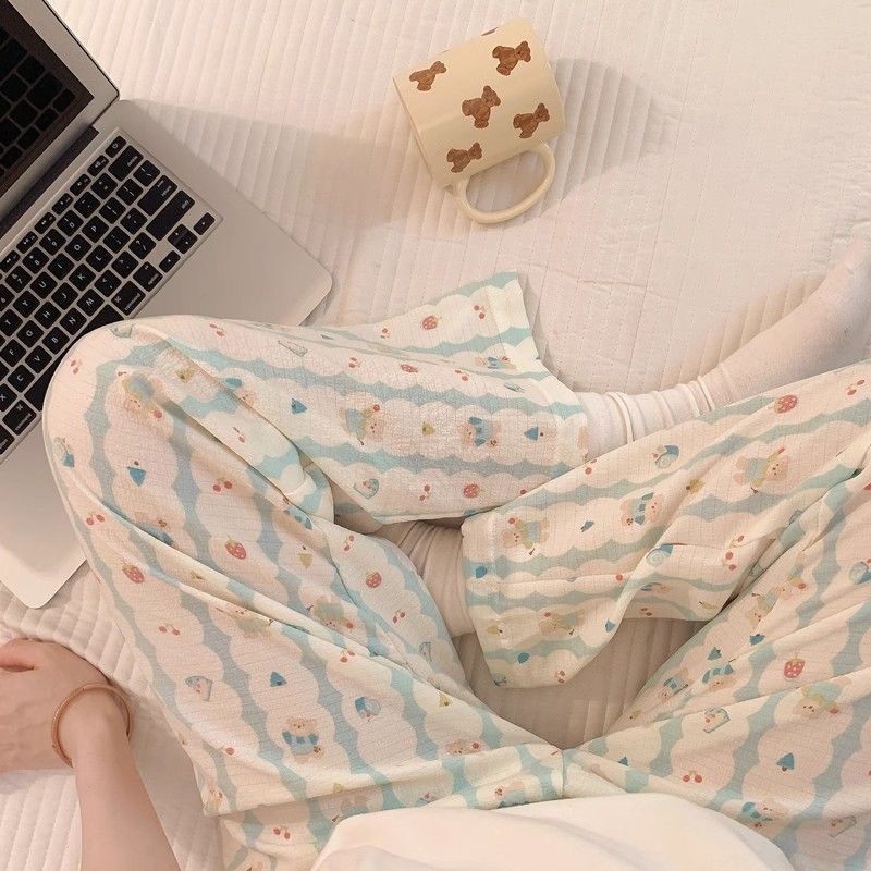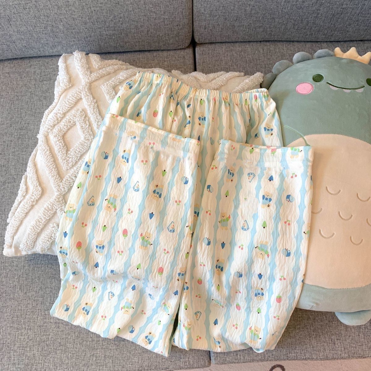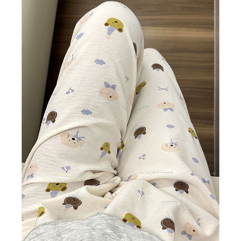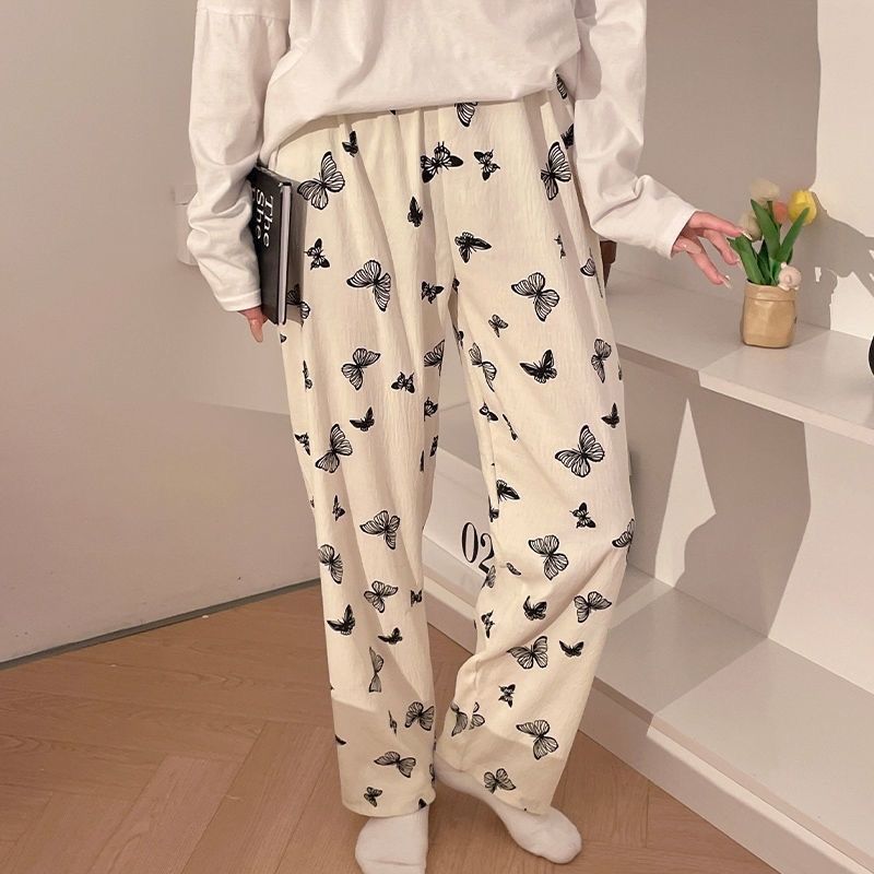 白色狗狗脚印睡裤女可外穿云朵棉夏季新款慵懒风春秋遛弯阔腿长裤
