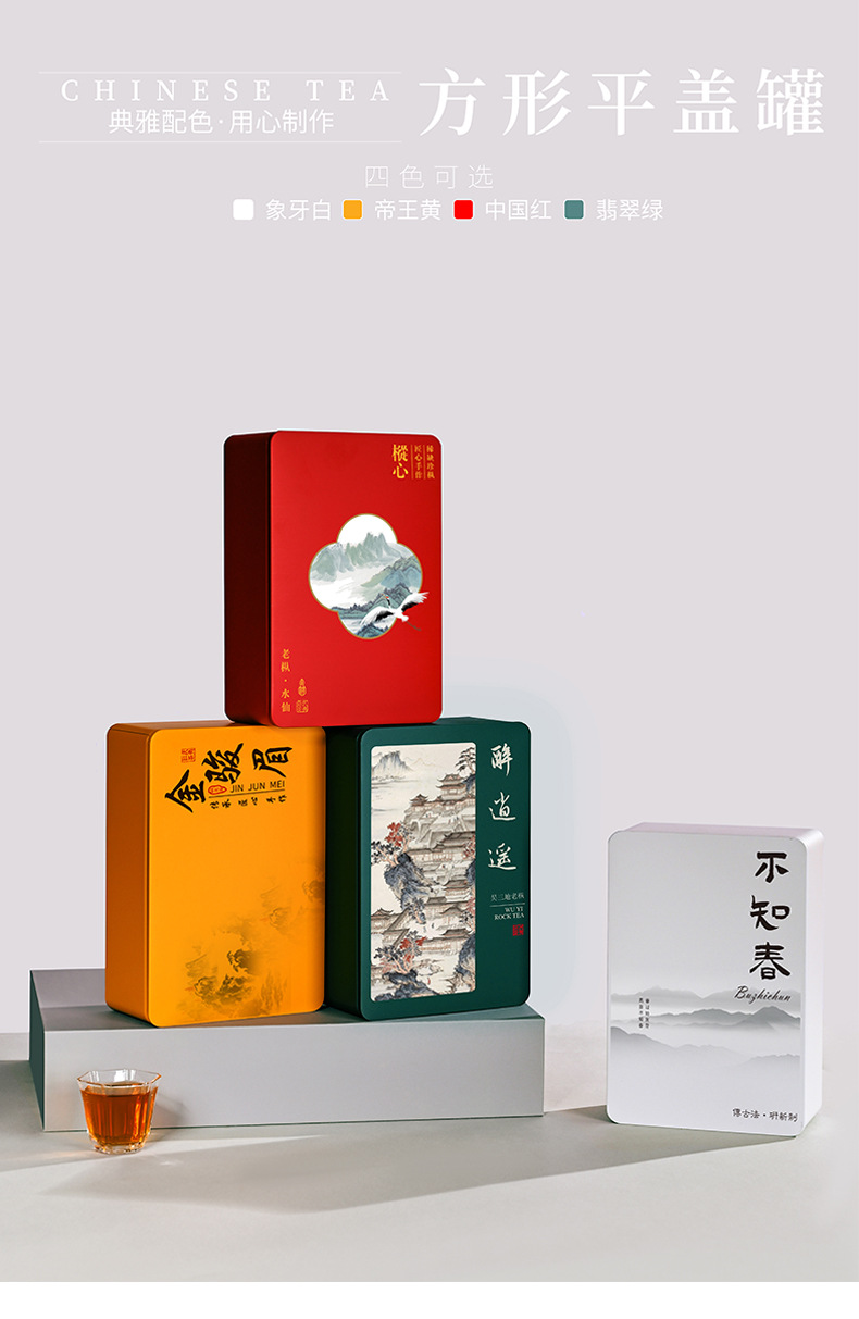 武夷肉桂马口铁茶叶长方罐铁罐二两12-15泡装茶叶包装盒铁盒批发