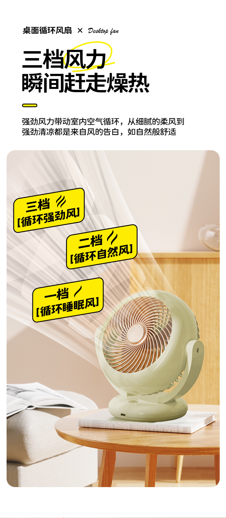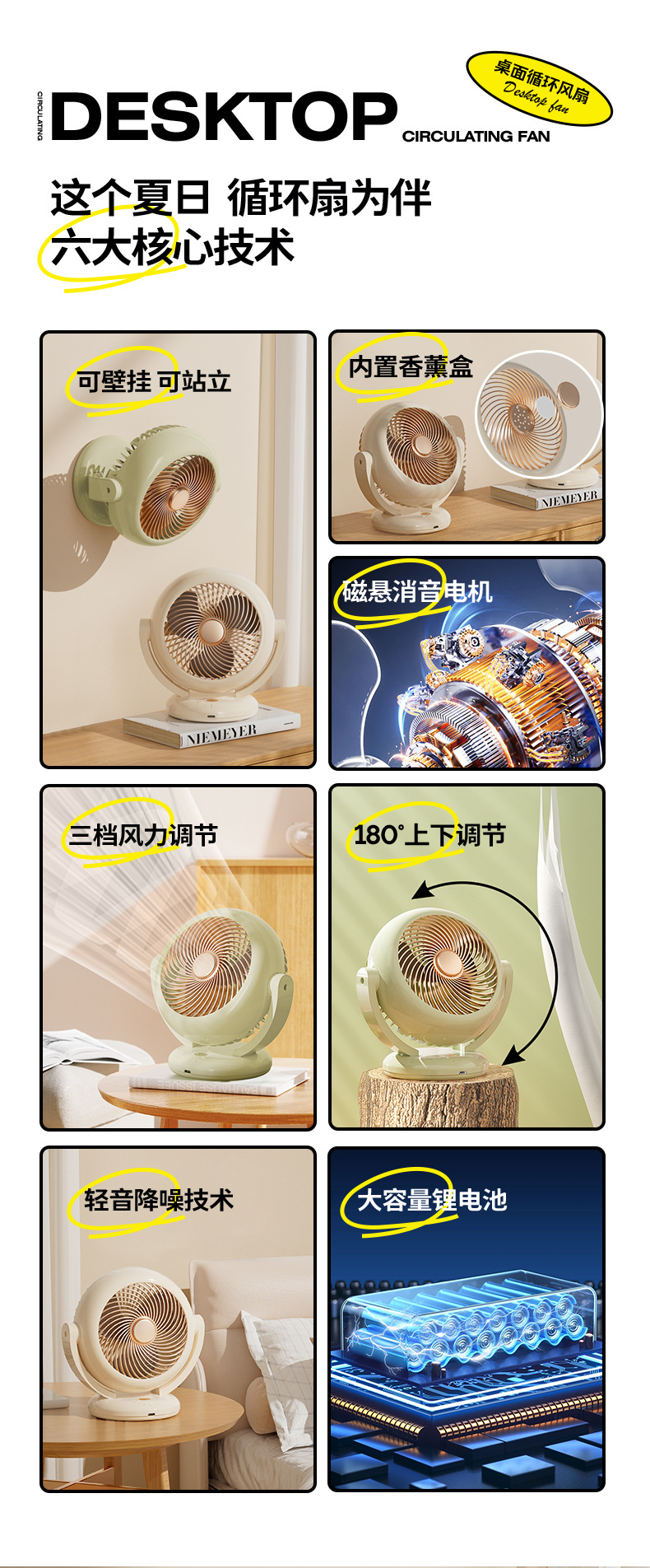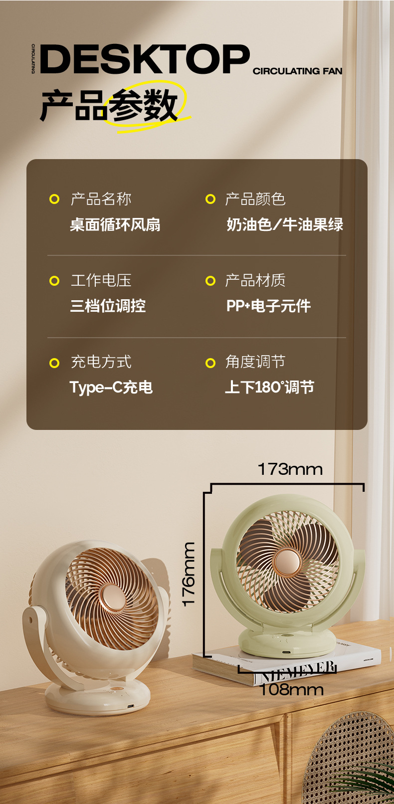 跨境新款带灯USB可充电5寸夹子风扇便携式循环摇头电风扇