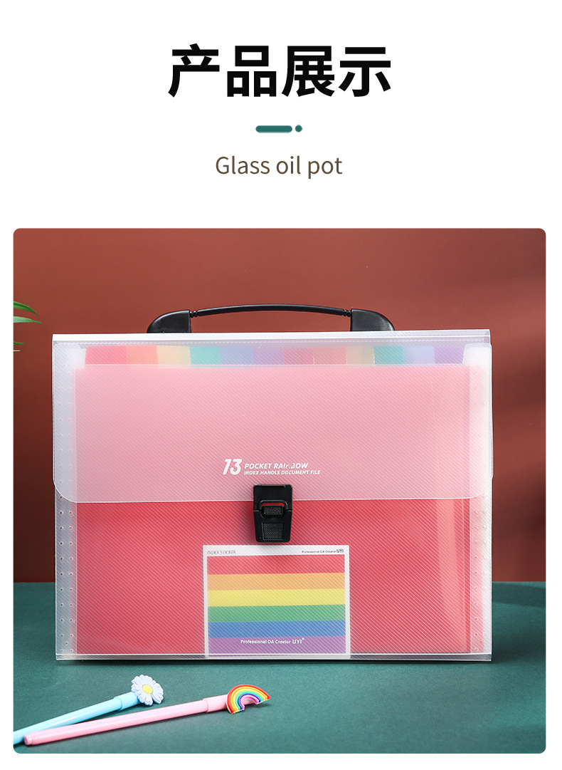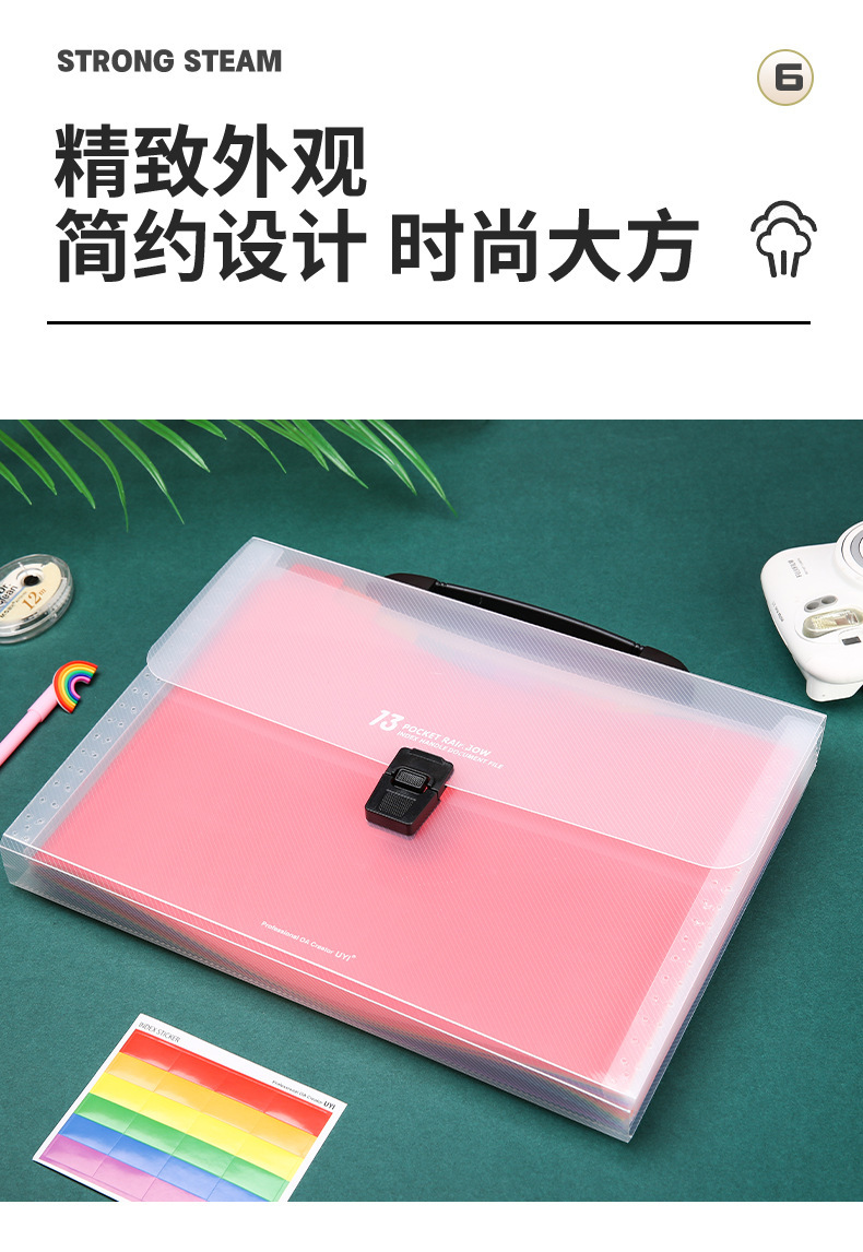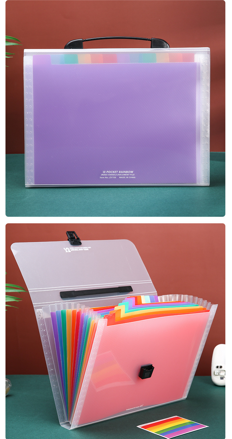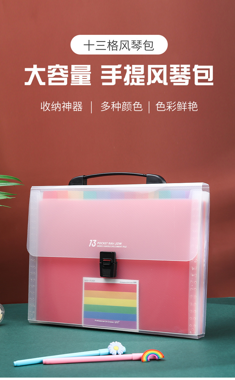 手提风琴包彩色分类加厚大容量送分类贴13格文件资料试卷收纳a4