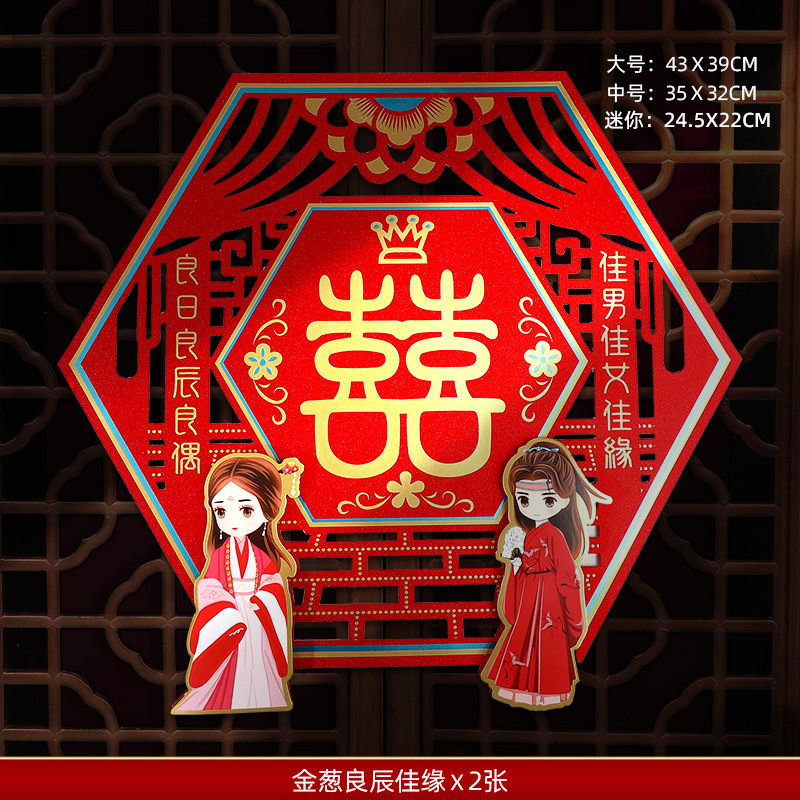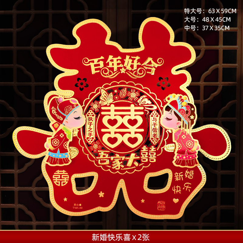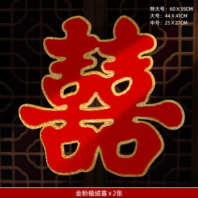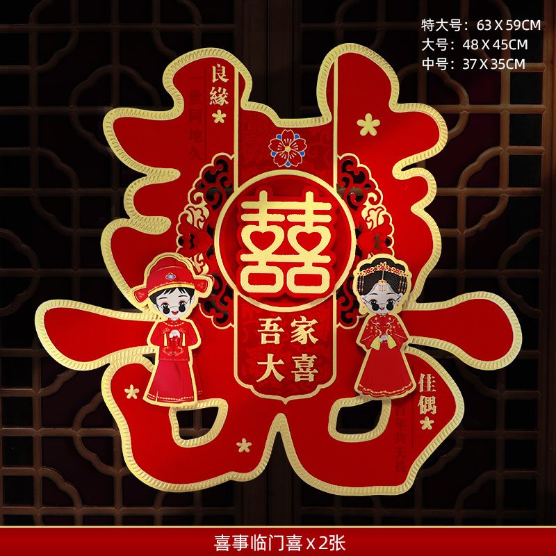 喜字贴门结婚专用大门窗户贴纸婚房布置卧室房门立体囍字装饰批发
