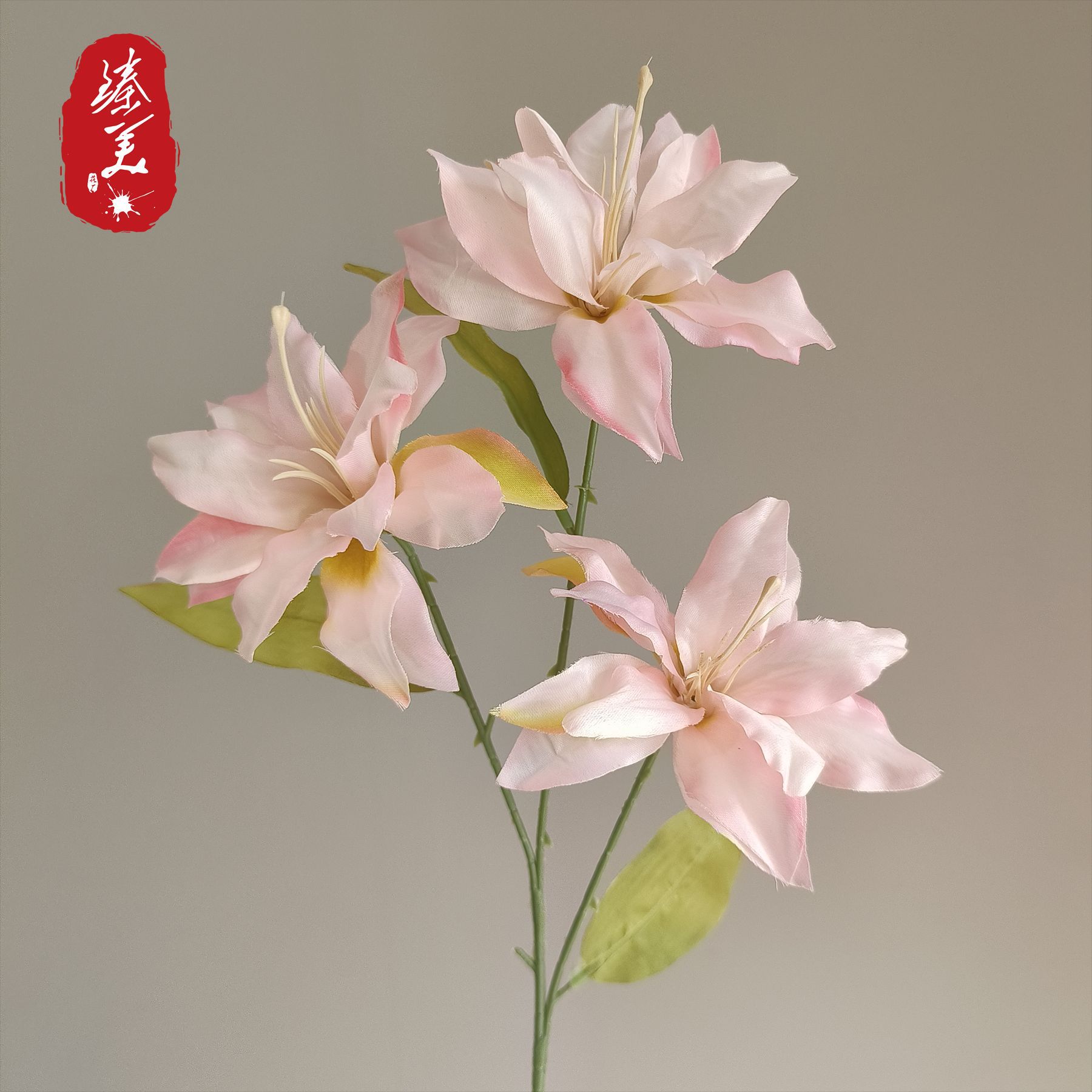 粉色仿真花婚庆用花玫瑰蝴蝶兰百合满天星绣球假花粉色仿真花批发