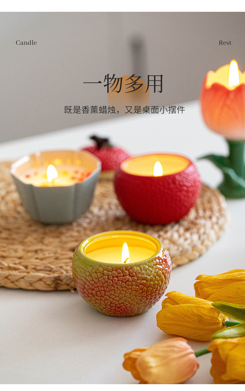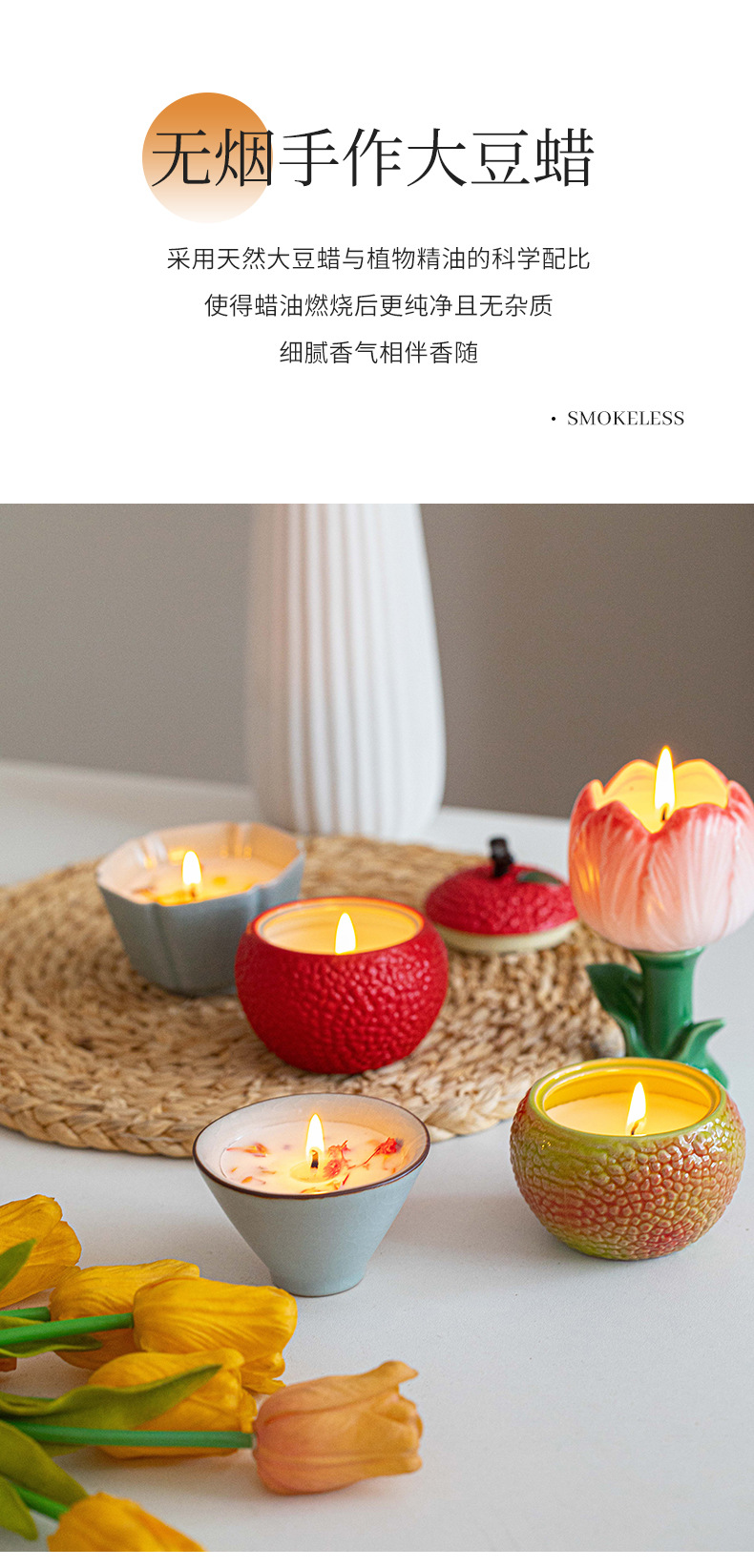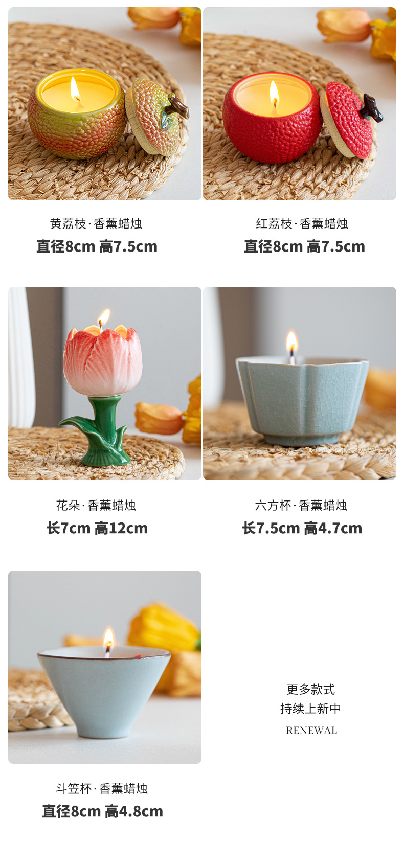 跨境爆款红荔枝陶瓷香薰蜡烛杯diy大豆蜡植物油家用氛围烛台器皿