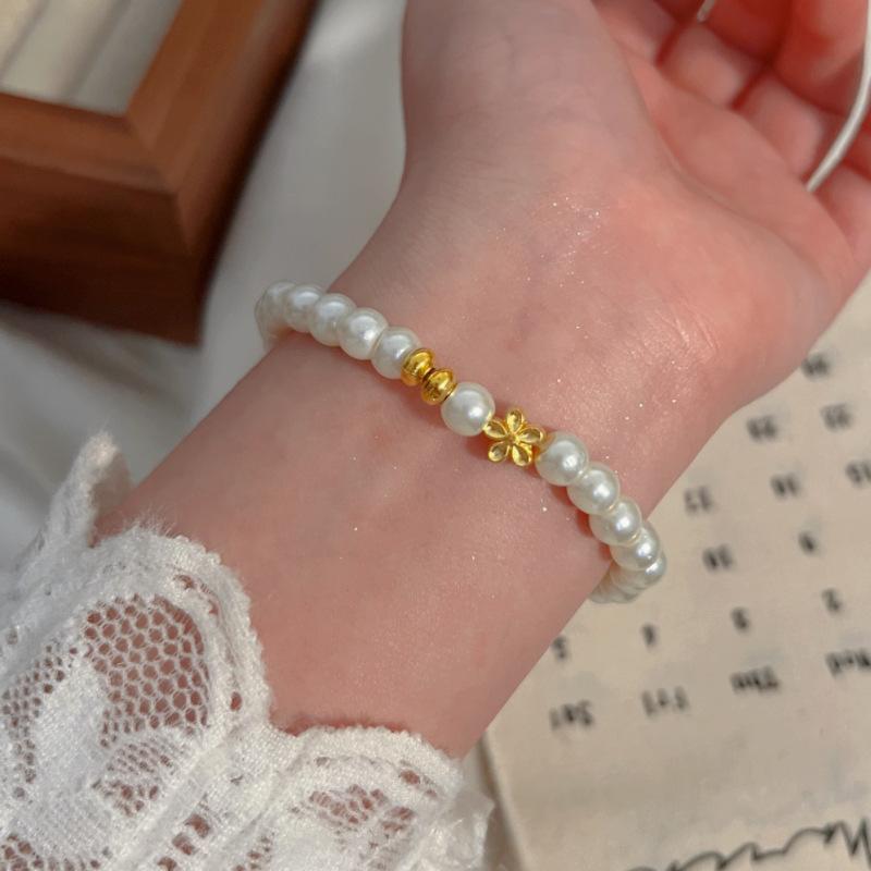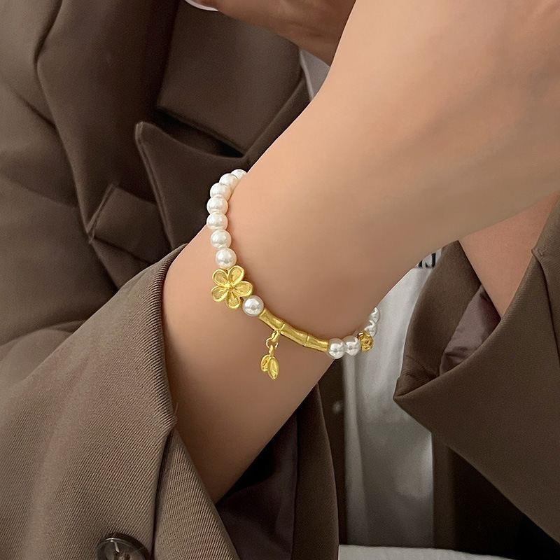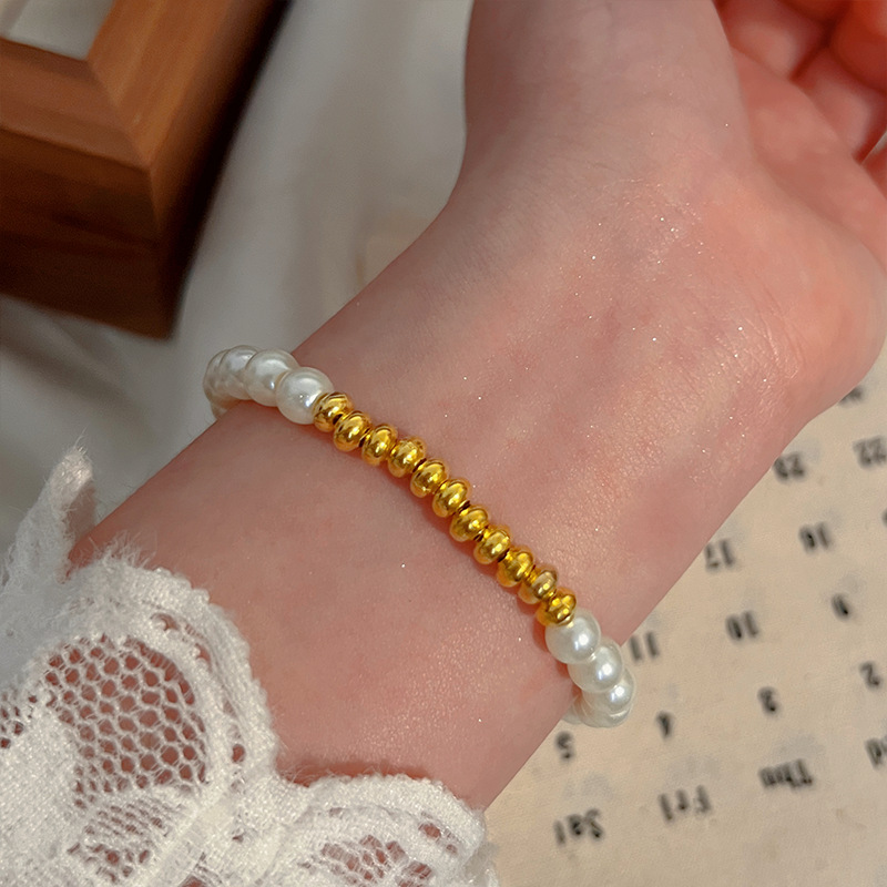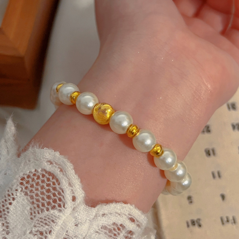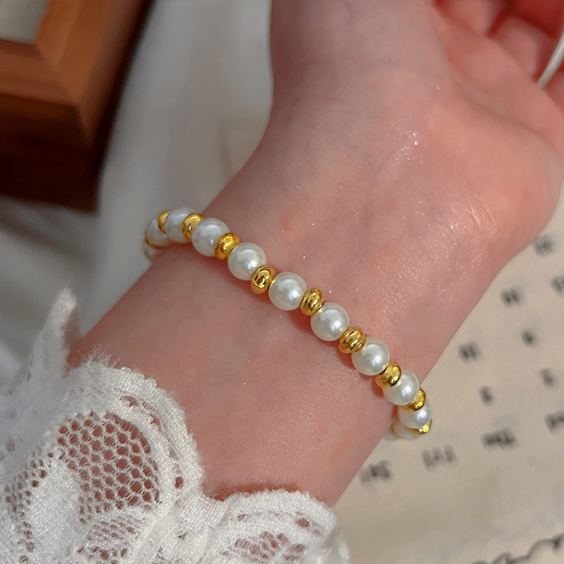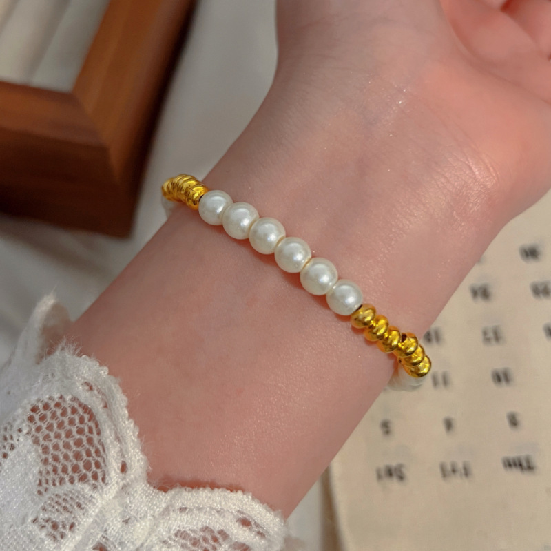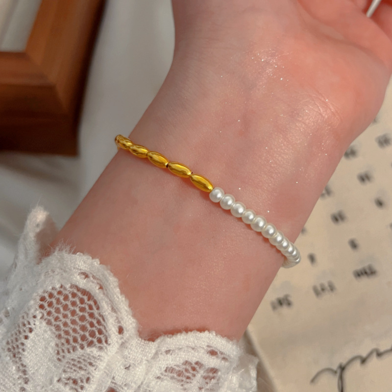 法式不规则异形珍珠手链手镯女小众轻奢精致时尚金色半镯手链配饰