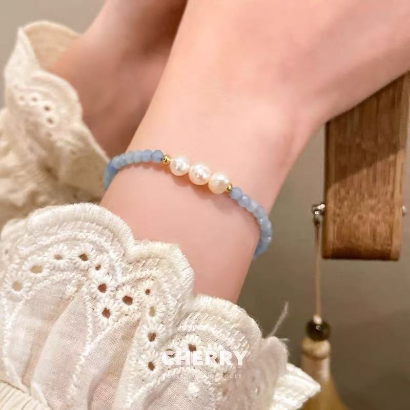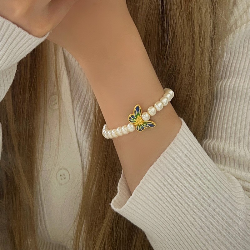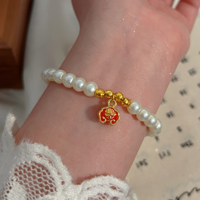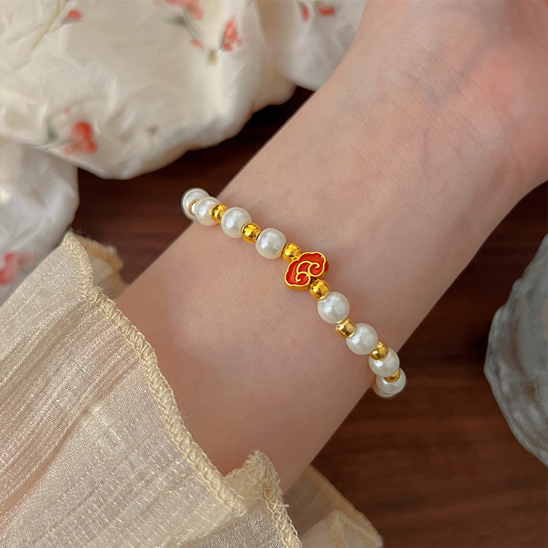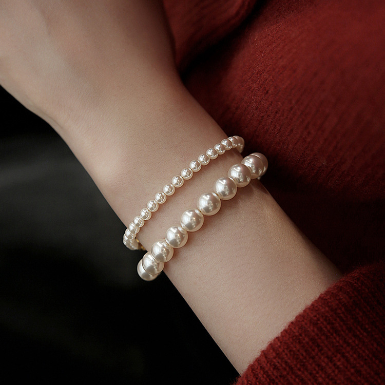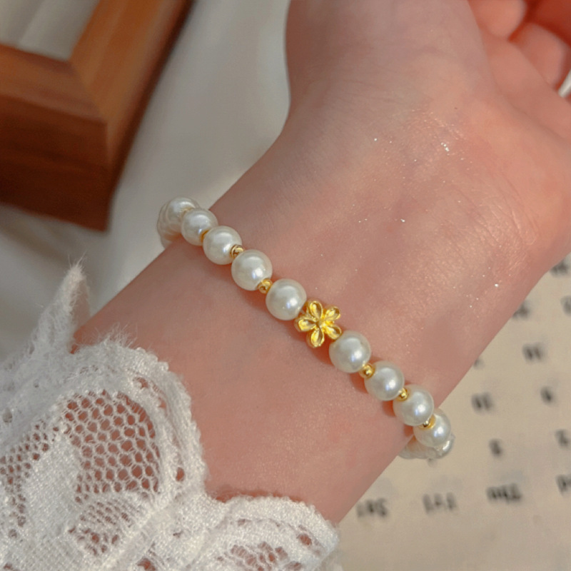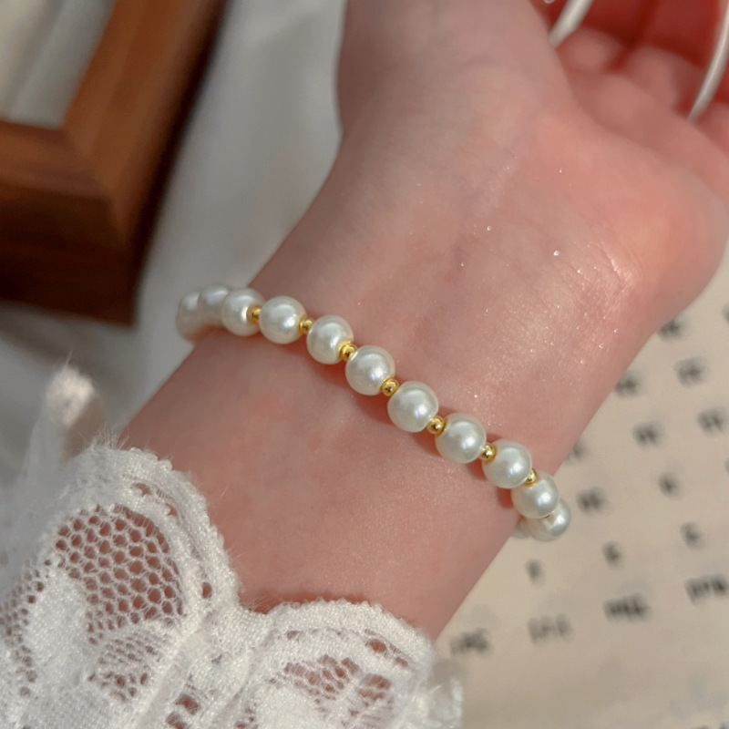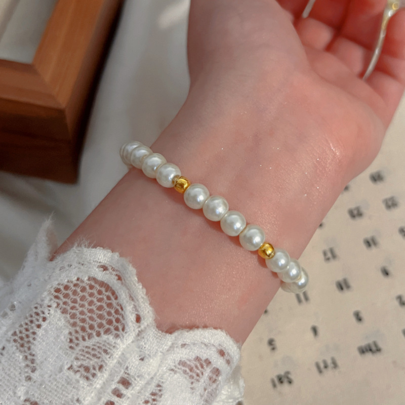 法式不规则异形珍珠手链手镯女小众轻奢精致时尚金色半镯手链配饰