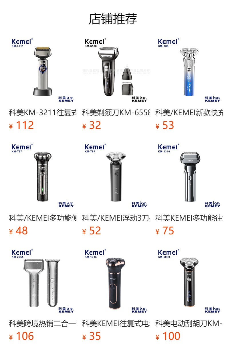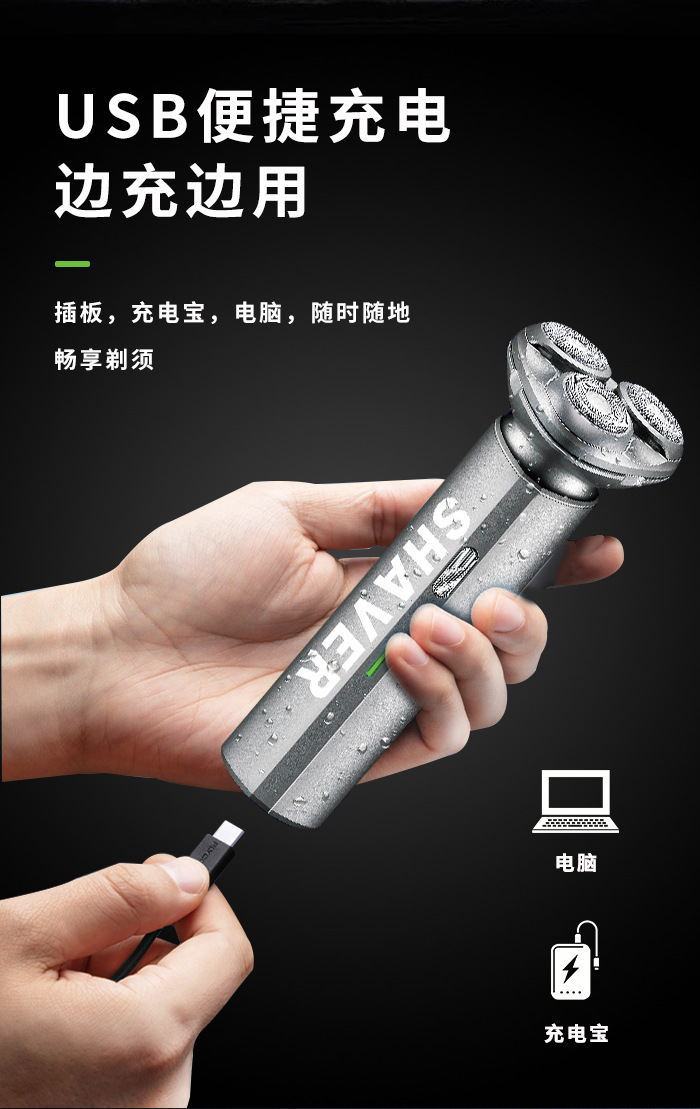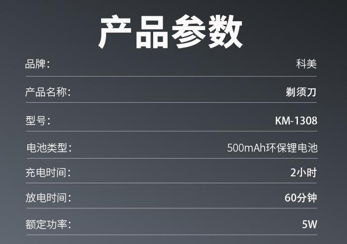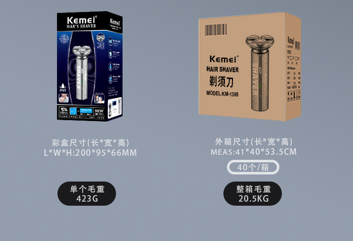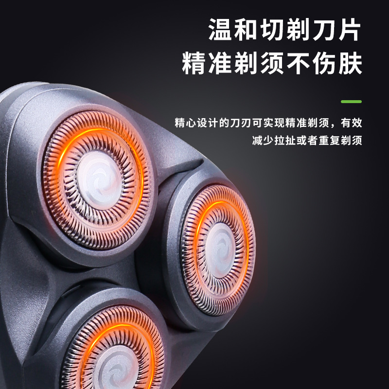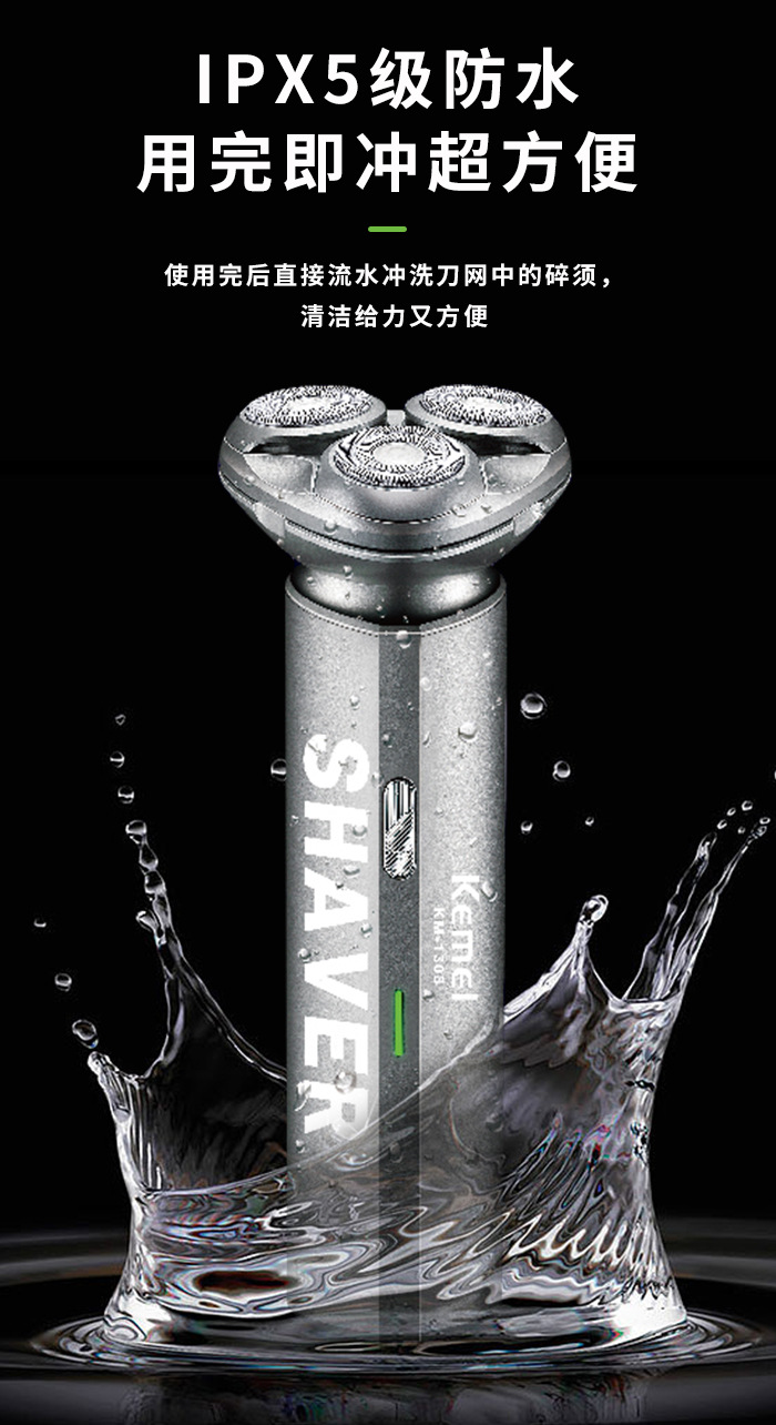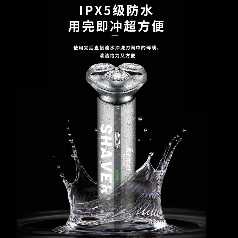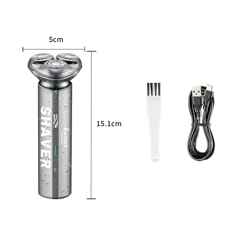 科美KM-1308新款浮动三刀头刮胡刀USB便携式防水剃须刀电动胡须刀