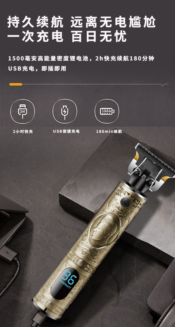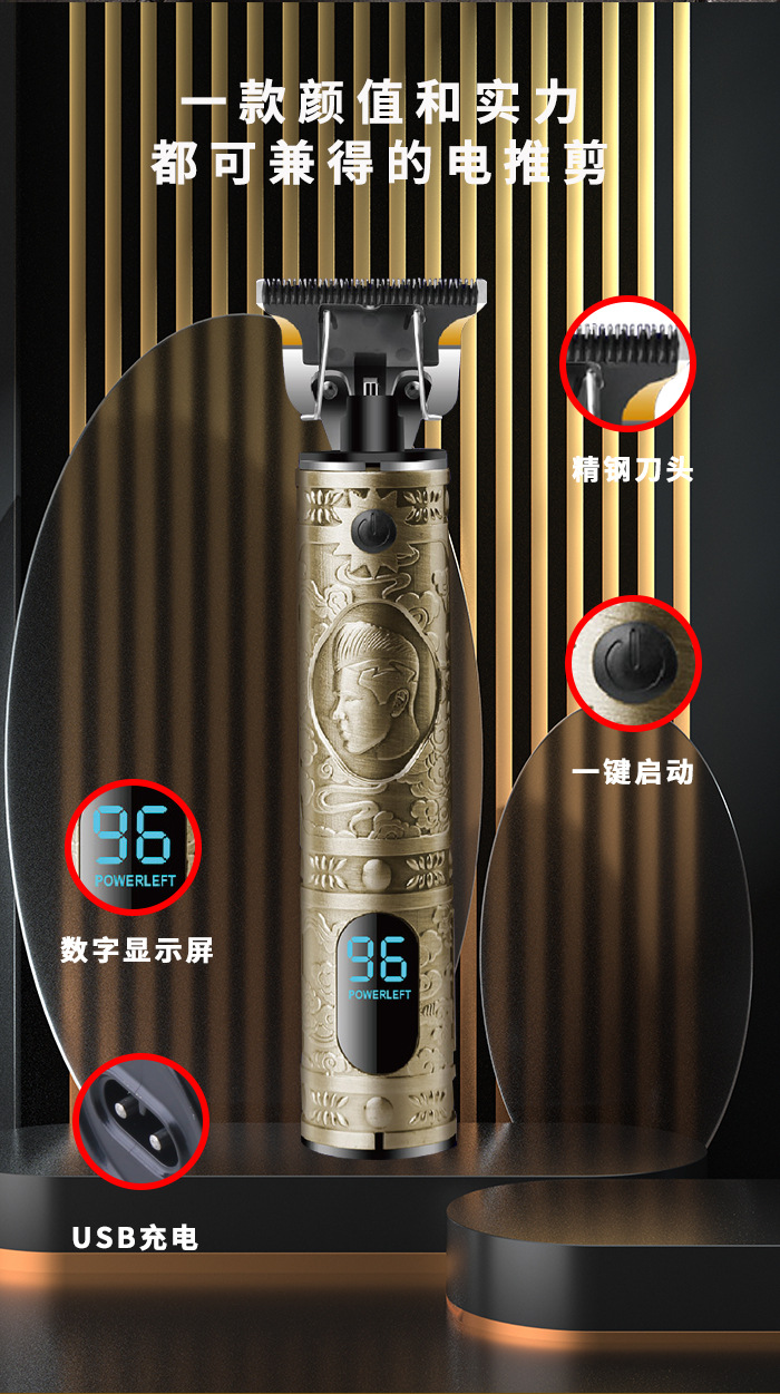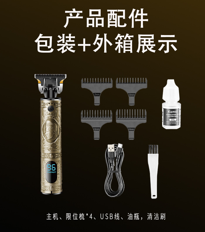 科美新款复古理发剪液晶数显雕刻快充理发器专业电推剪理发店专用