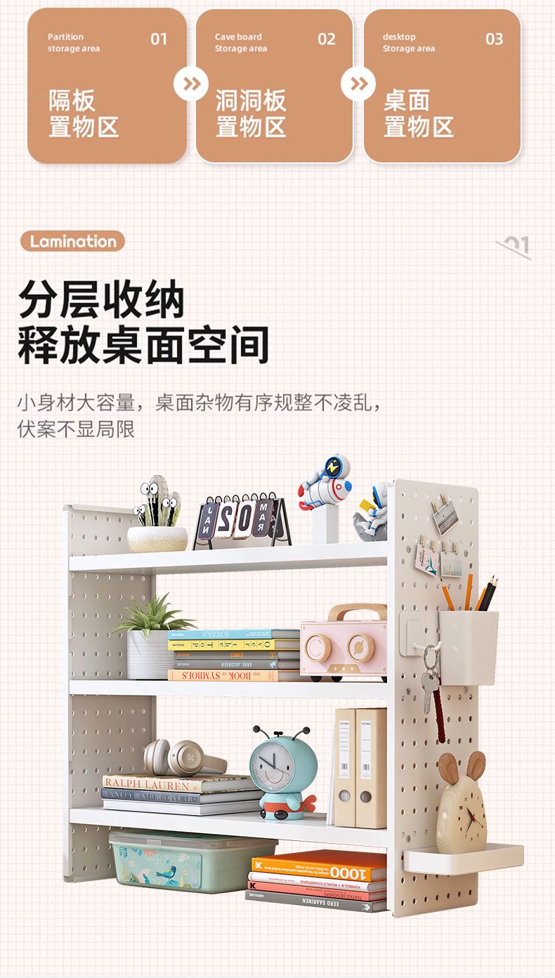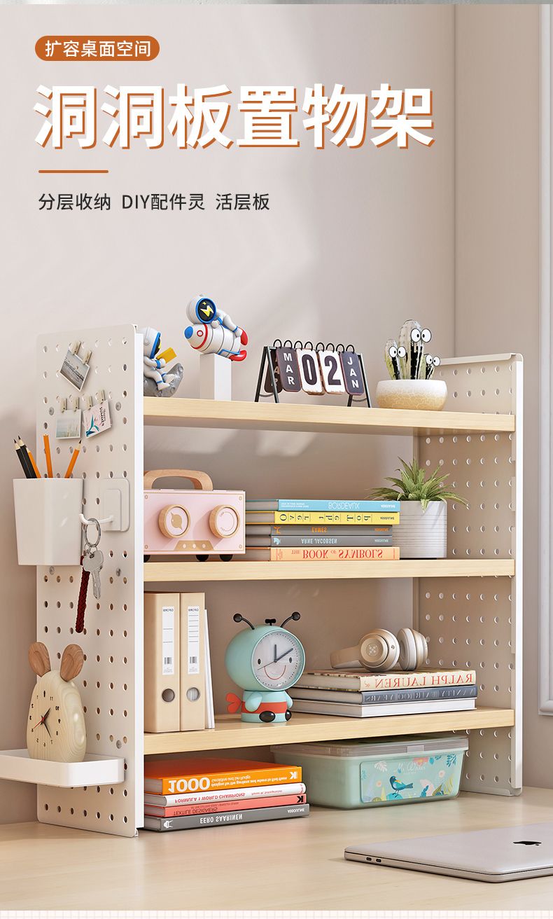 桌面置物架洞洞板桌上书架办公室工位多层收纳架学生铁艺整理架子