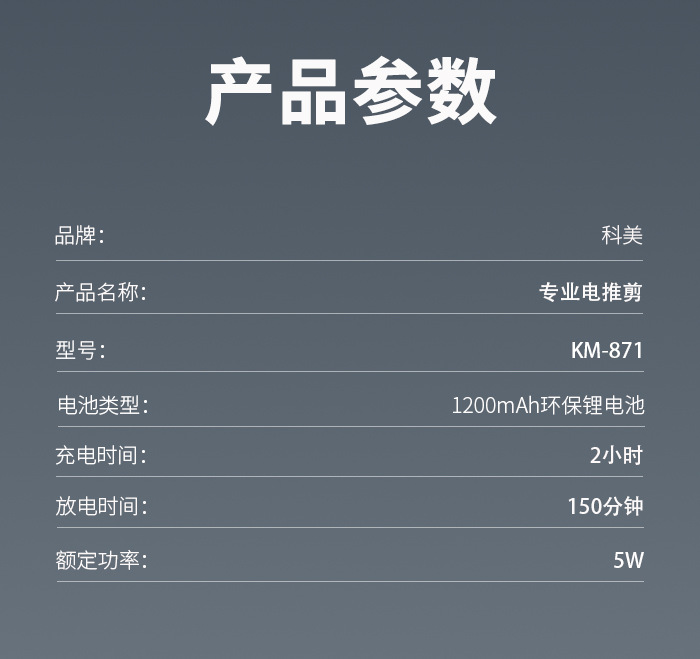 科美/KEMEI新款大容量锂电池电推子理发剪液晶数显快充推剪理发器