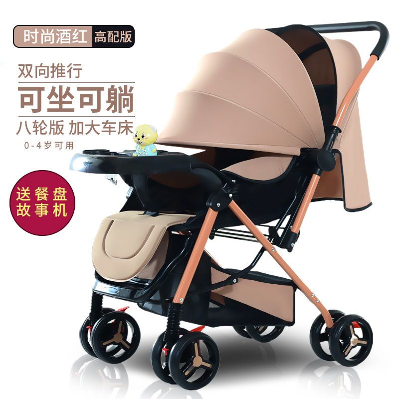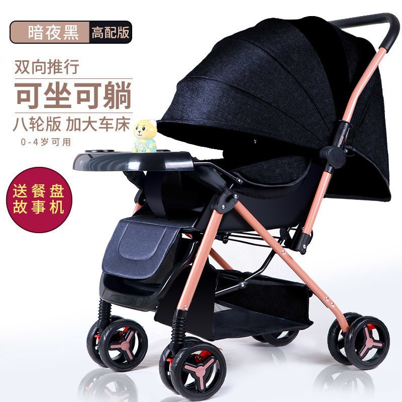 大宝宝儿童轻便双向婴儿车可坐躺大推车折叠宝宝四轮童车外出餐盘