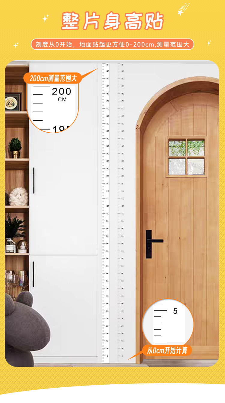 儿童透明身高贴不伤墙整条贴可移除身高尺墙贴精准测量贴纸定制