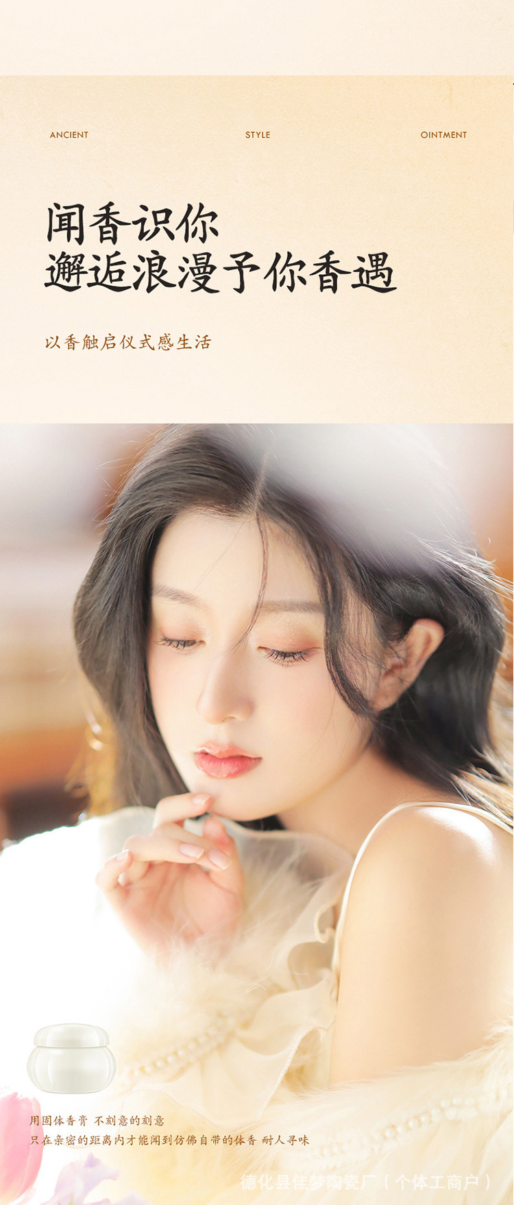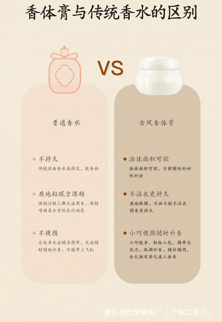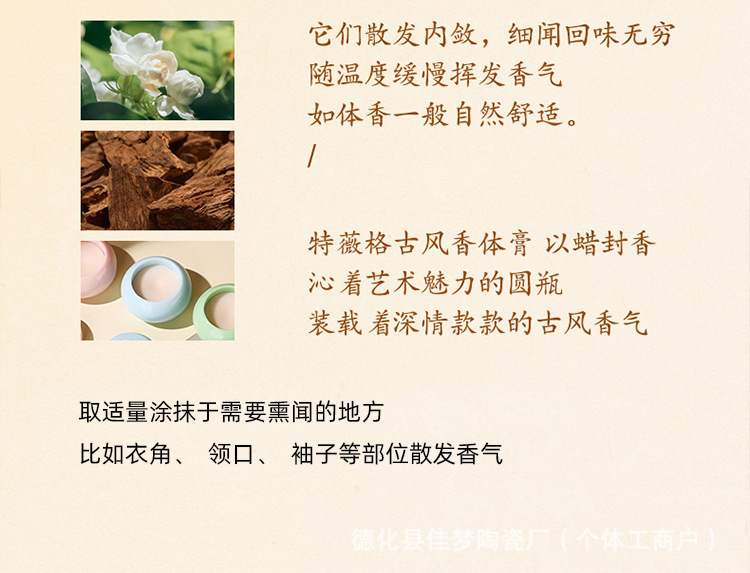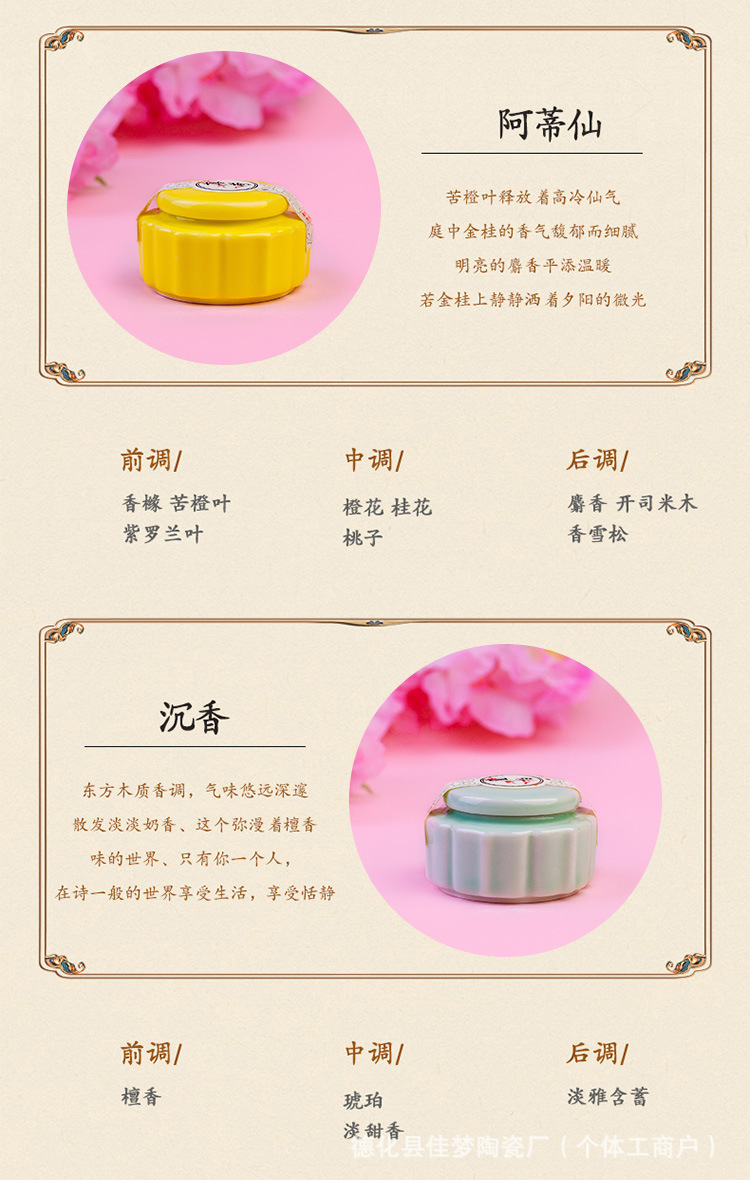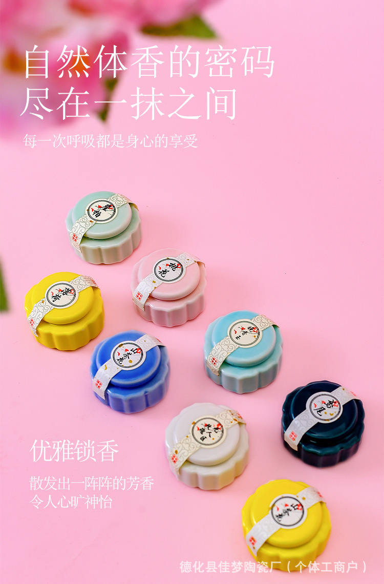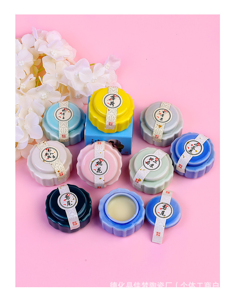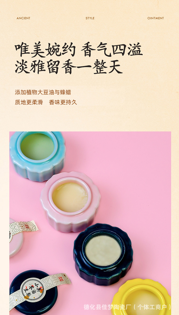 国潮古风香膏随身沉香龙涎花香香薰固体淡香10克陶瓷香膏批发
