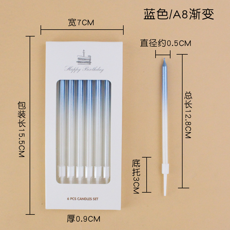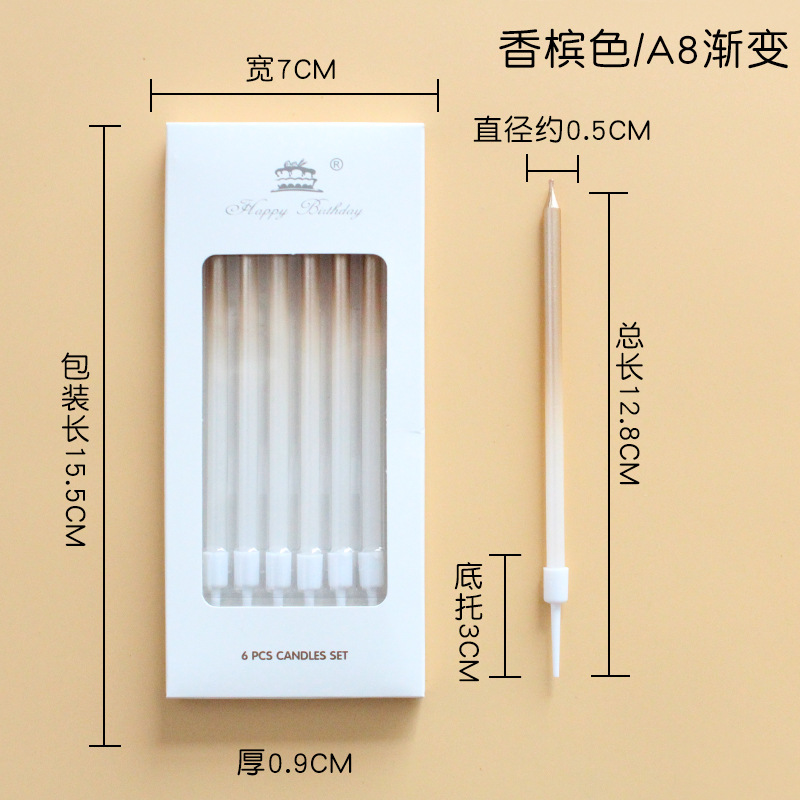 生日蛋糕蜡烛派对蜡烛长杆金色螺纹铅笔蜡烛细长蜡烛烘焙包装批发