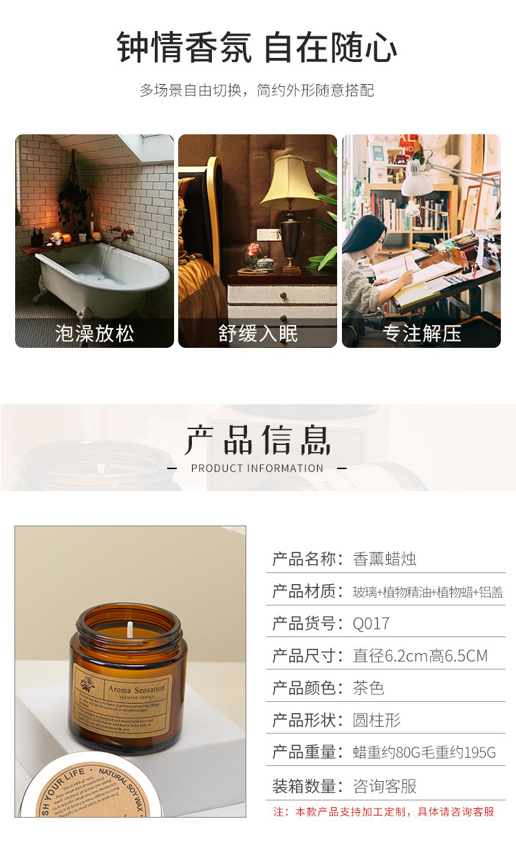 结婚伴手礼小号茶色简约香薰蜡烛家用室内香氛酒店香氛蜡烛80g