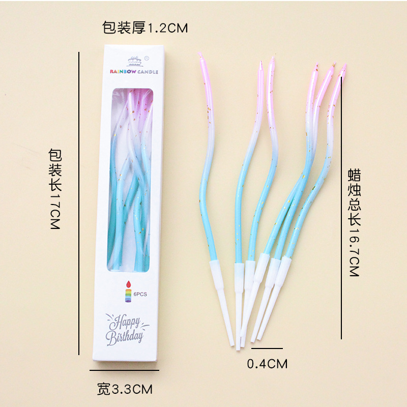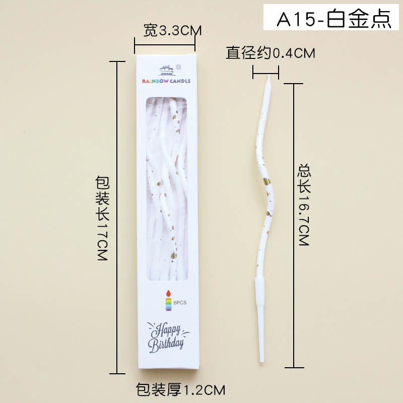 批发网红生日蛋糕蜡烛曲线螺纹蜡烛镀金曲线蜡烛盒装蜡烛