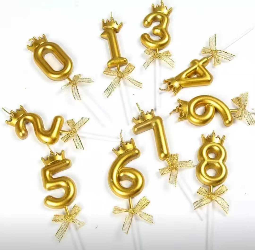 金色银色皇冠数字蜡烛蝴蝶结装饰蜡烛生日蛋糕插件网红数字蜡烛