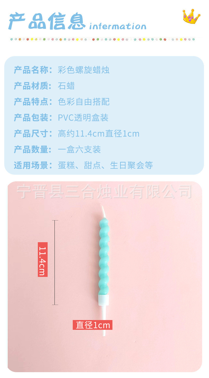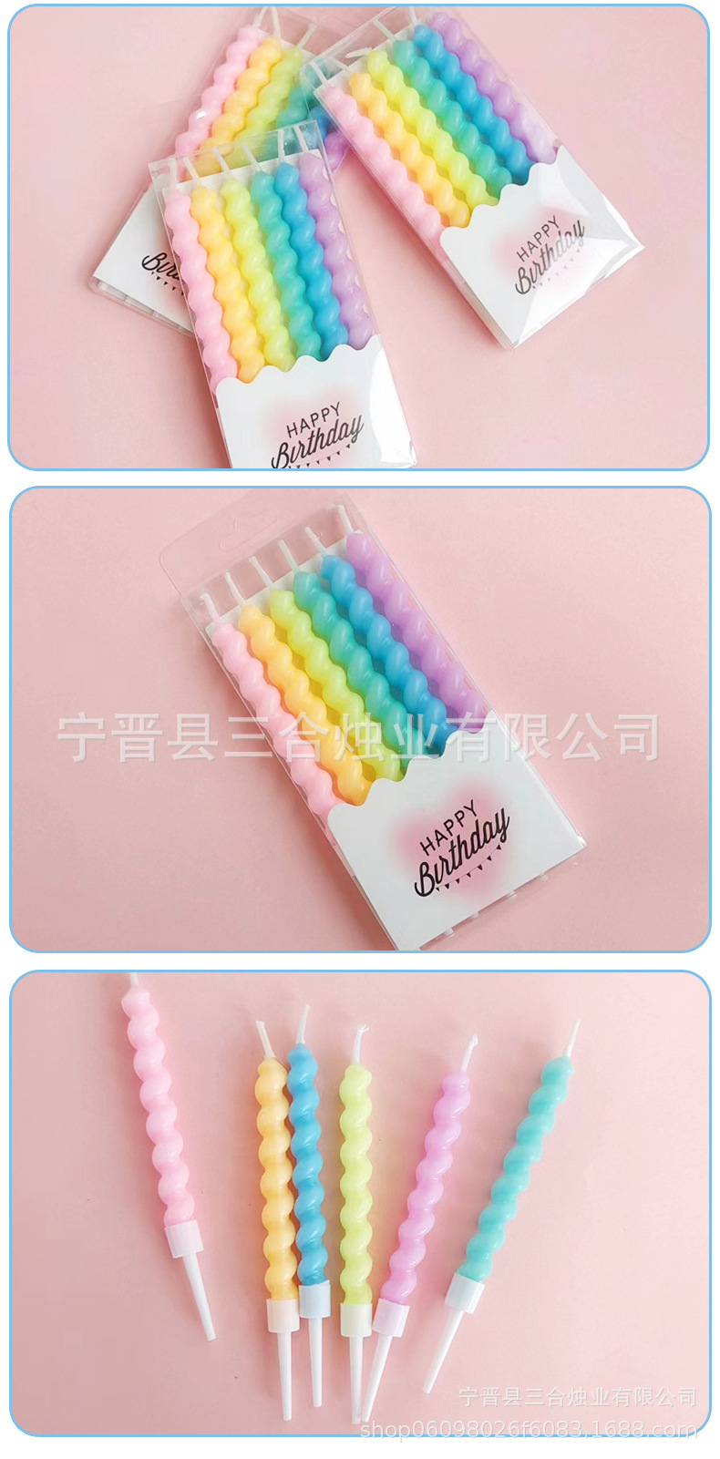 彩色扭扭螺纹生日蜡烛马卡龙弯曲螺旋蜡烛生日蛋糕烘焙装饰插件