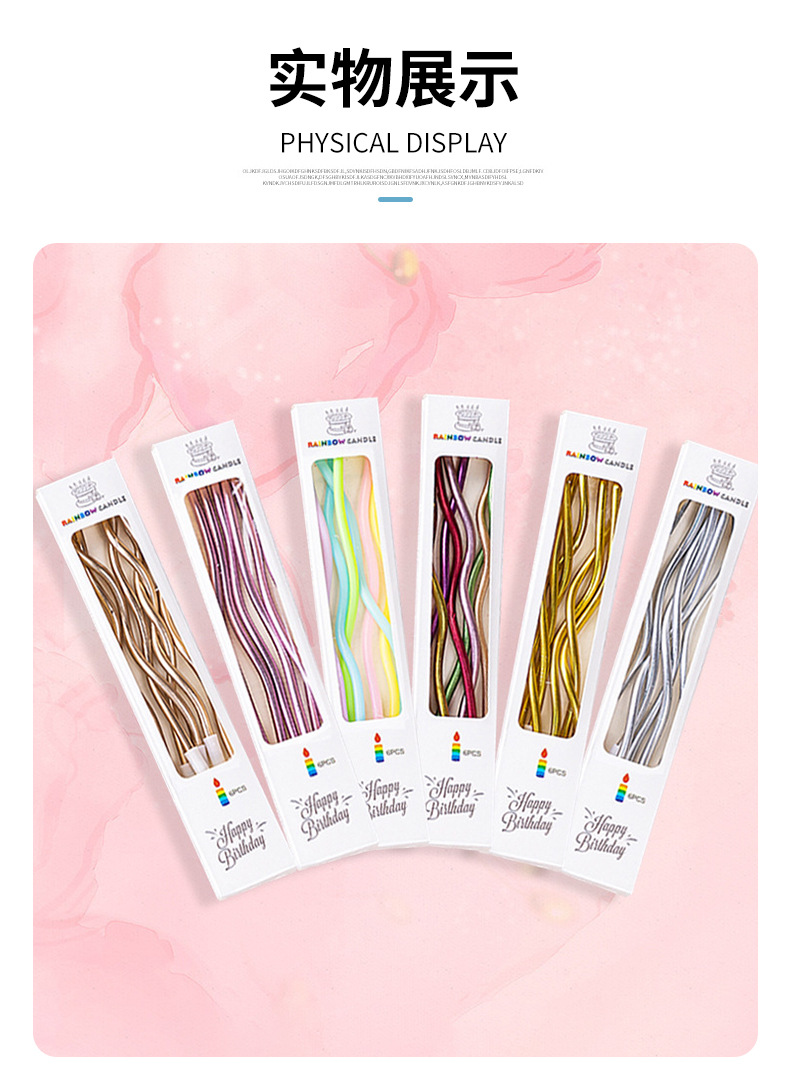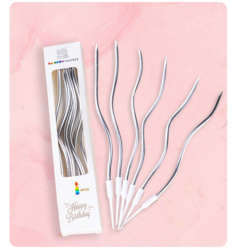生日曲线蜡烛蛋糕装饰网红创意弯曲ins风镀金银彩色弯曲生日蜡烛