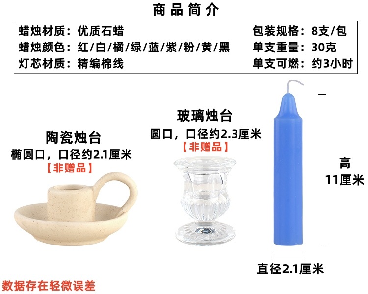 小号短款型无味多彩马卡龙装饰绿蜡烛紫粉黑蓝色普通照明节日红腊