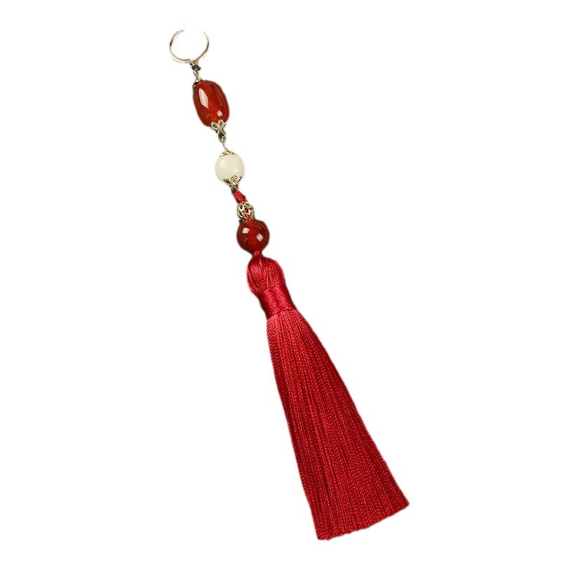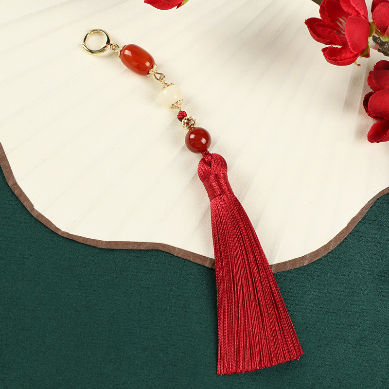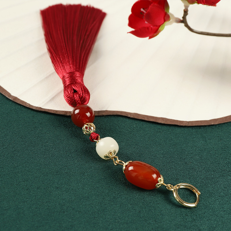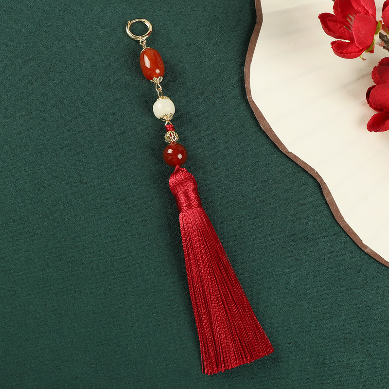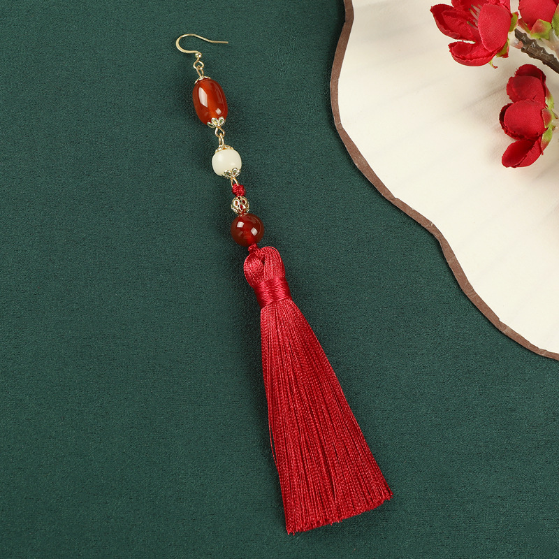 新中式红色玛瑙流苏长款耳环小众民族风复古耳坠中国风汉服耳饰女