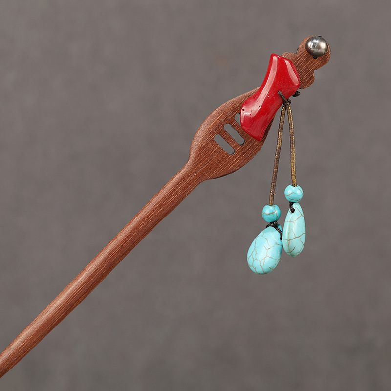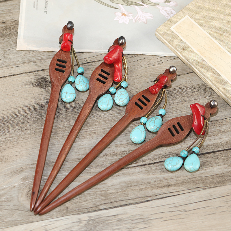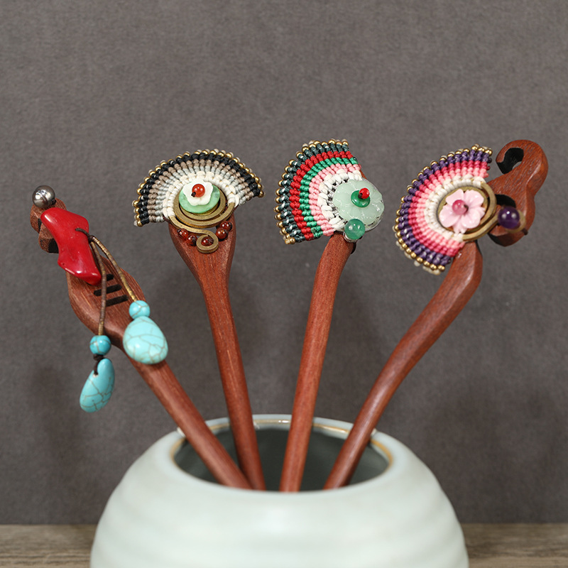 红檀木发簪复古尼泊尔异域风编织木簪子简约盘发民族风汉服头饰女