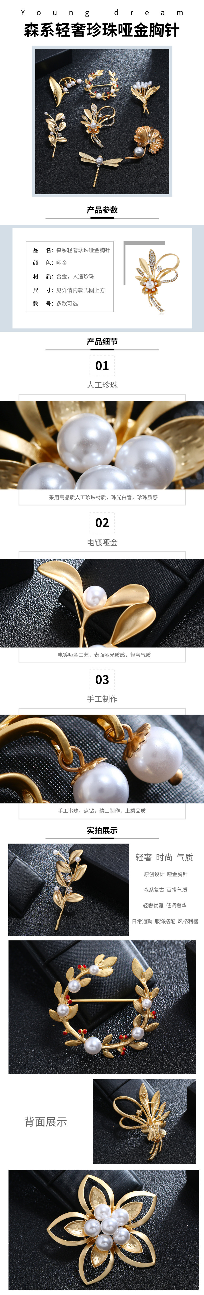 韩国奢华气质哑金胸针女森系植物珍珠花朵别针西装简约胸花配饰品