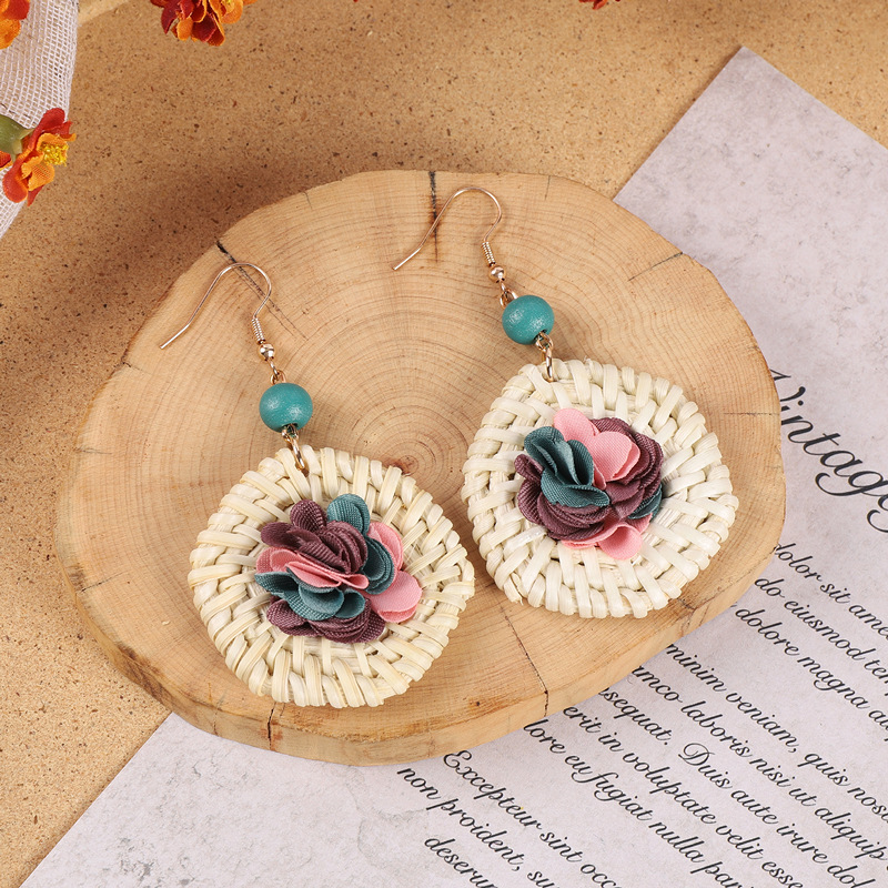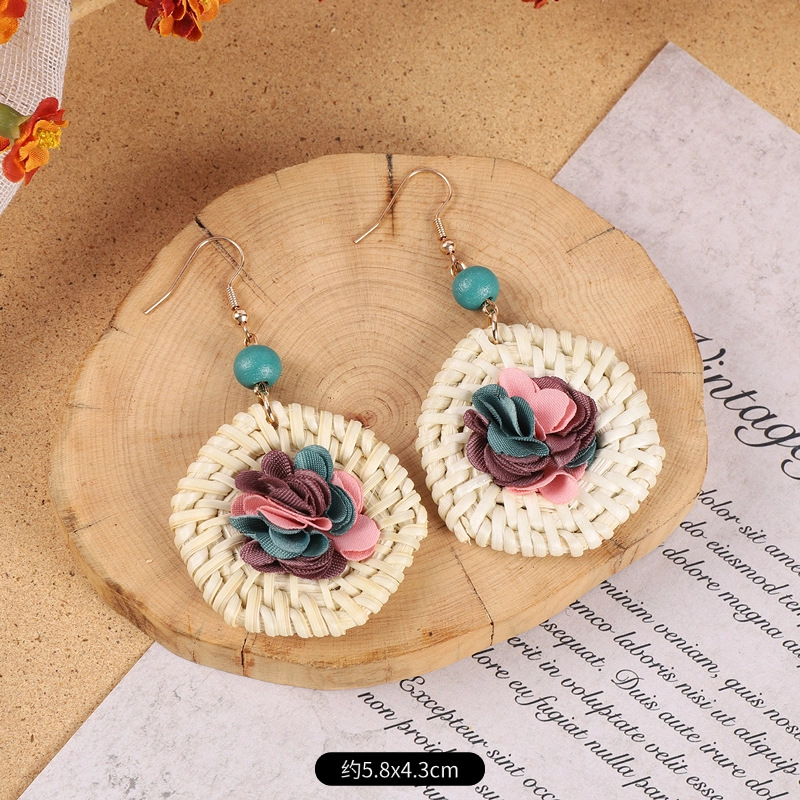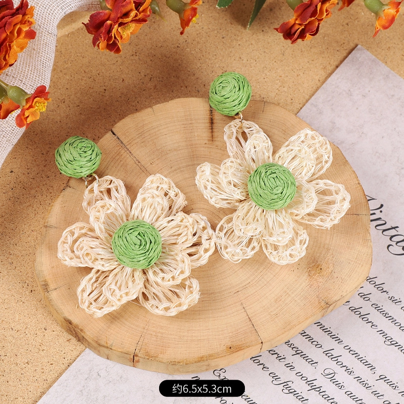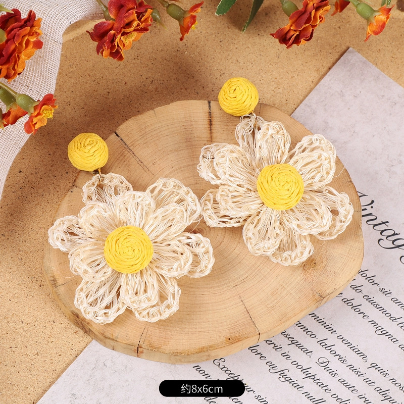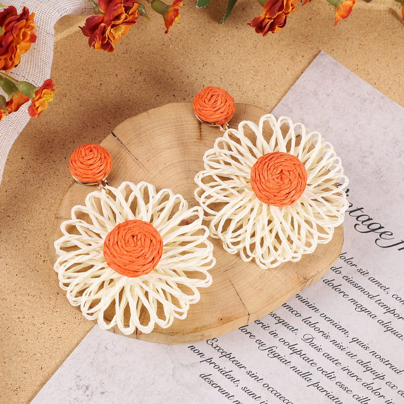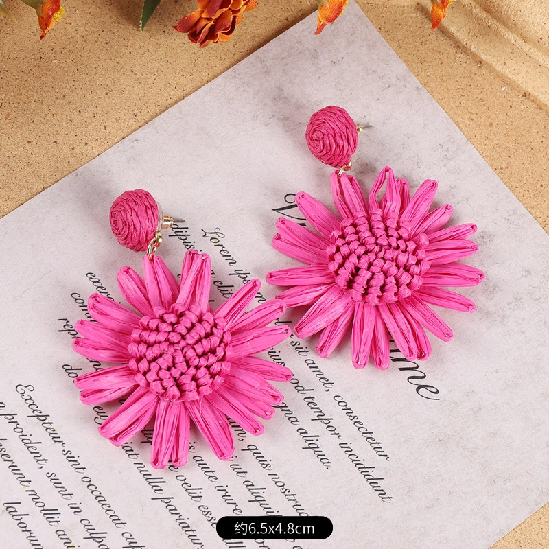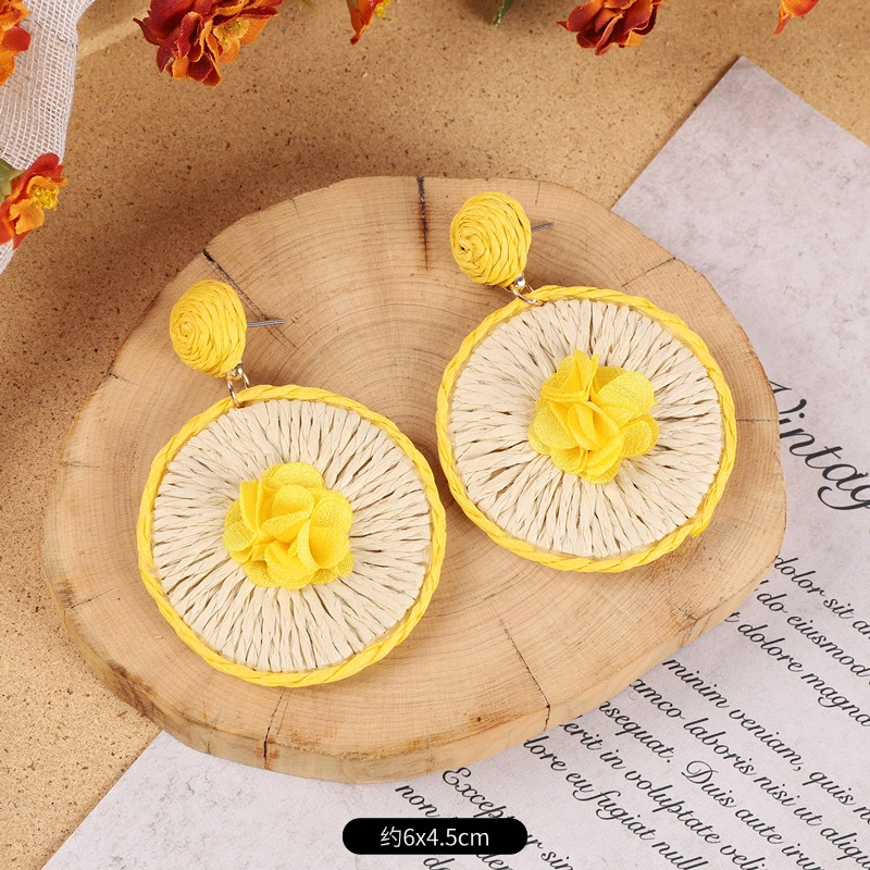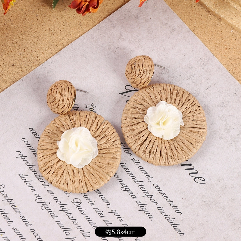 度假风藤编花朵耳钉欧美波西米亚海边复古草编耳饰品民族风女耳环
