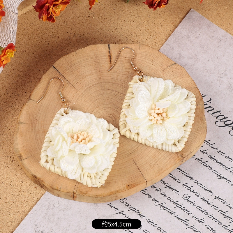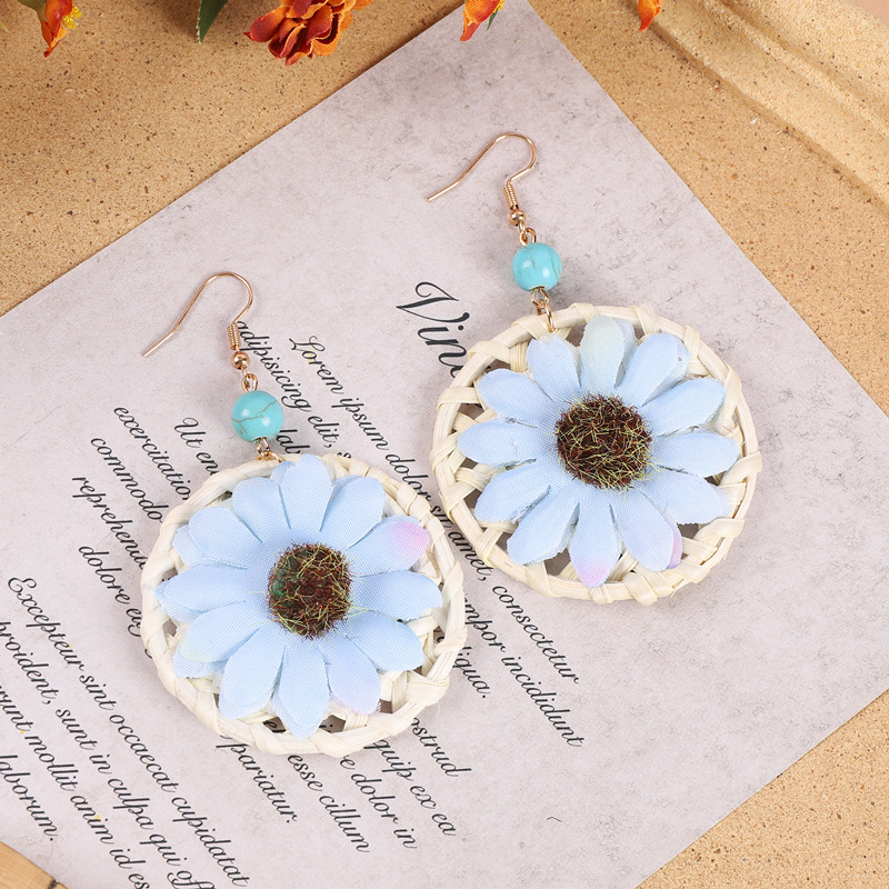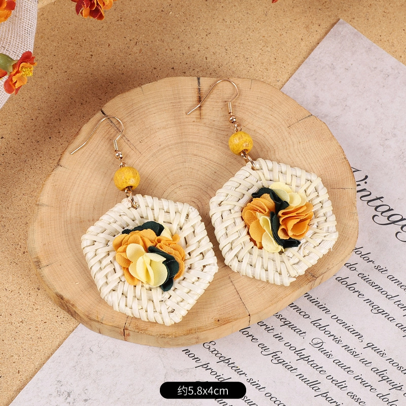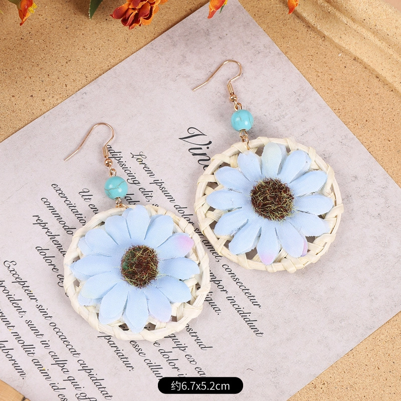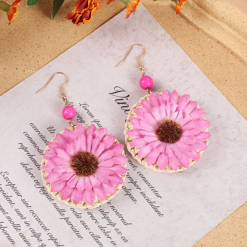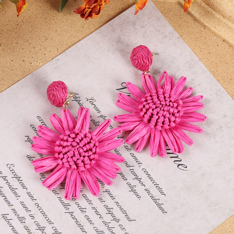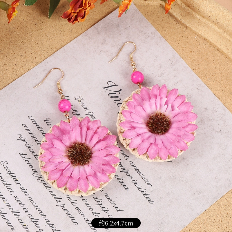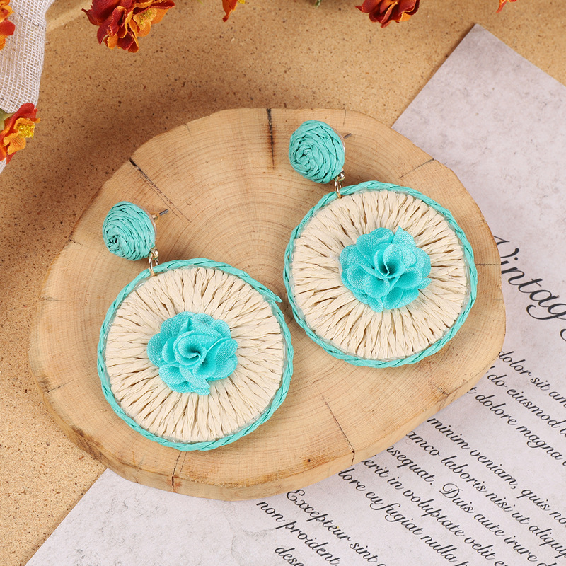 度假风藤编花朵耳钉欧美波西米亚海边复古草编耳饰品民族风女耳环