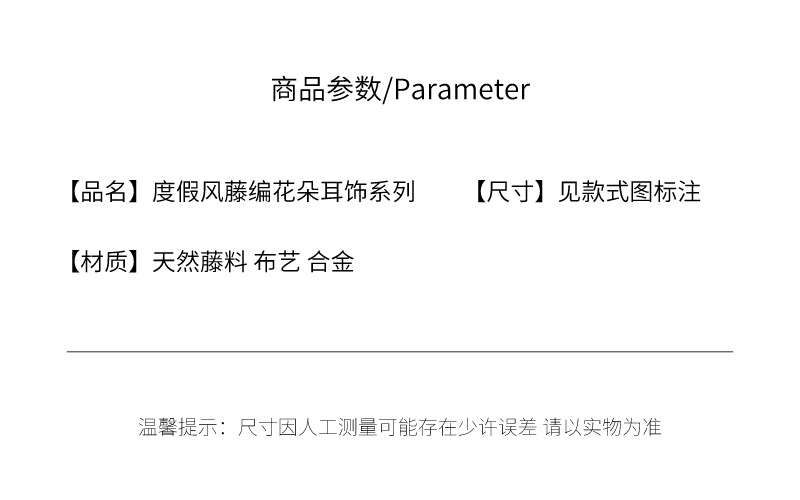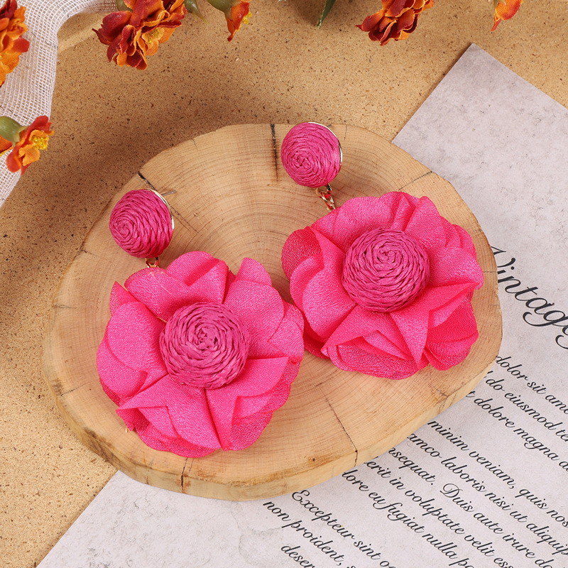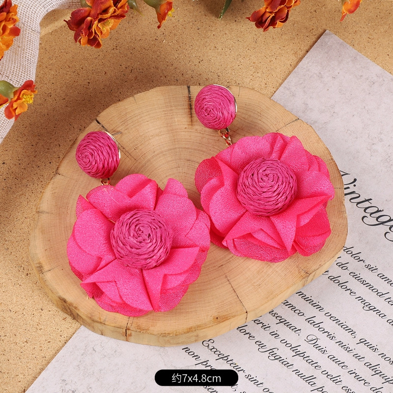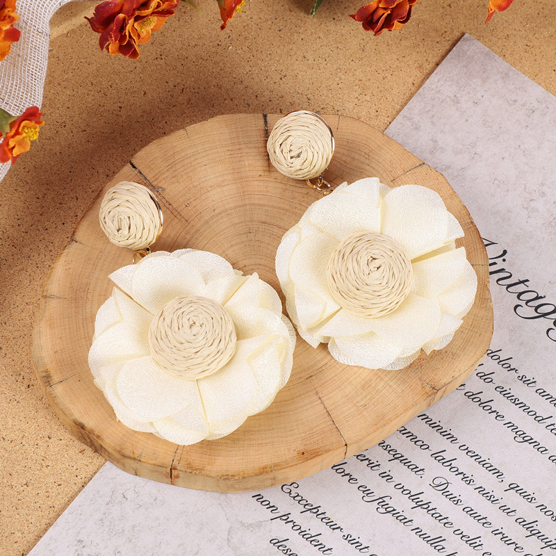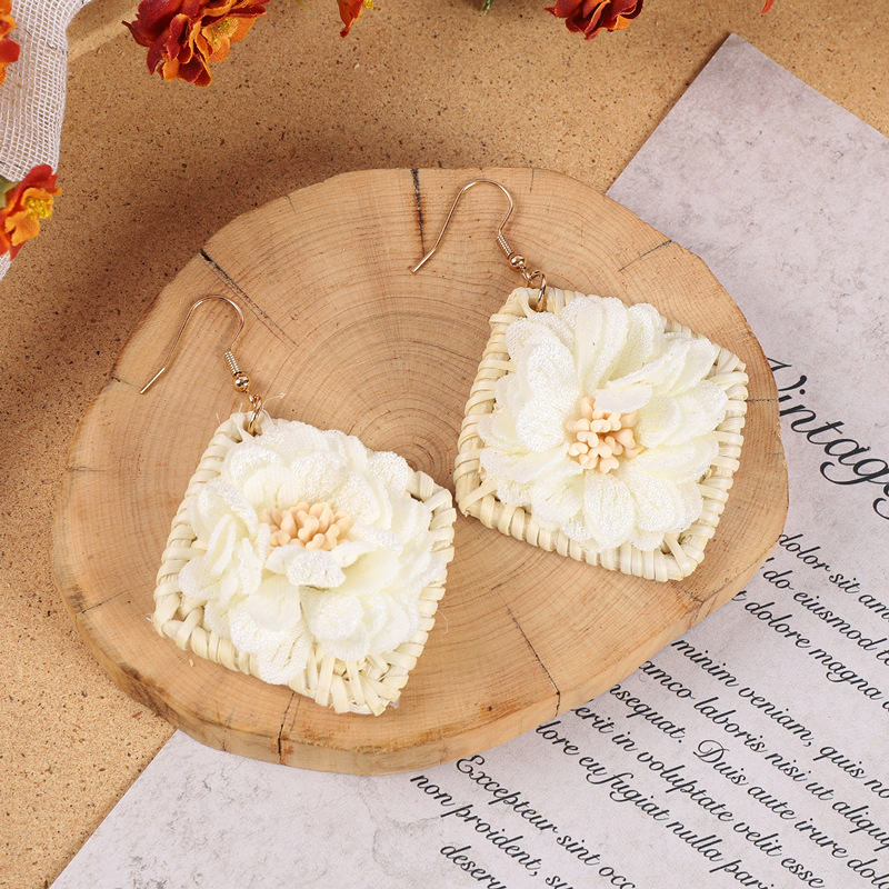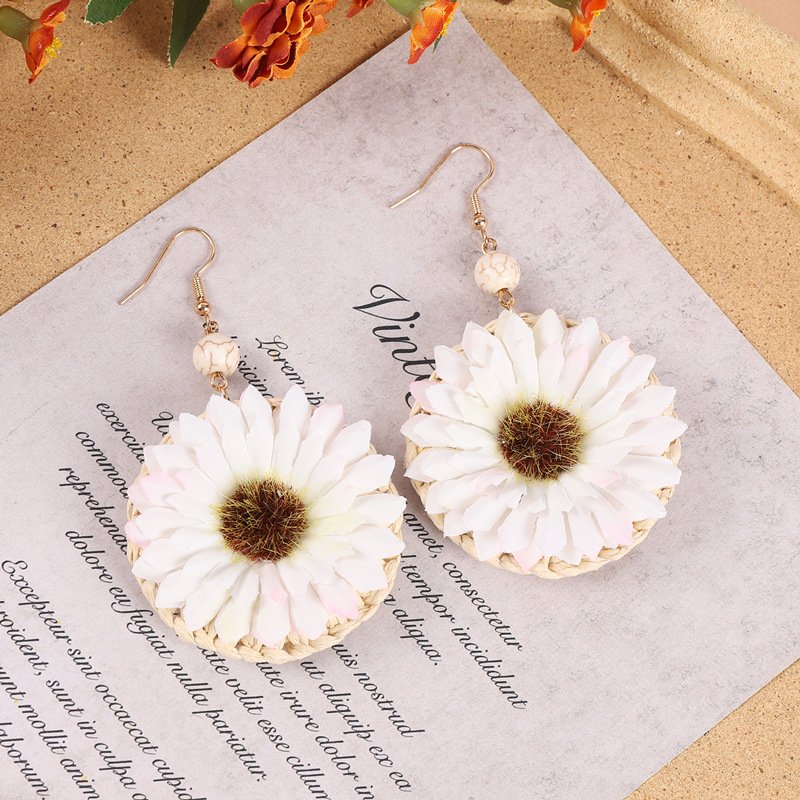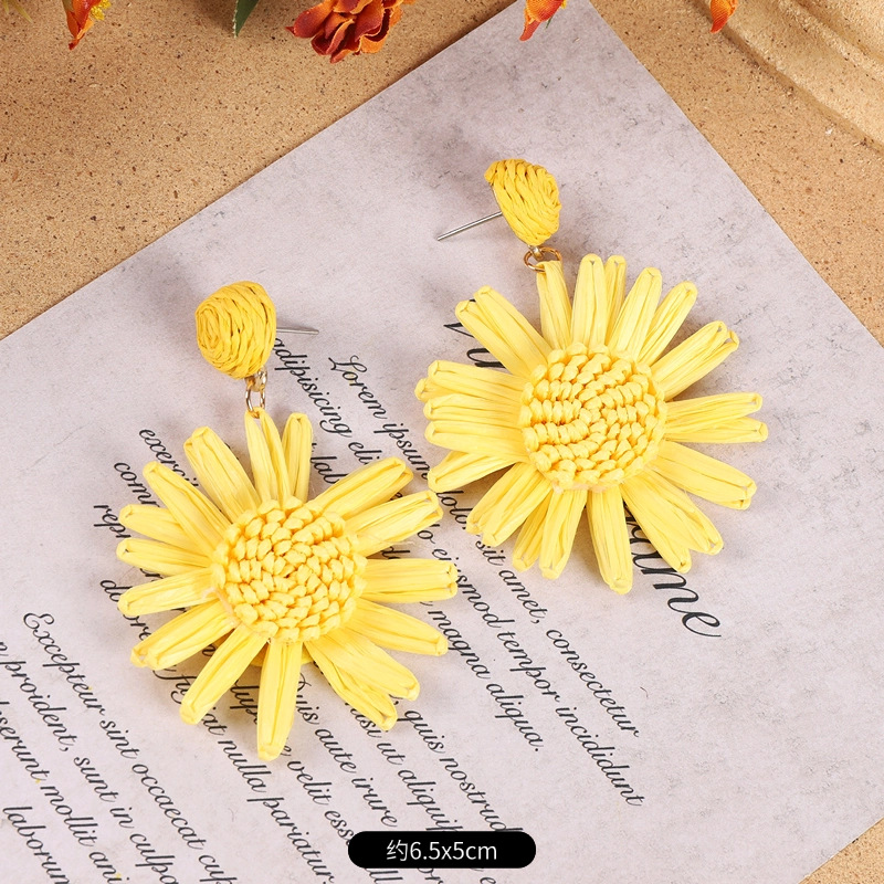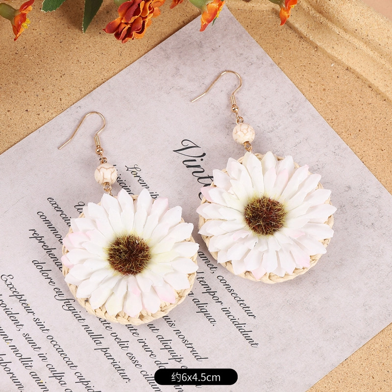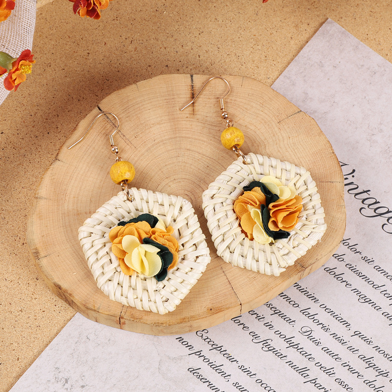 度假风藤编花朵耳钉欧美波西米亚海边复古草编耳饰品民族风女耳环