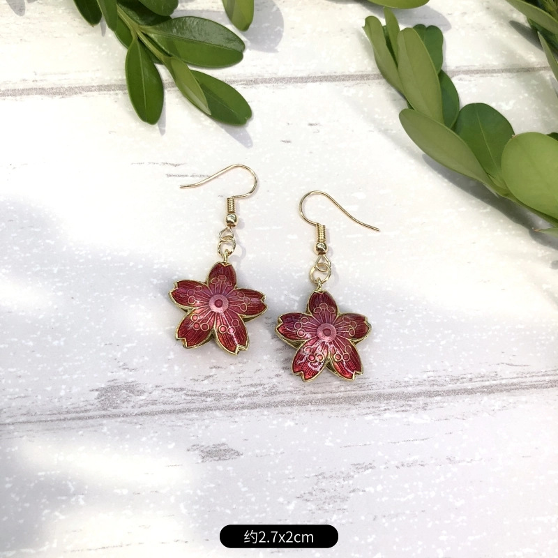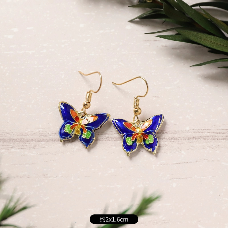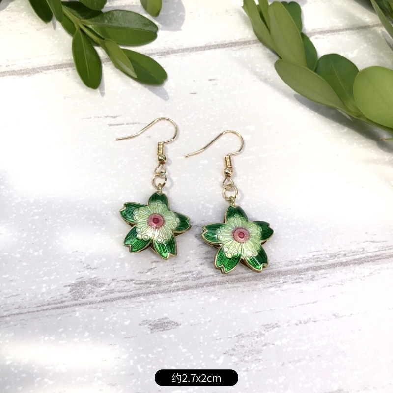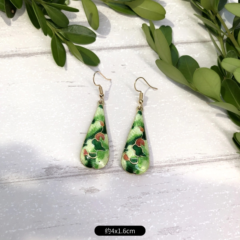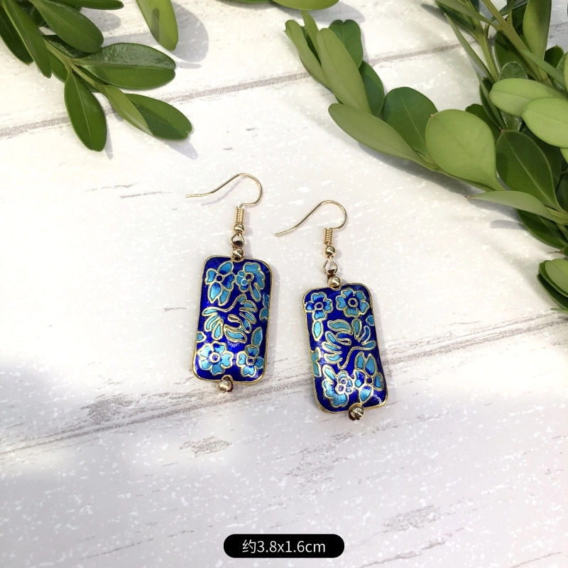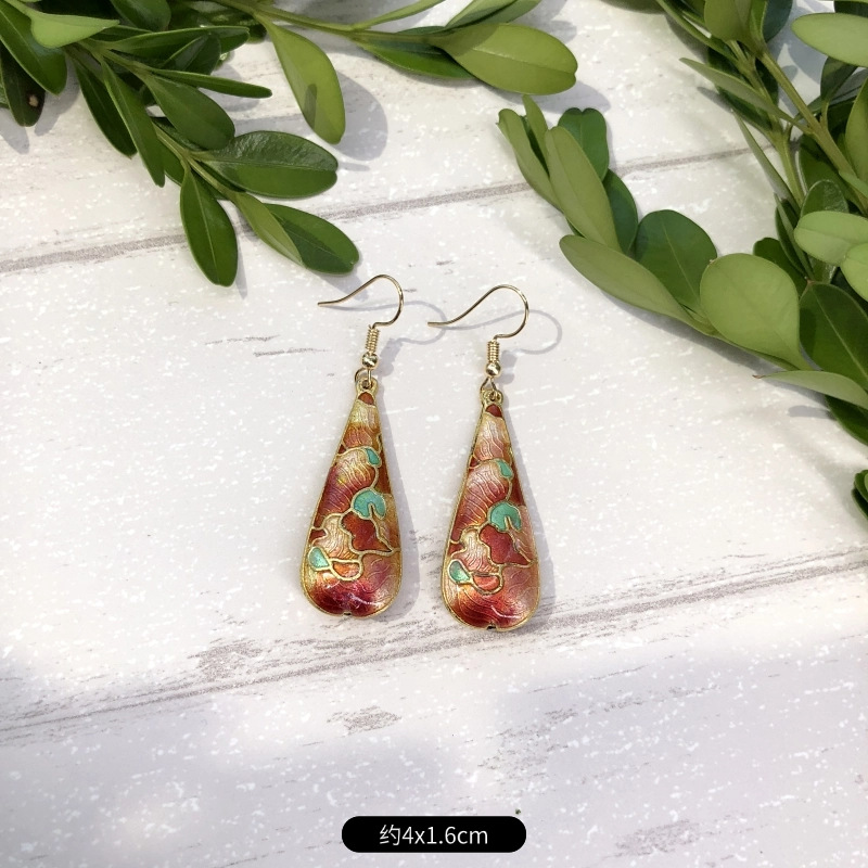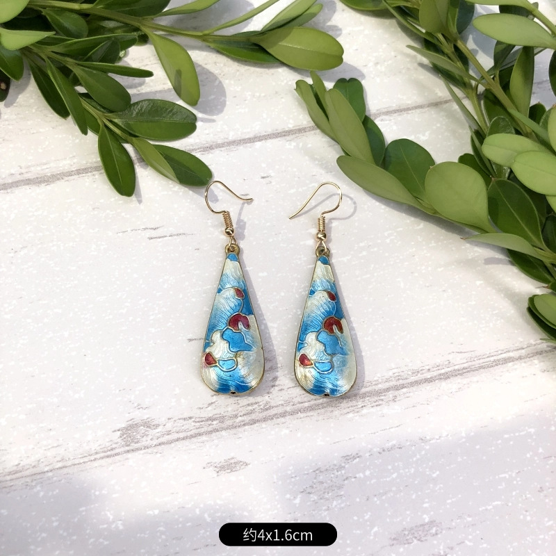 原创手工景泰蓝耳环 女古典气质简约百搭水滴花朵耳坠复古耳饰品