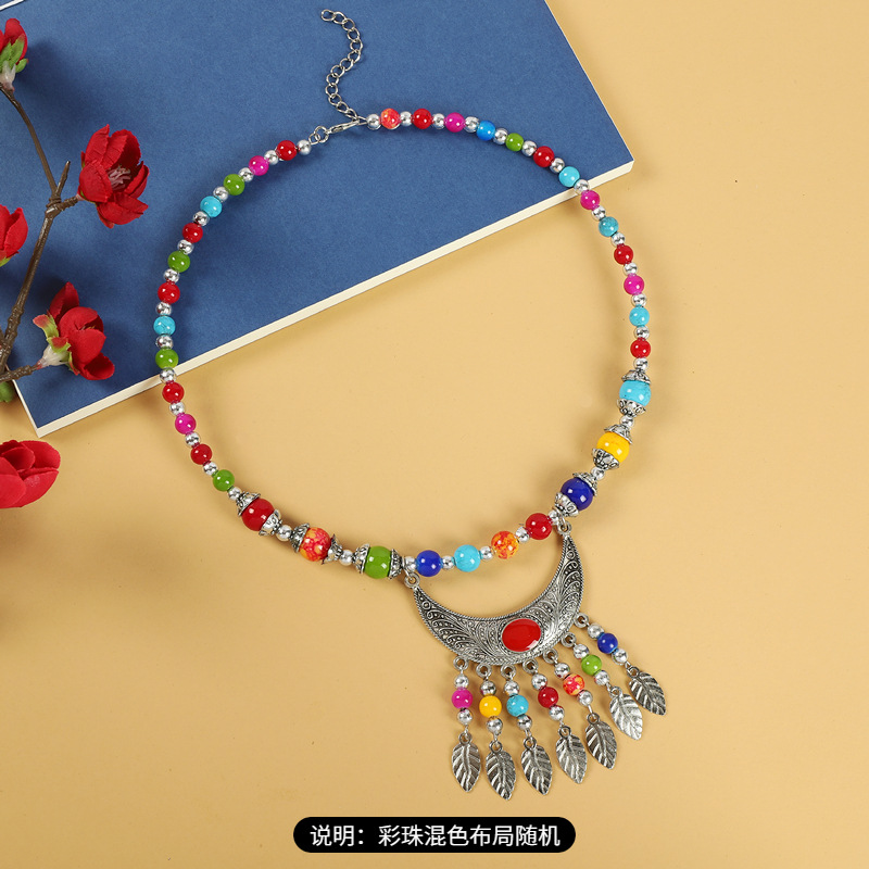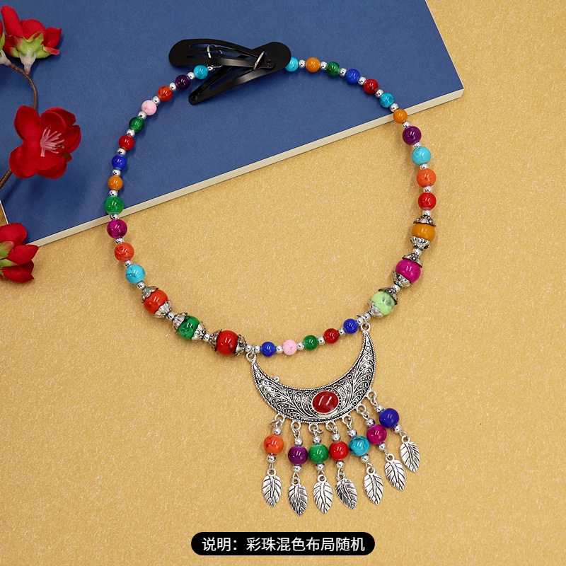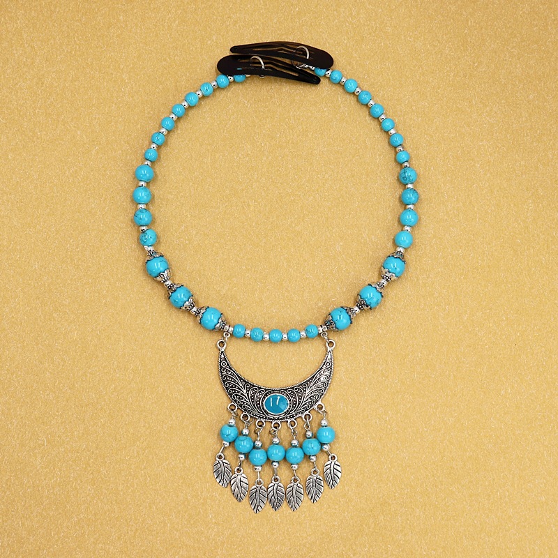 复古民族风月牙叶子流苏额饰异域藏族头饰眉心坠额头链旅拍配饰女