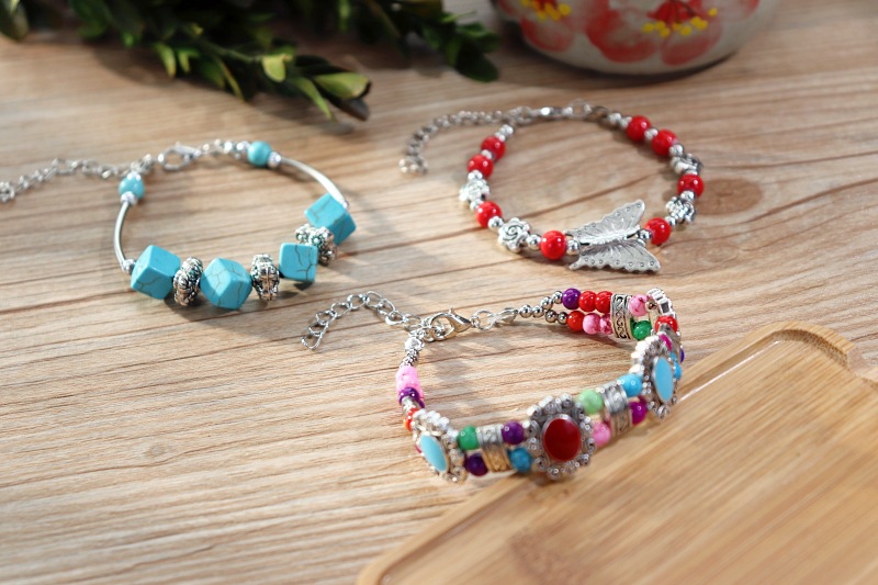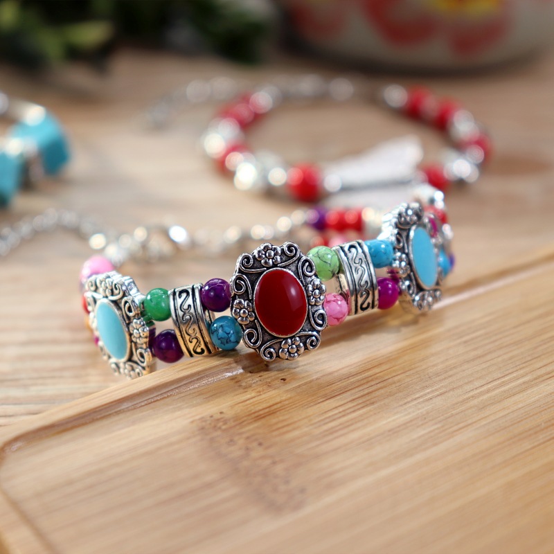 手工云南民族风手链女百搭复古彩石手串尼泊尔特色度假森系配饰品