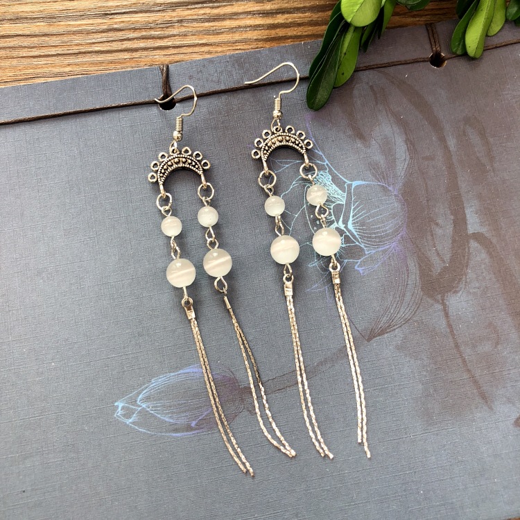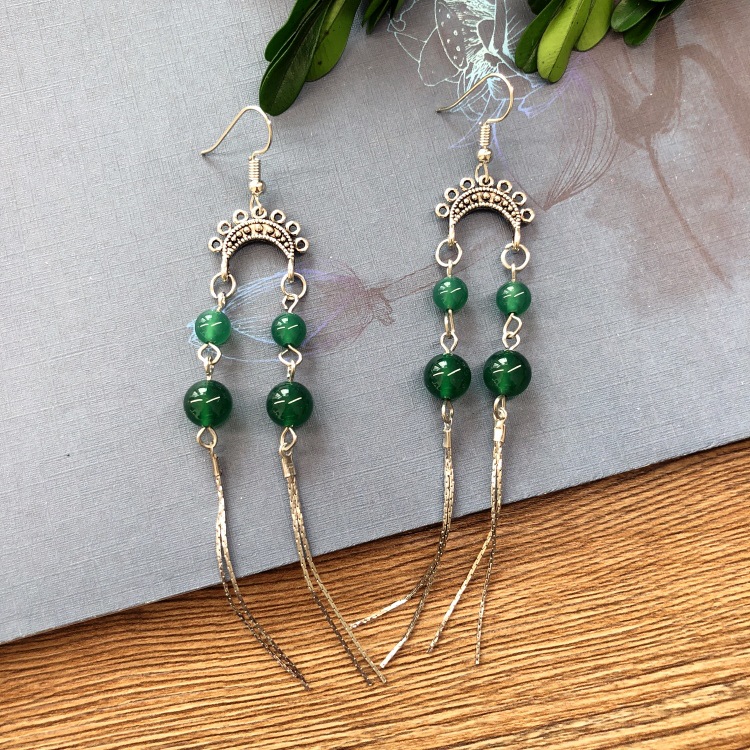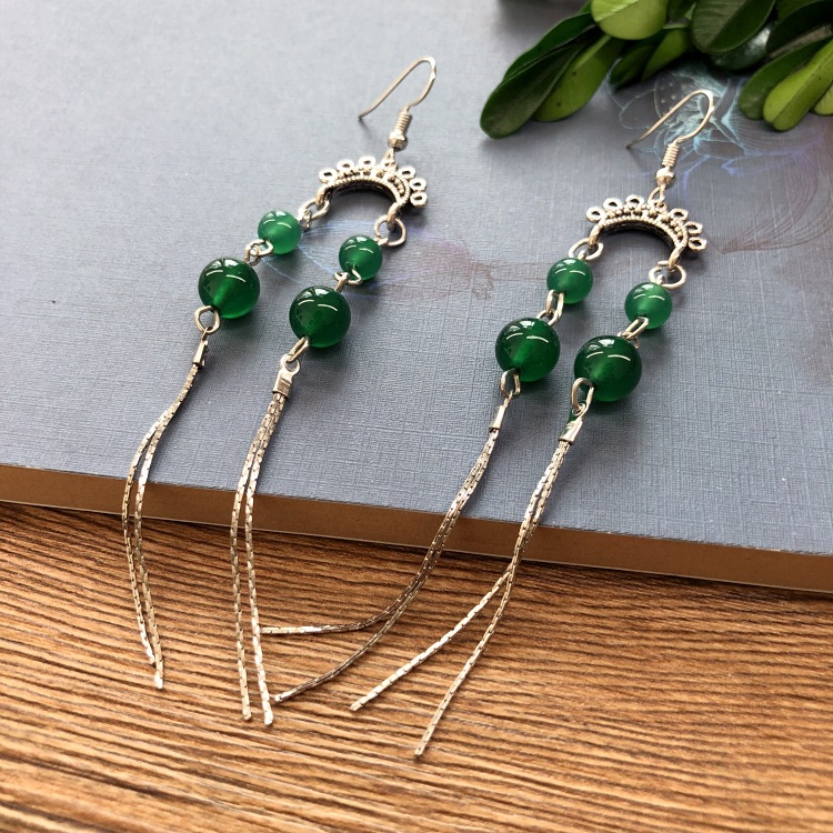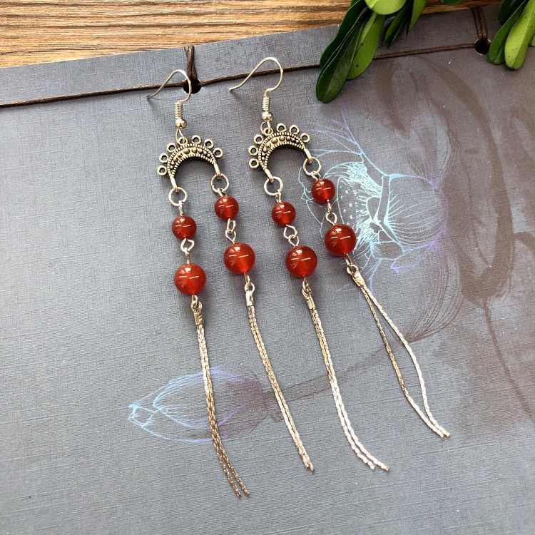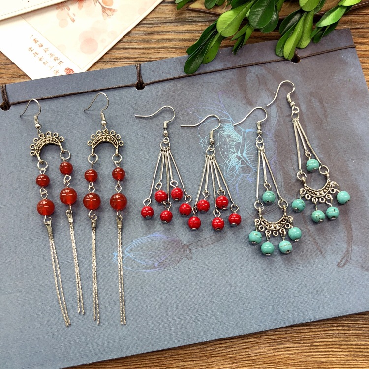 森系复古风长款红色松石流苏耳环女气质百搭民族风耳坠简约耳饰品