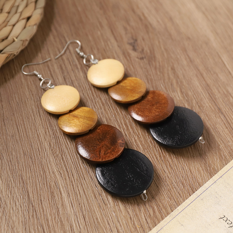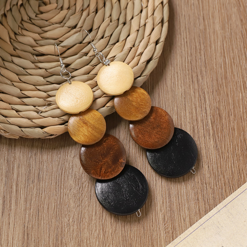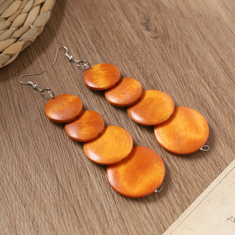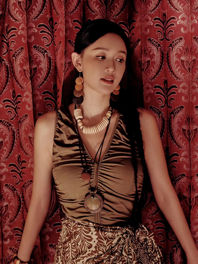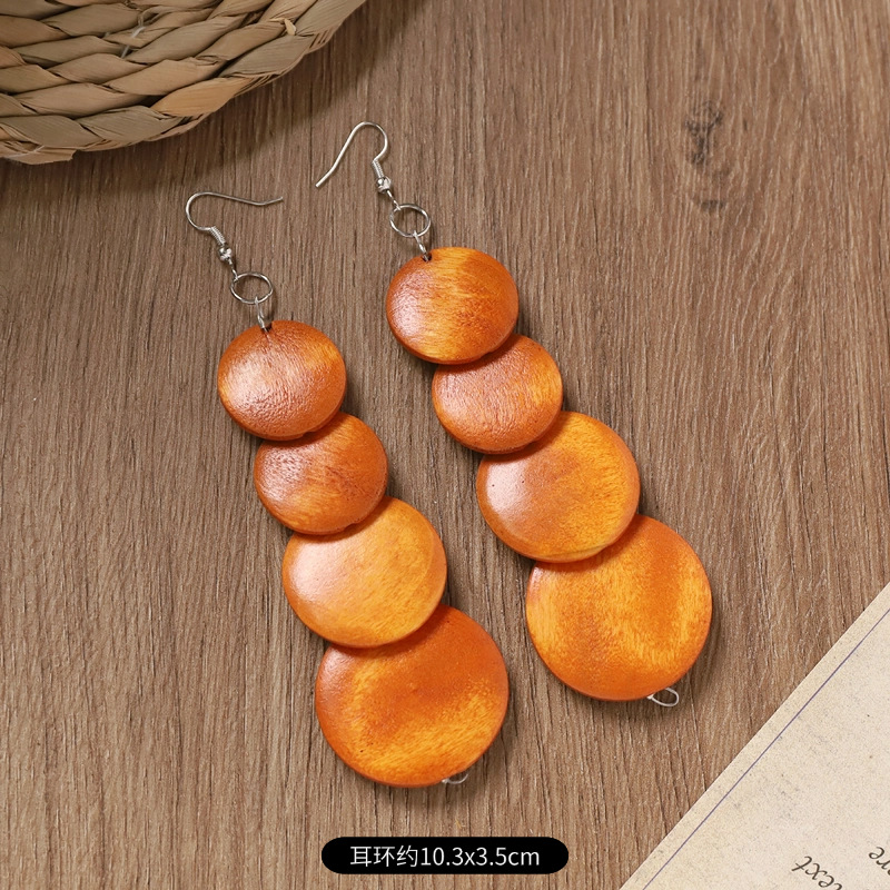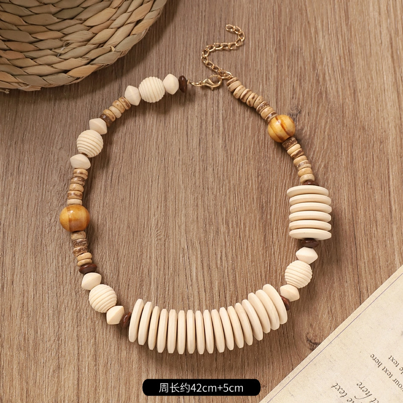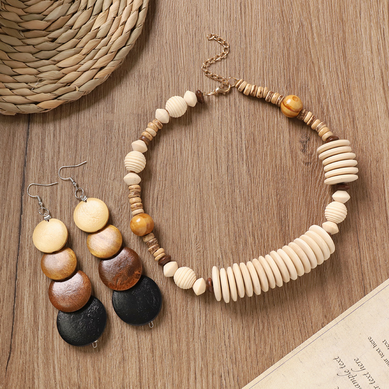波西米亚木质锁骨项链复古美拉德民族风耳环小众异域度假风配饰女