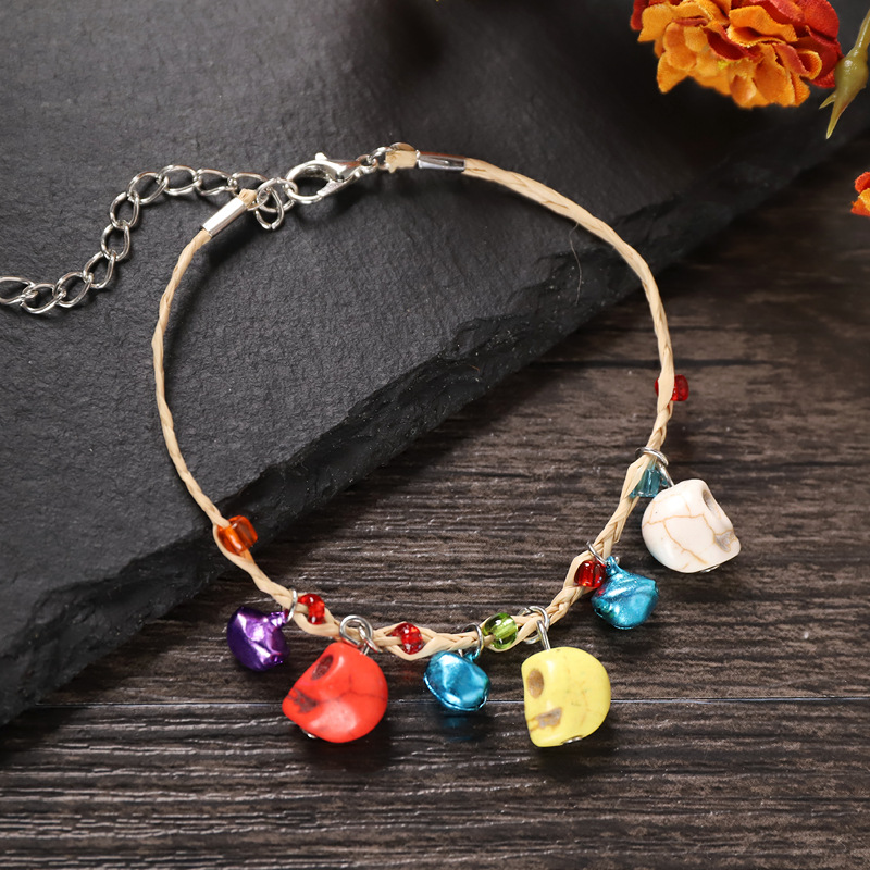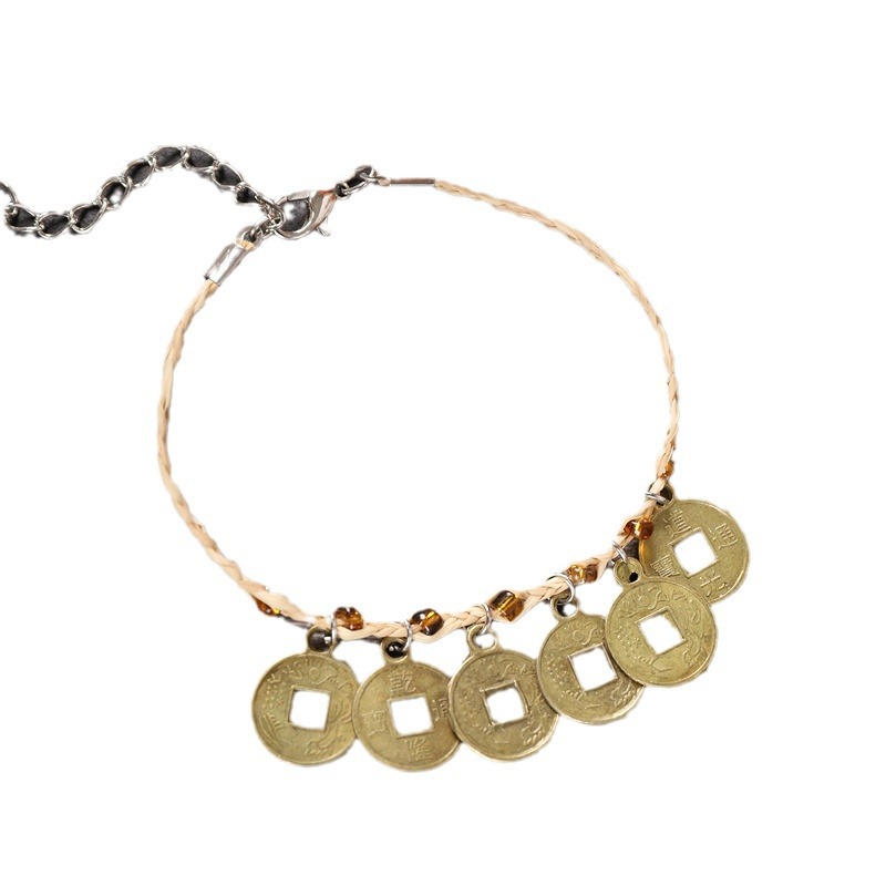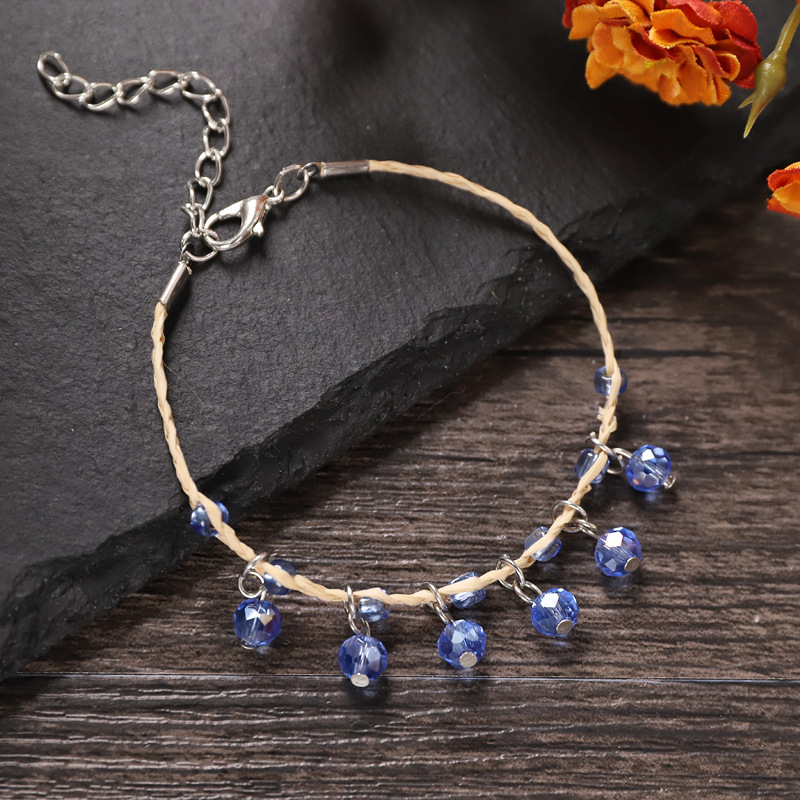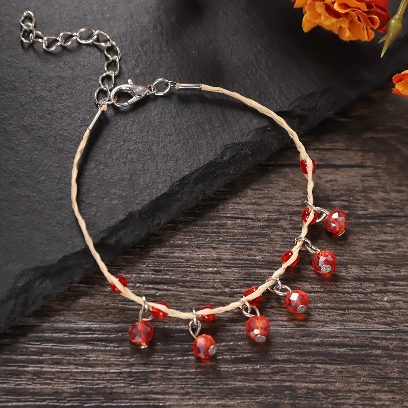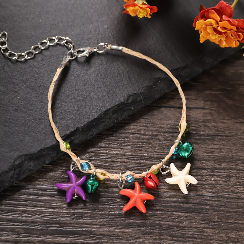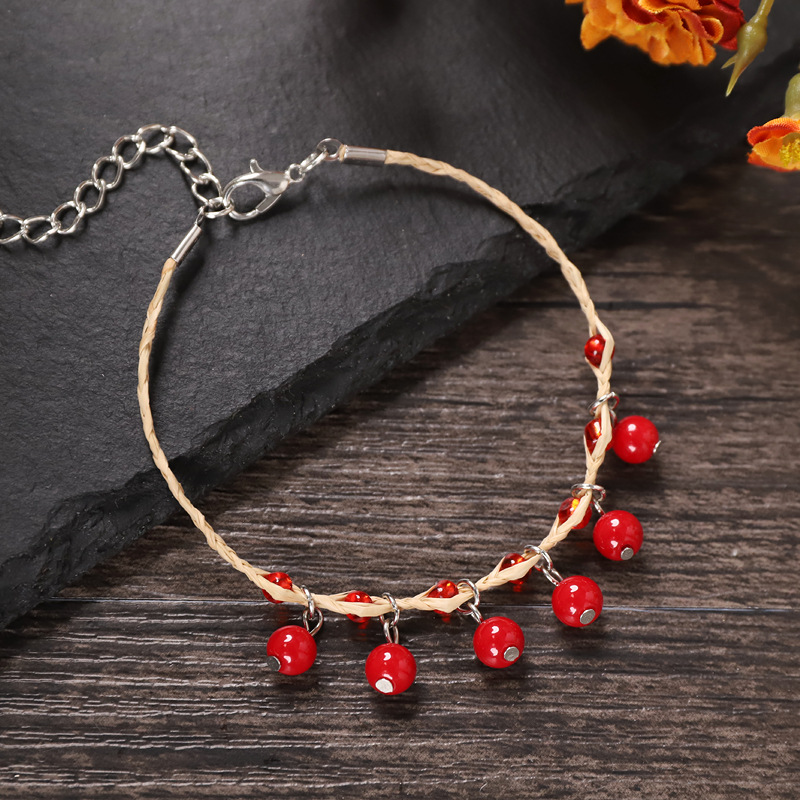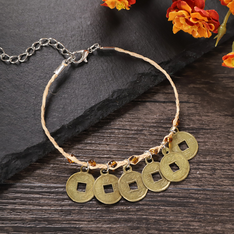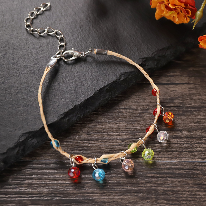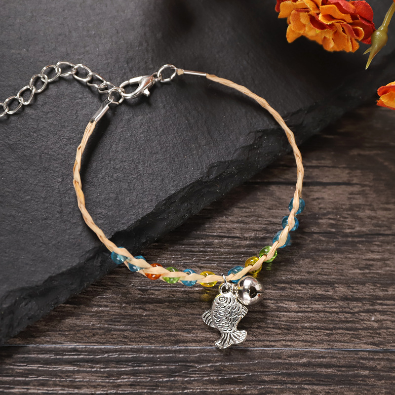 复古文艺森系许愿拉菲草手链天然碎石编织铃铛手绳民族风景区饰品
