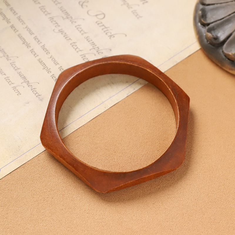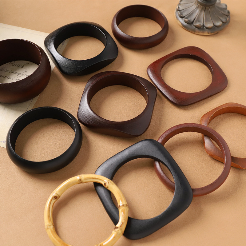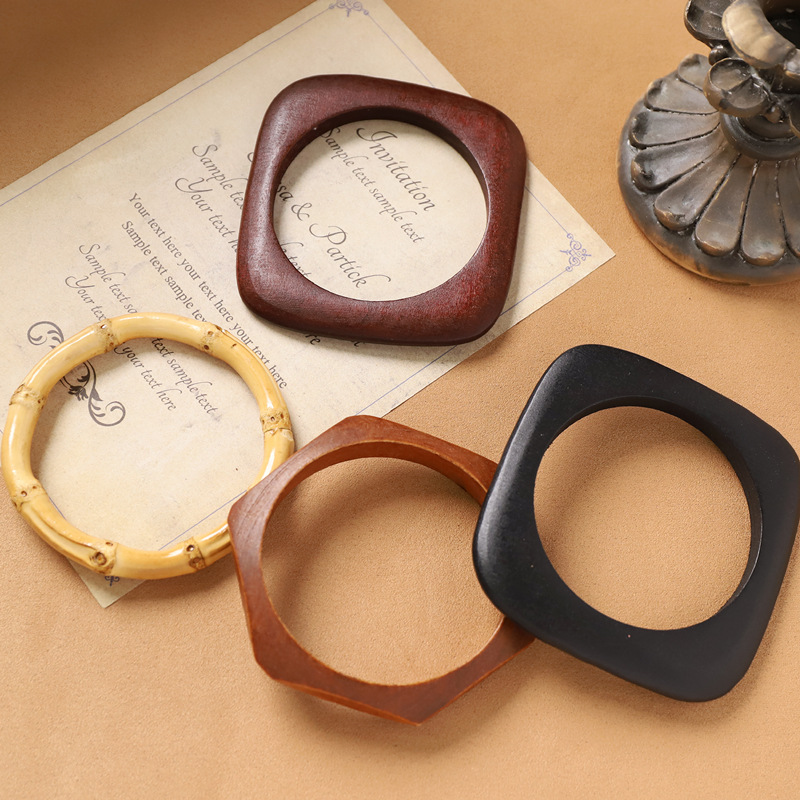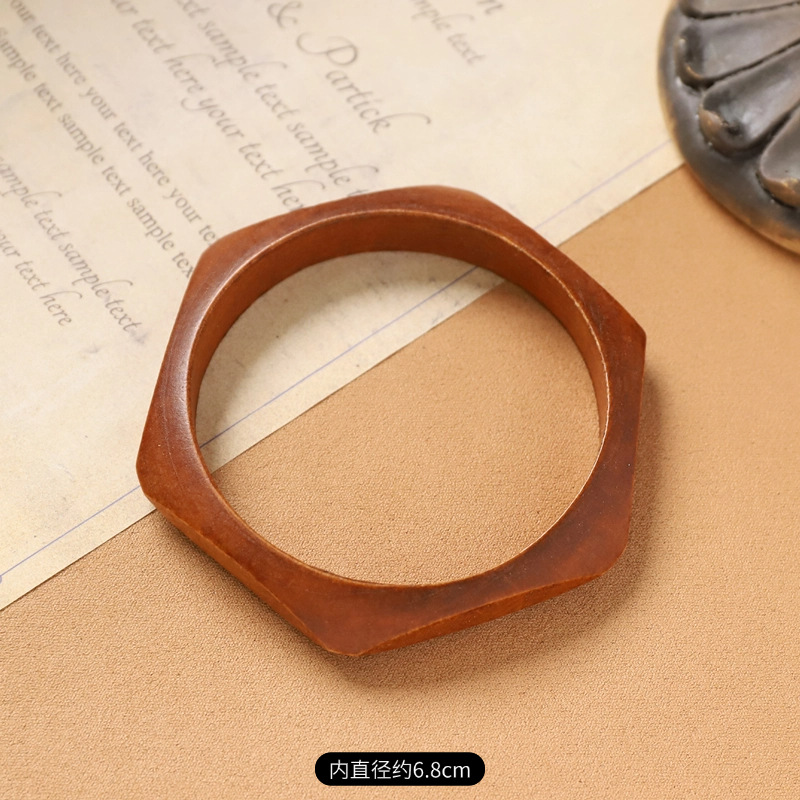 复古风宽面木质手镯小众高级感气质民族风夸张个性叠戴手环配饰女