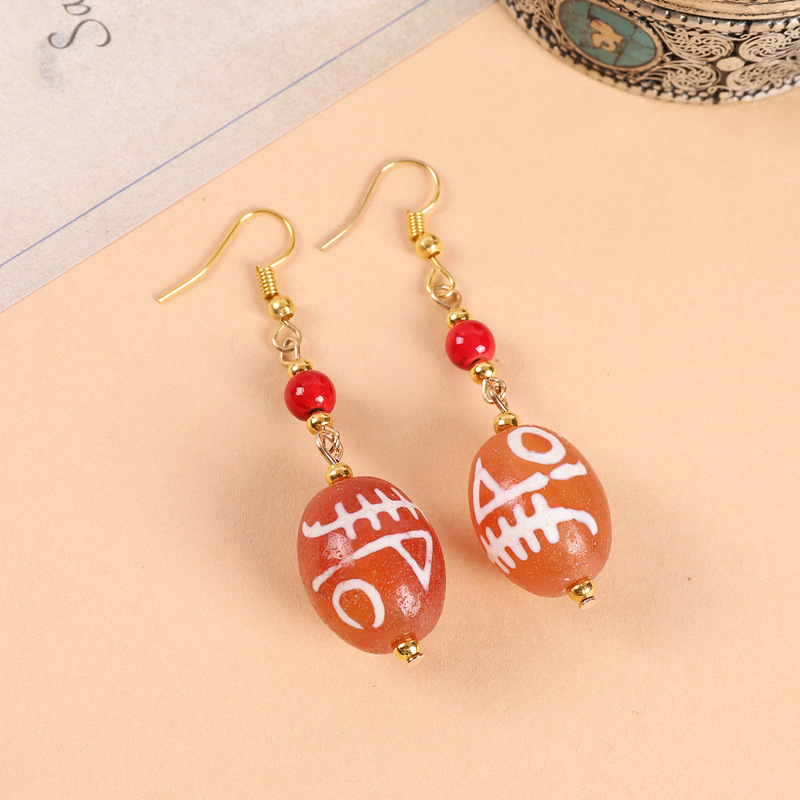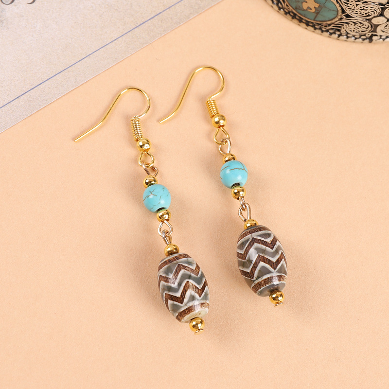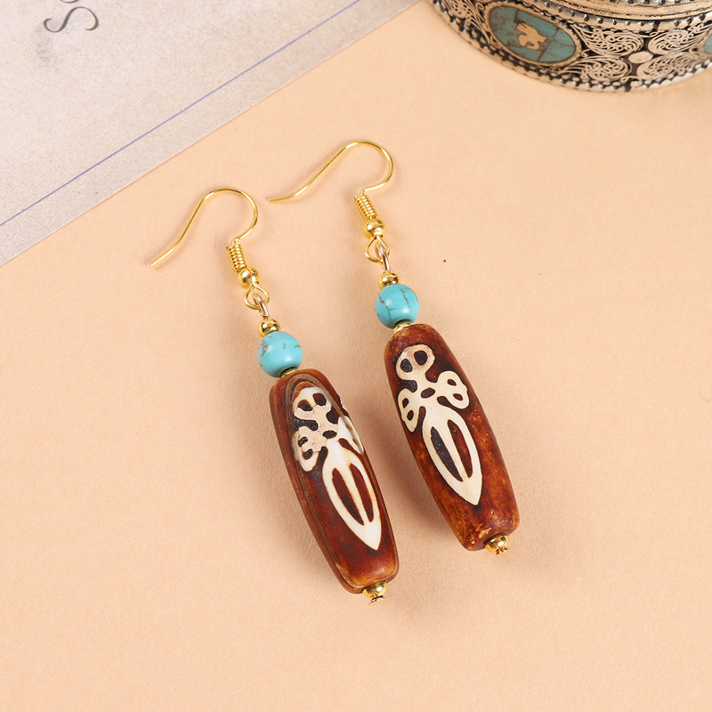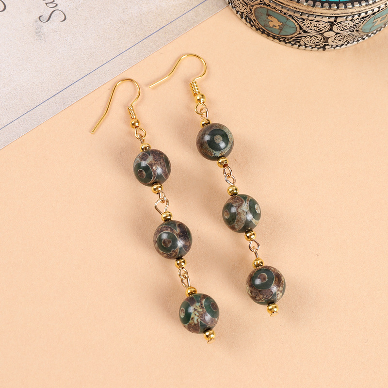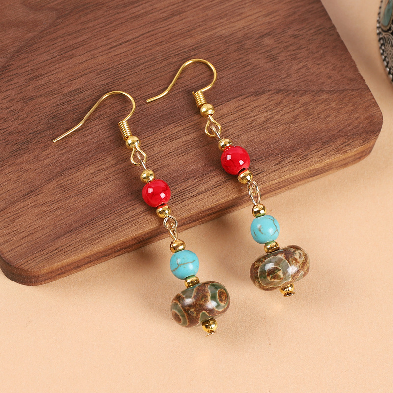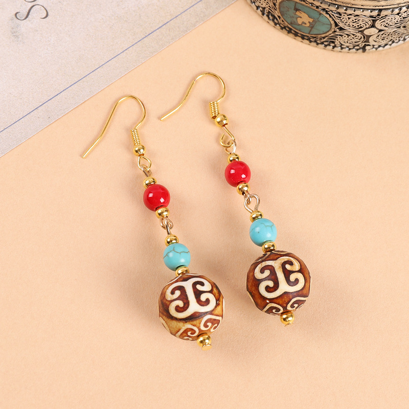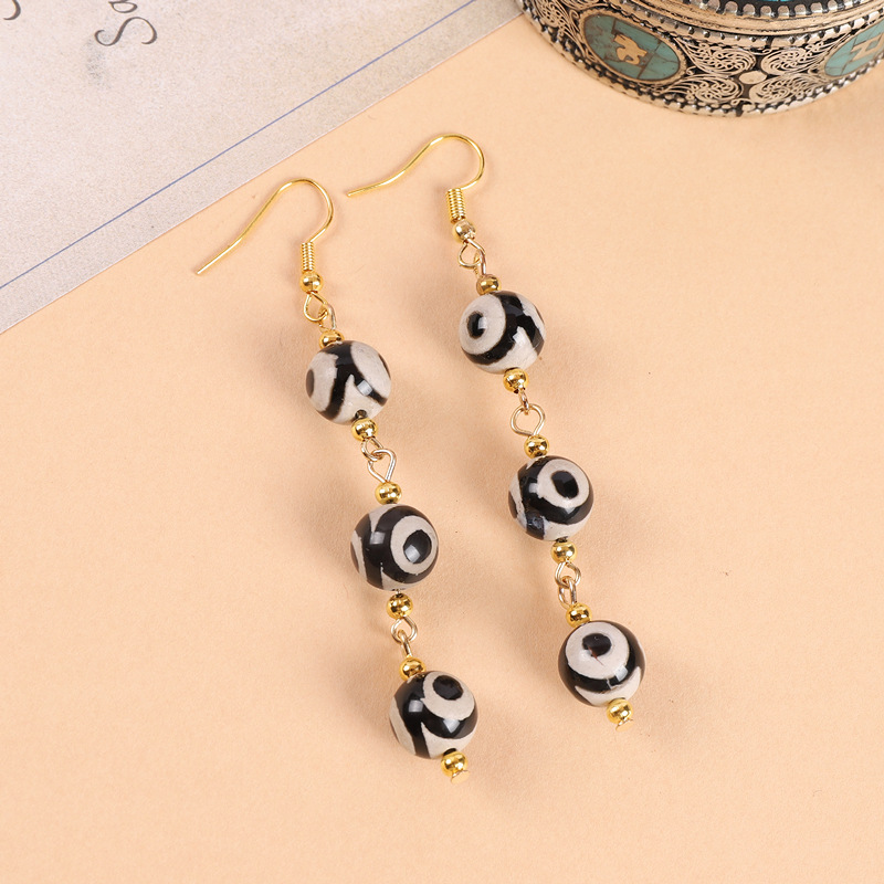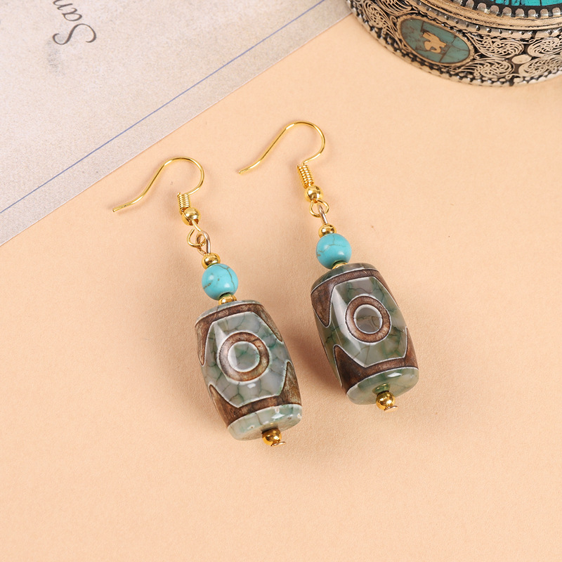 原创设计藏式九眼天珠玛瑙耳环民族风复古文艺虎牙耳坠中式耳饰女
