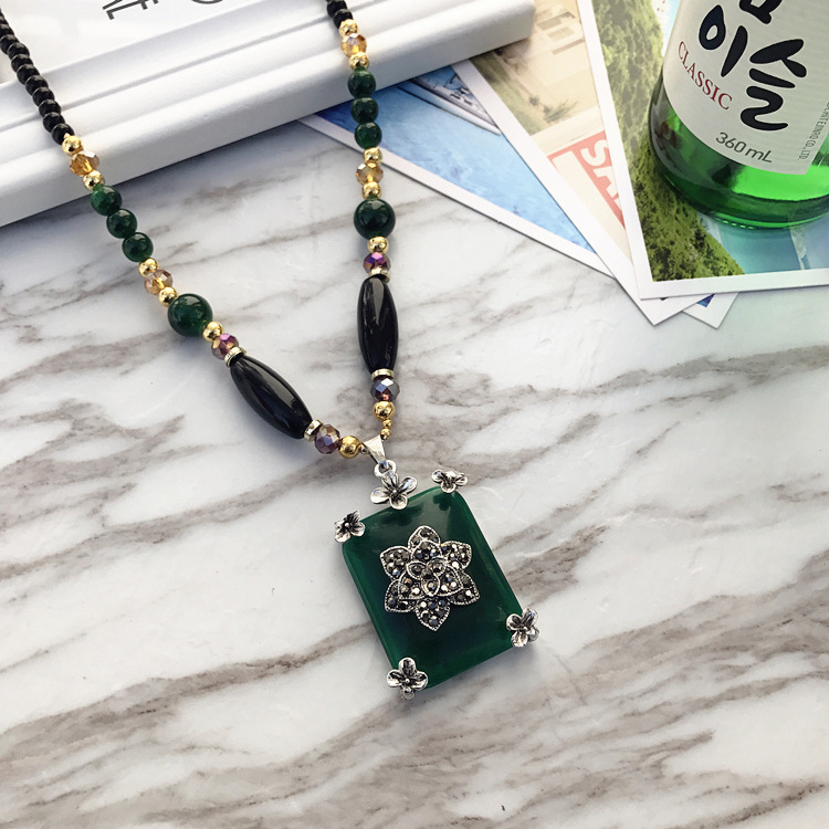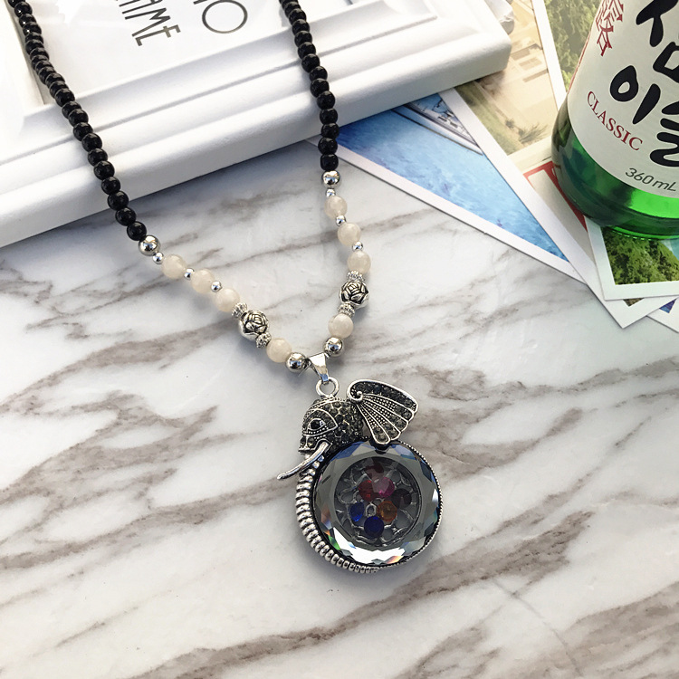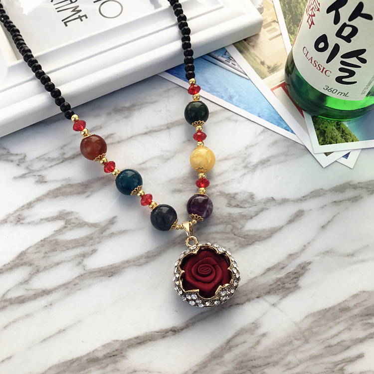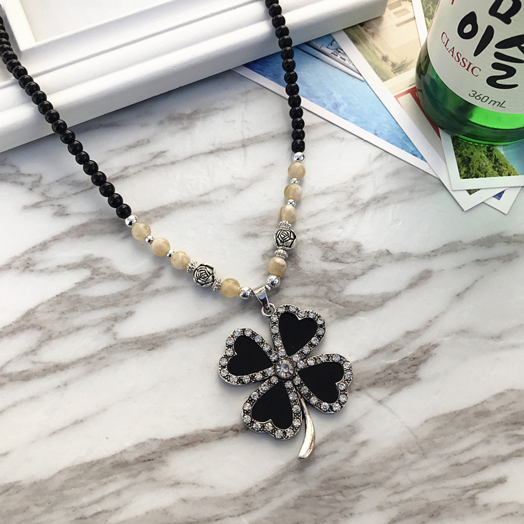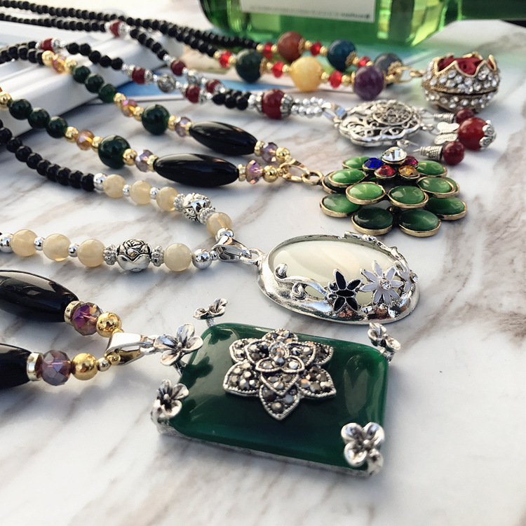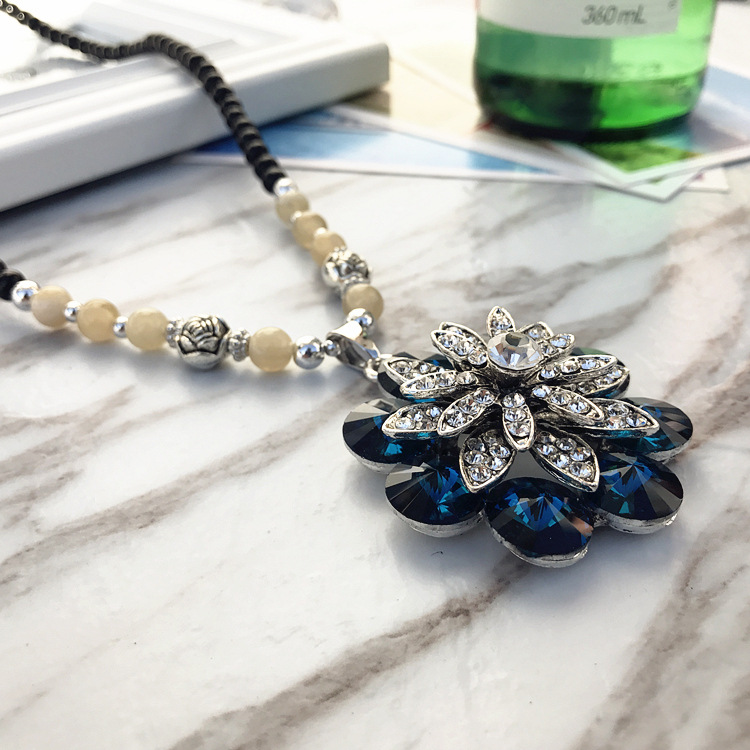 复古时尚猫眼石高档项链女民族风长款气质毛衣链花朵镶钻百搭配饰