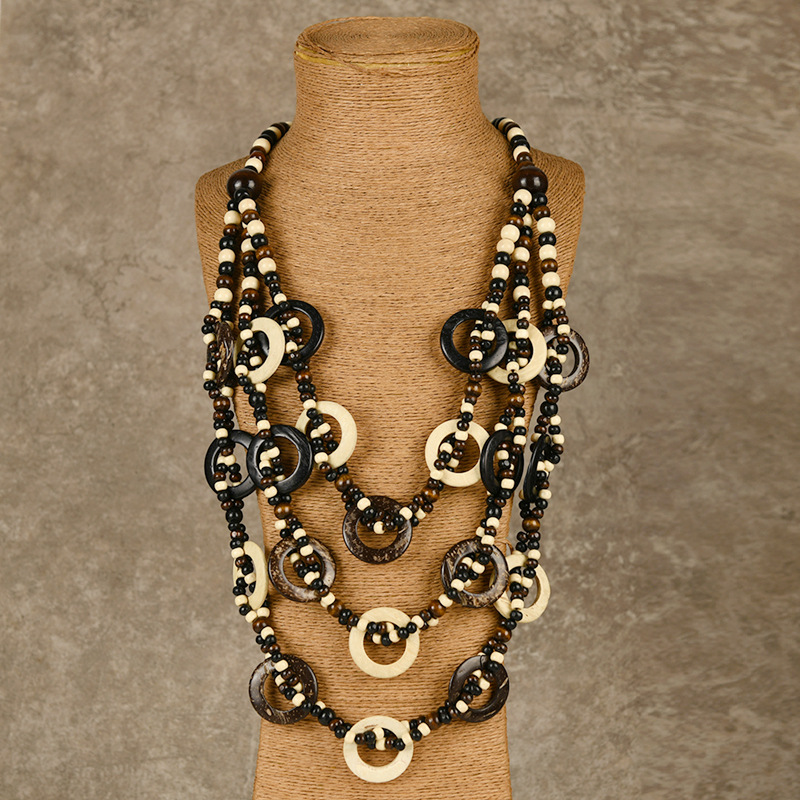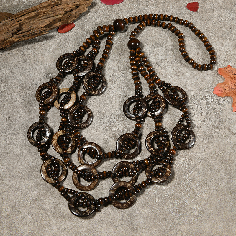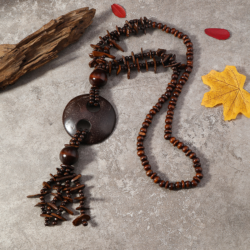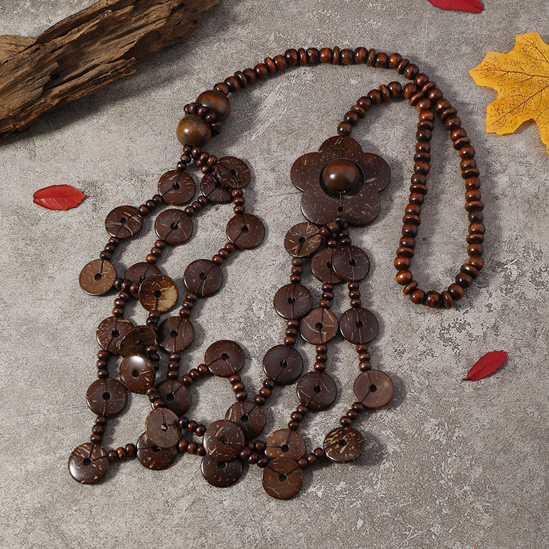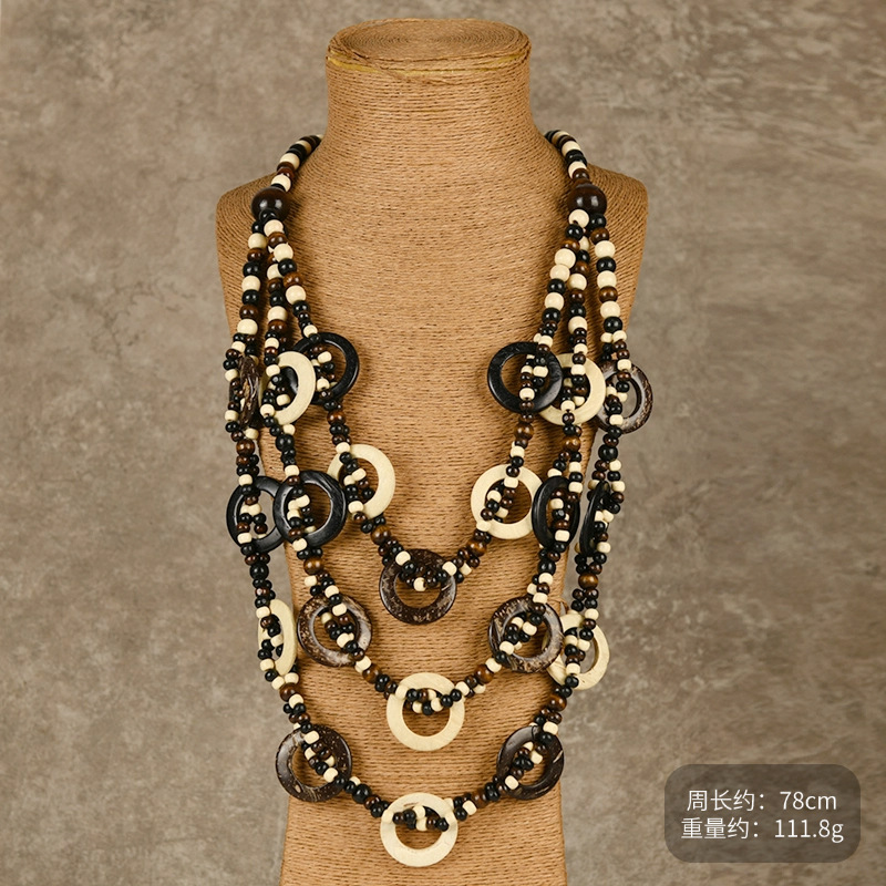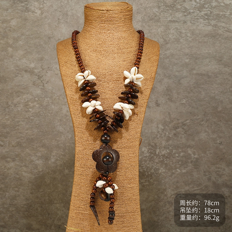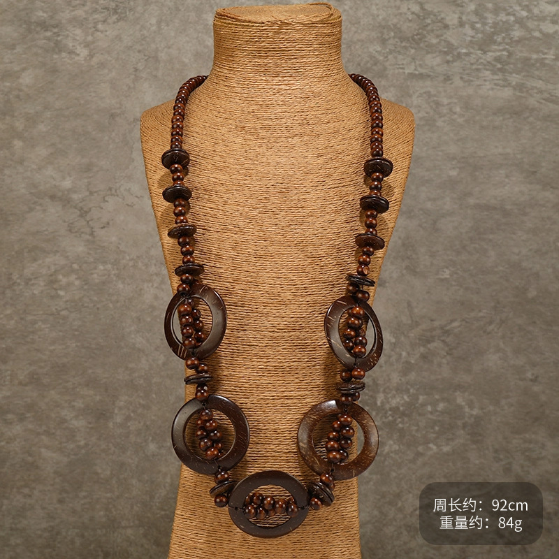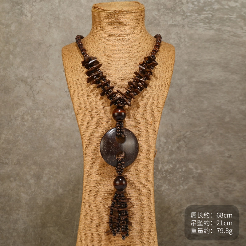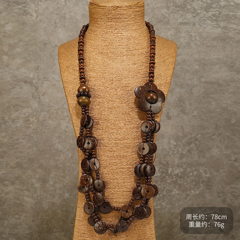 复古波西米亚民族风项链手工椰壳多层吊坠长毛衣链个性度假配饰女