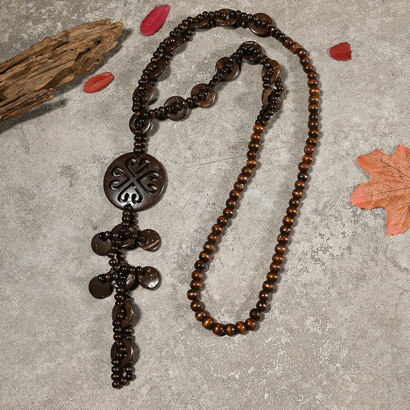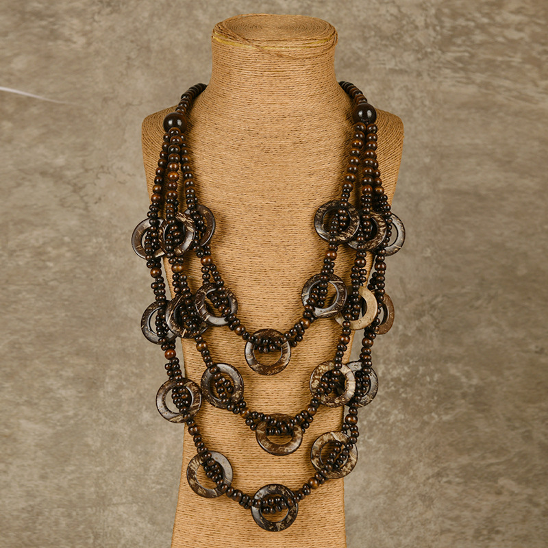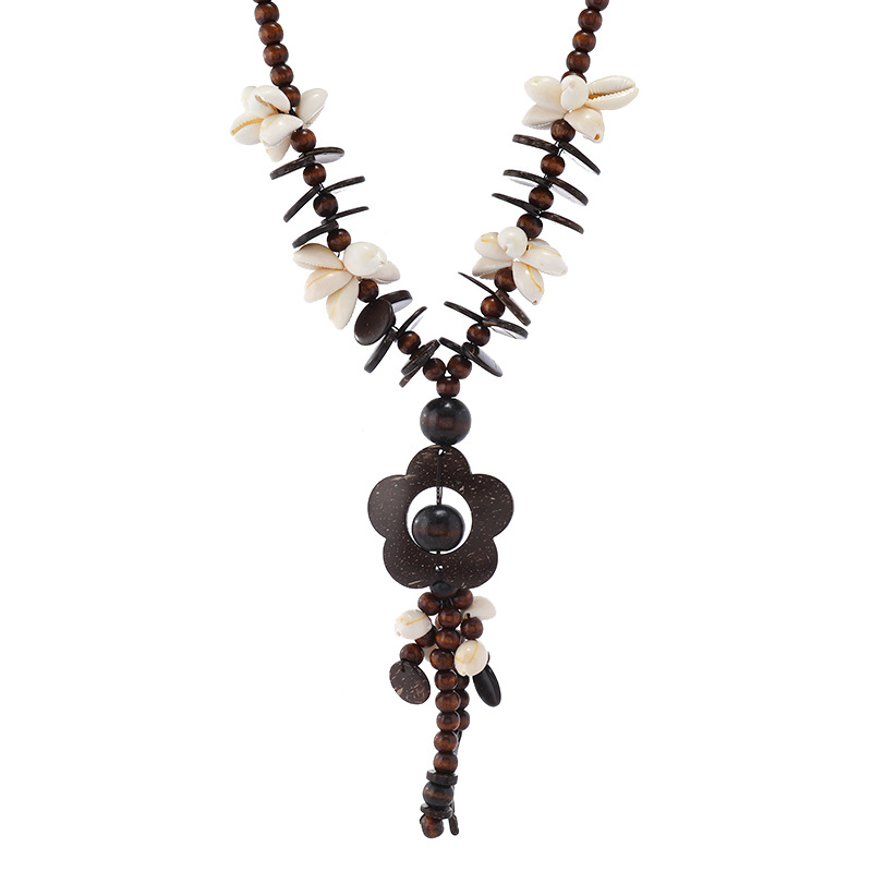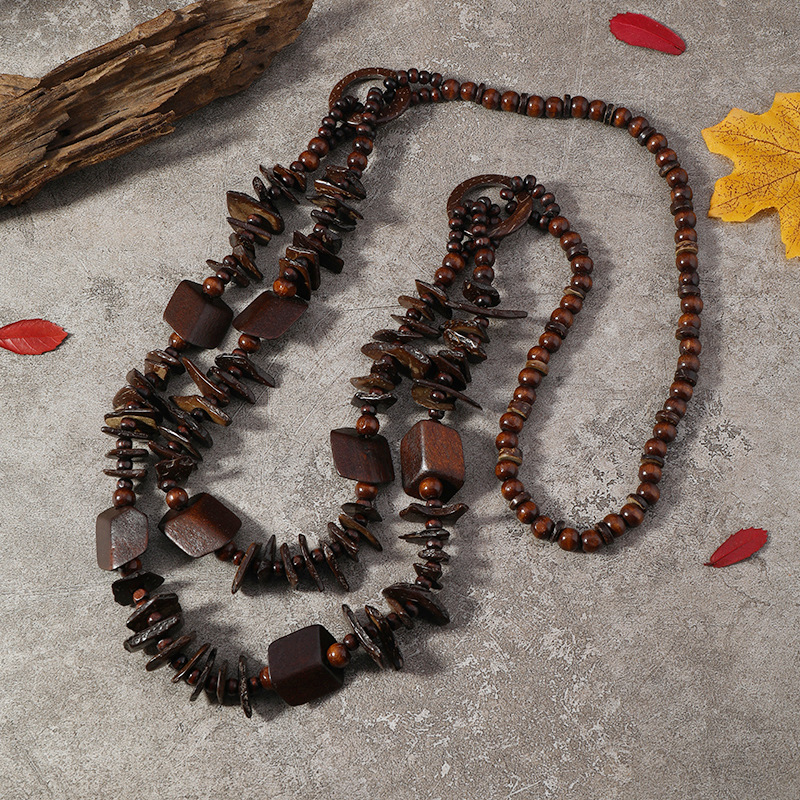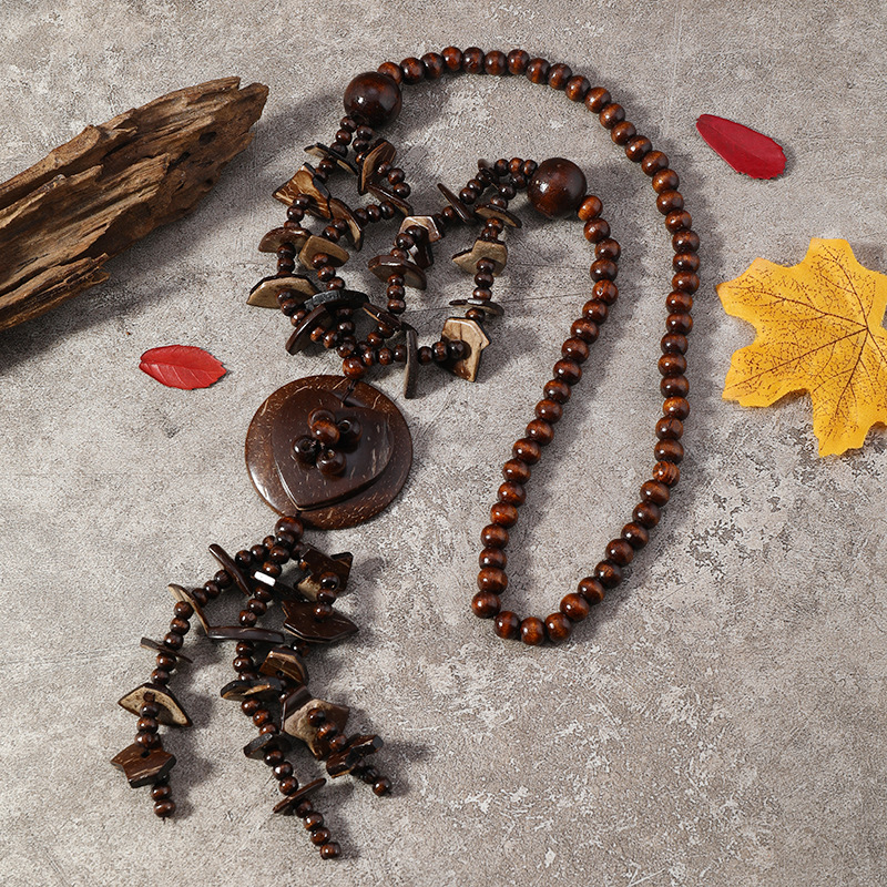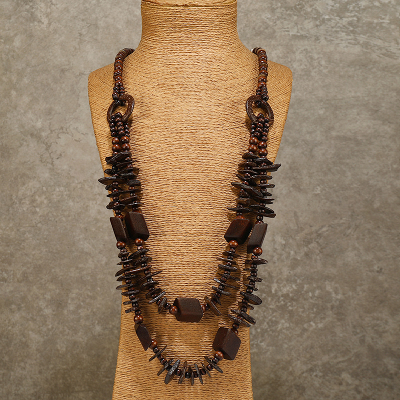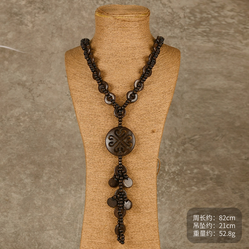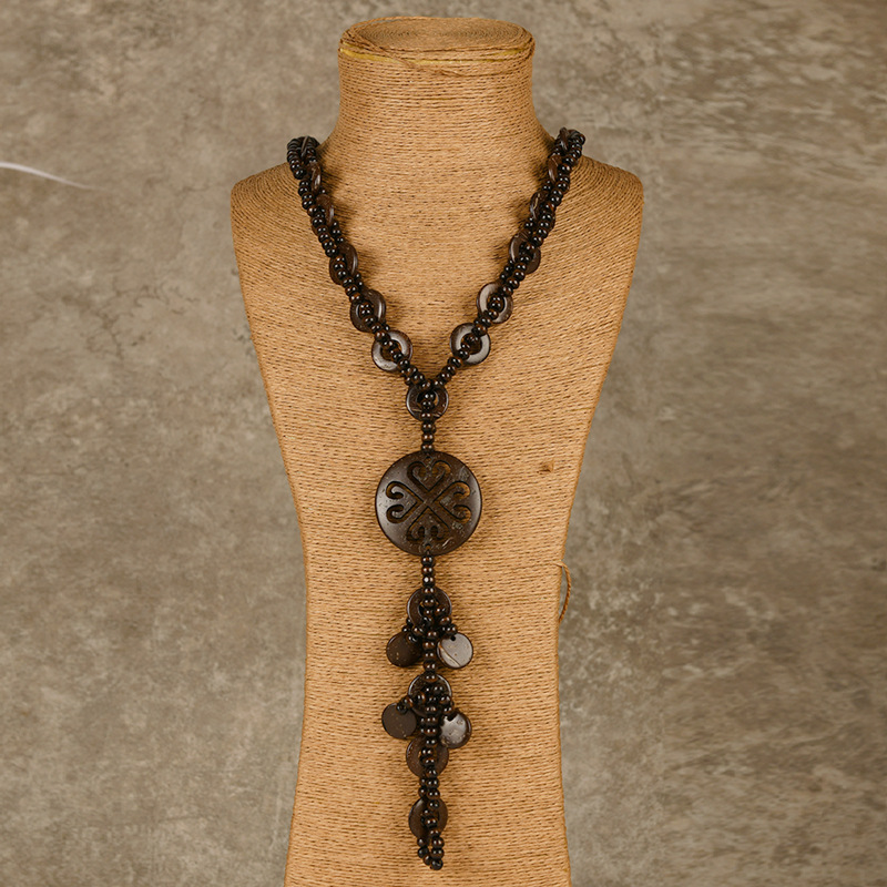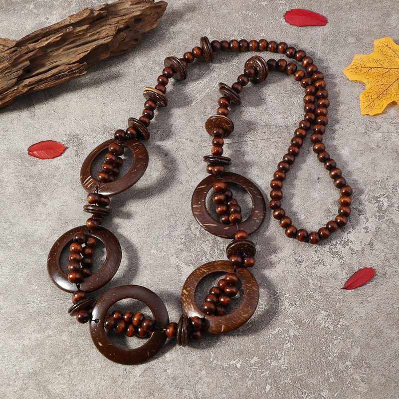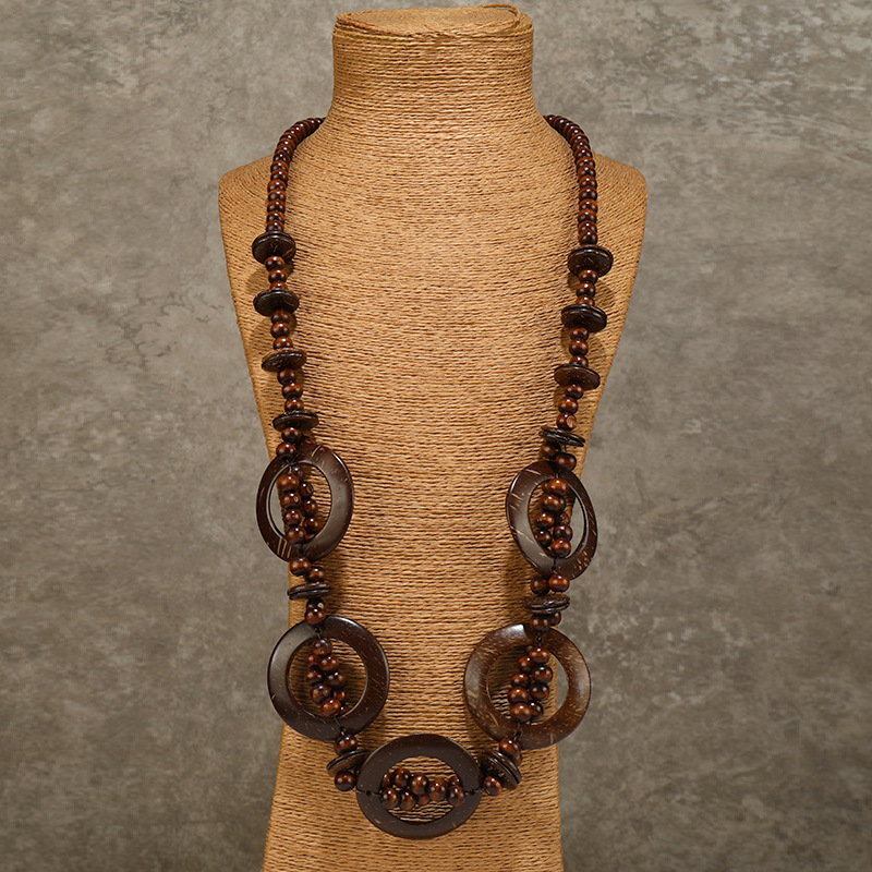 复古波西米亚民族风项链手工椰壳多层吊坠长毛衣链个性度假配饰女