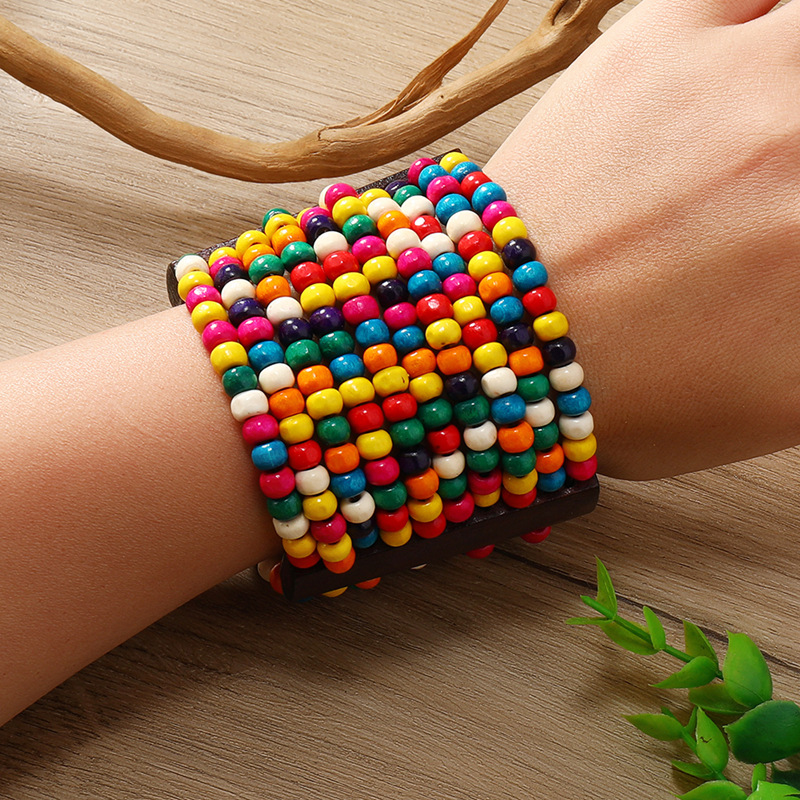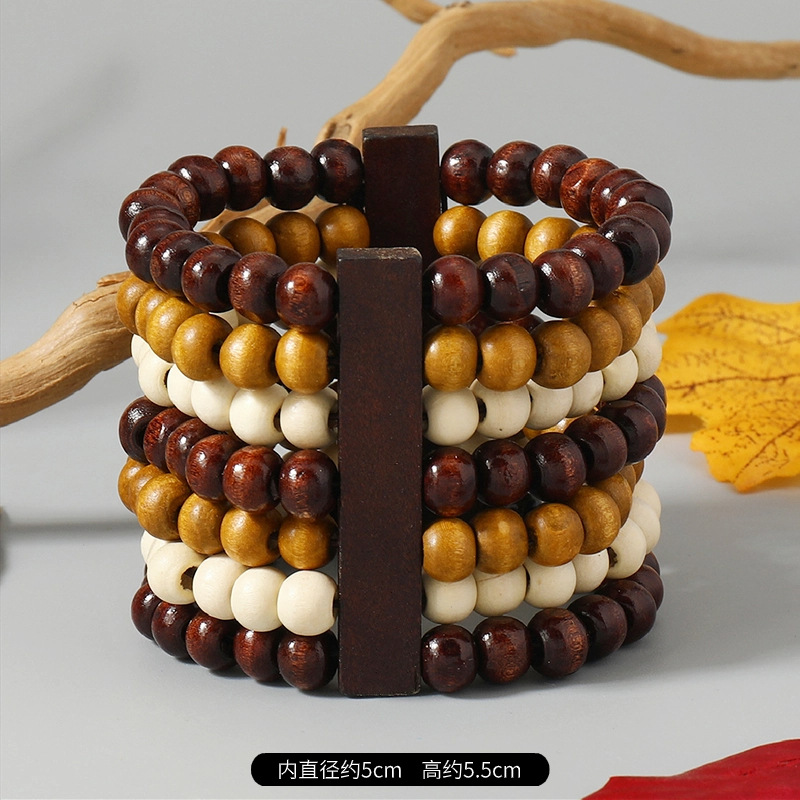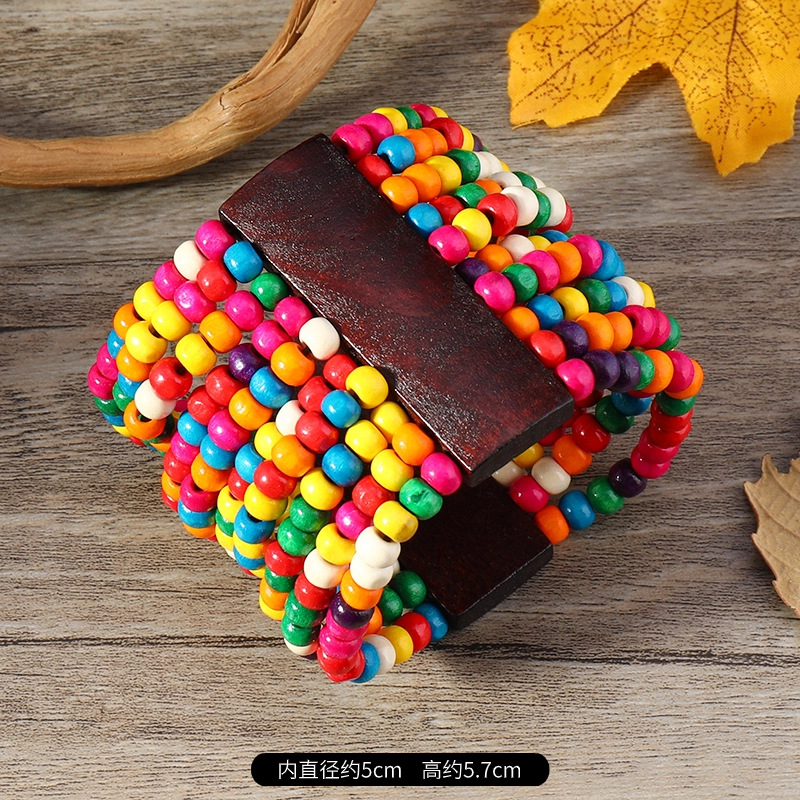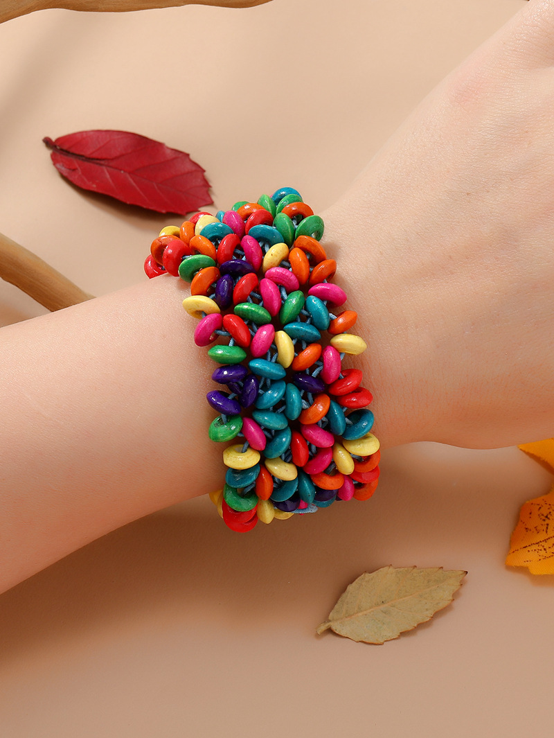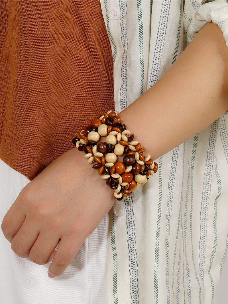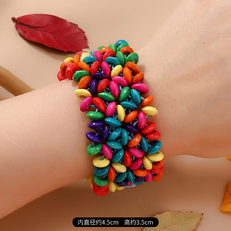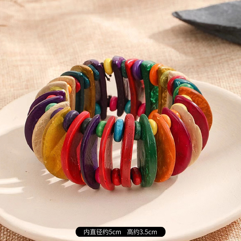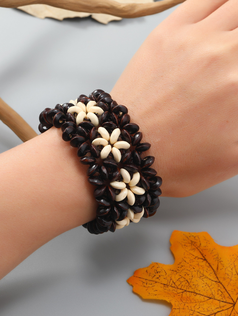 欧美手工串珠编织手链复古民族风椰壳木质手串波西米亚度假手镯女