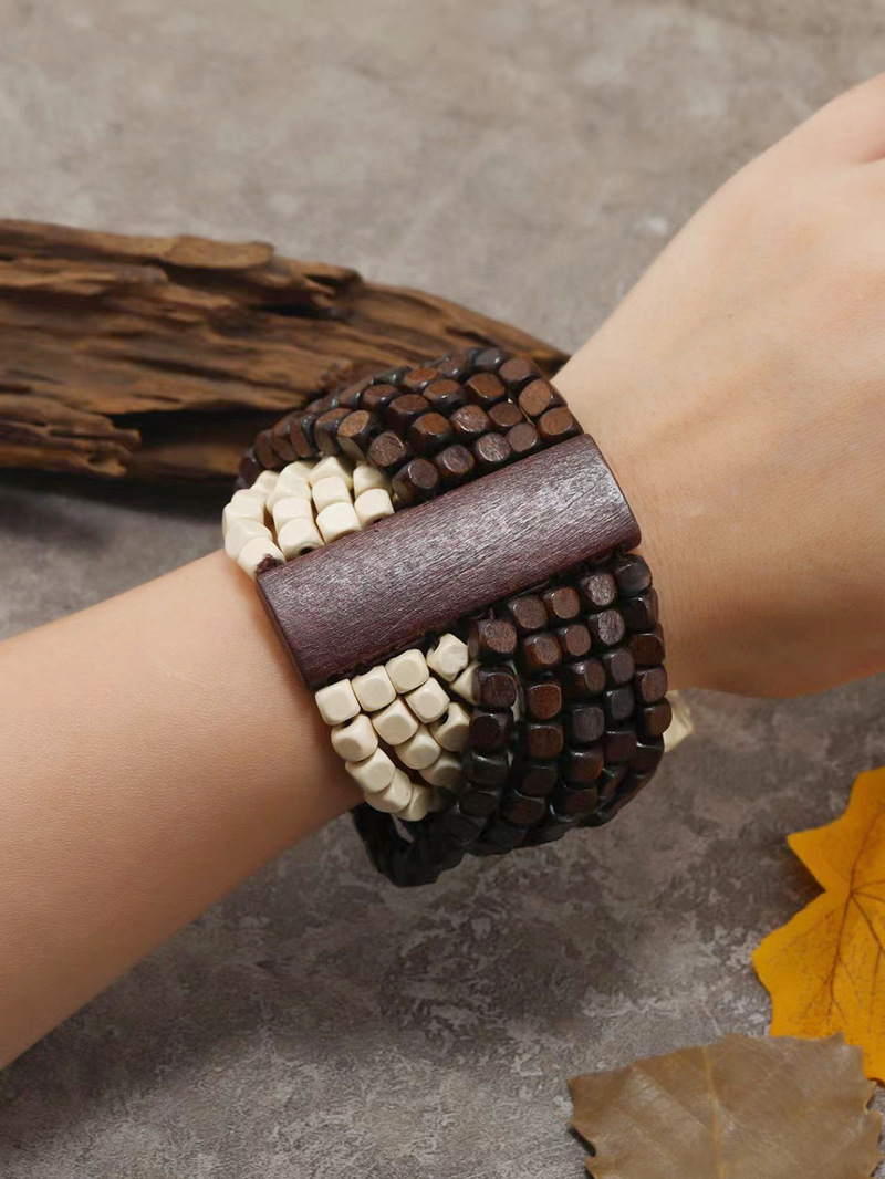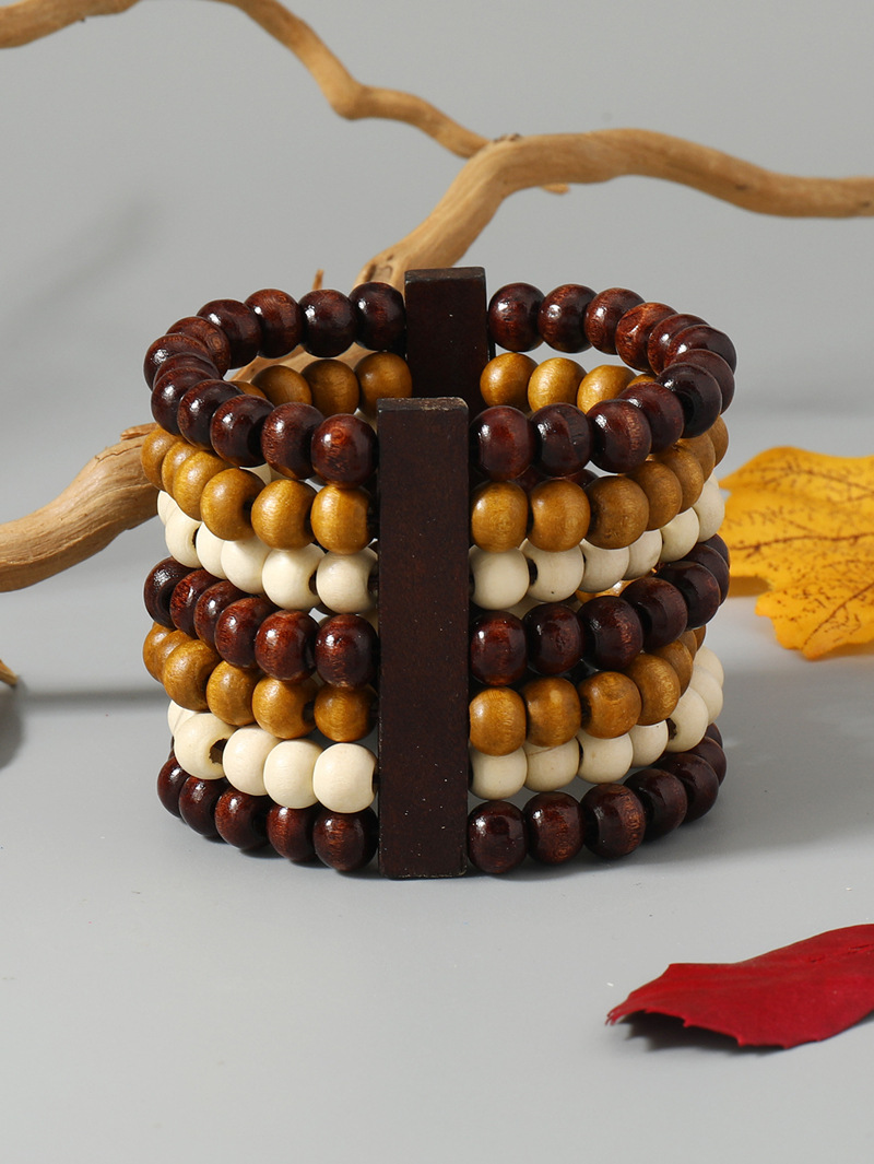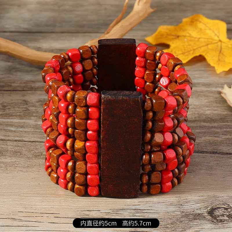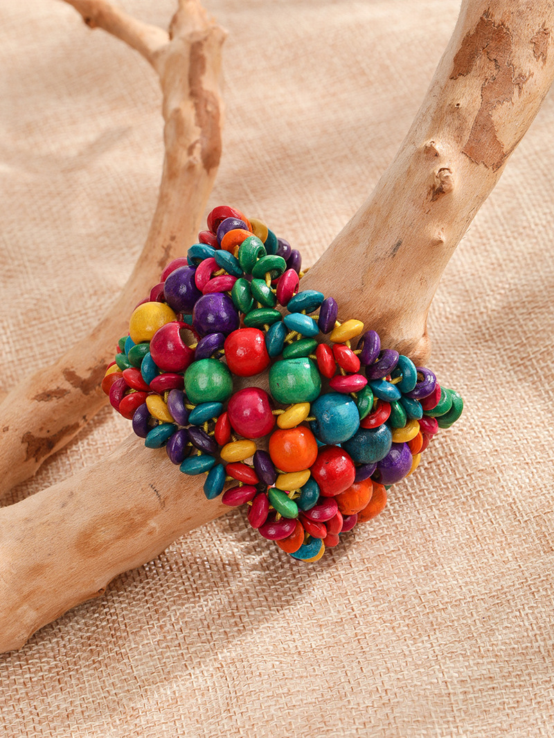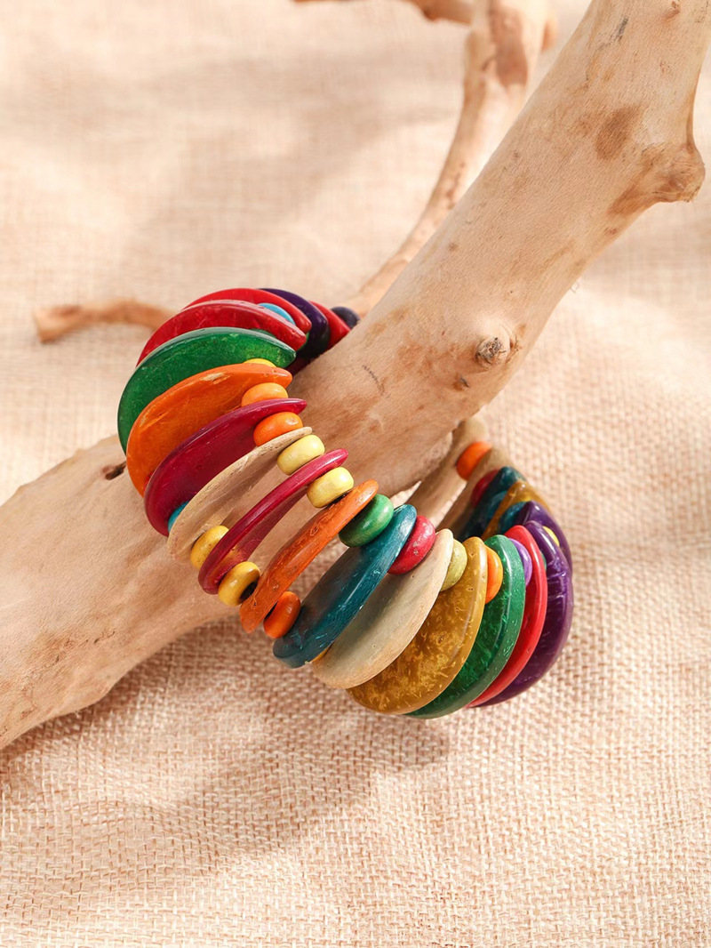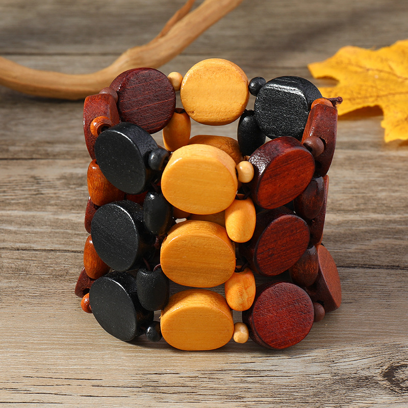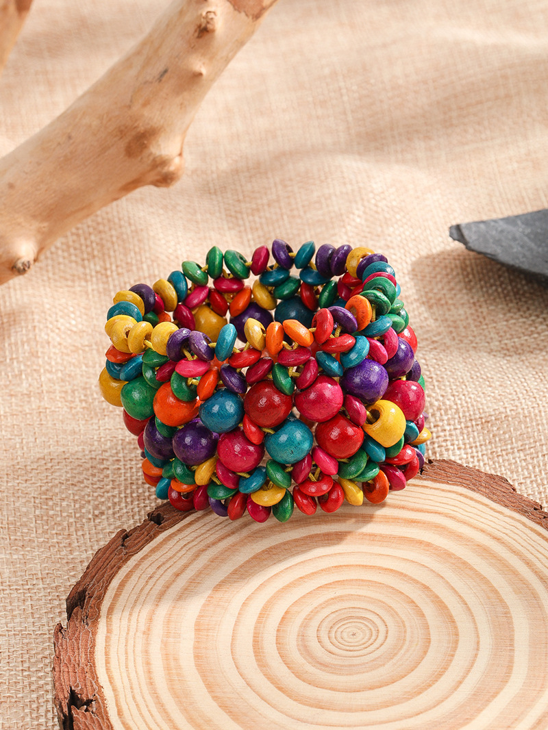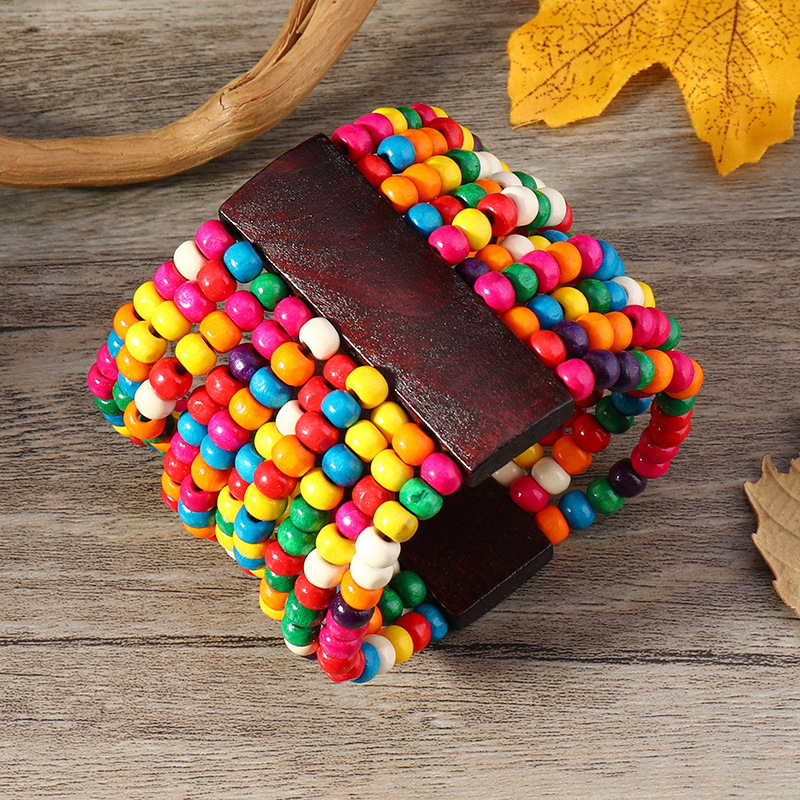 欧美手工串珠编织手链复古民族风椰壳木质手串波西米亚度假手镯女