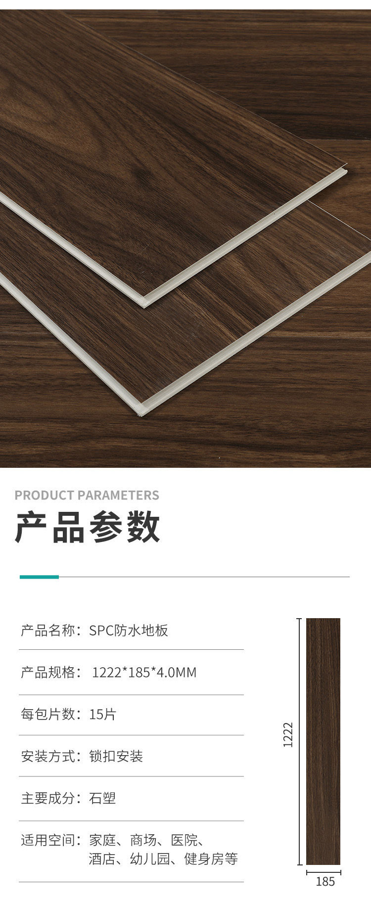 木纹系列SPC石塑卡扣酒店公寓室内防水防火加厚耐磨专用地板