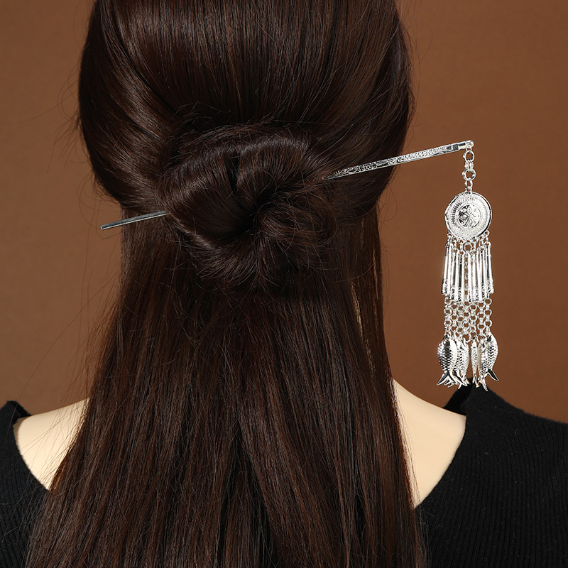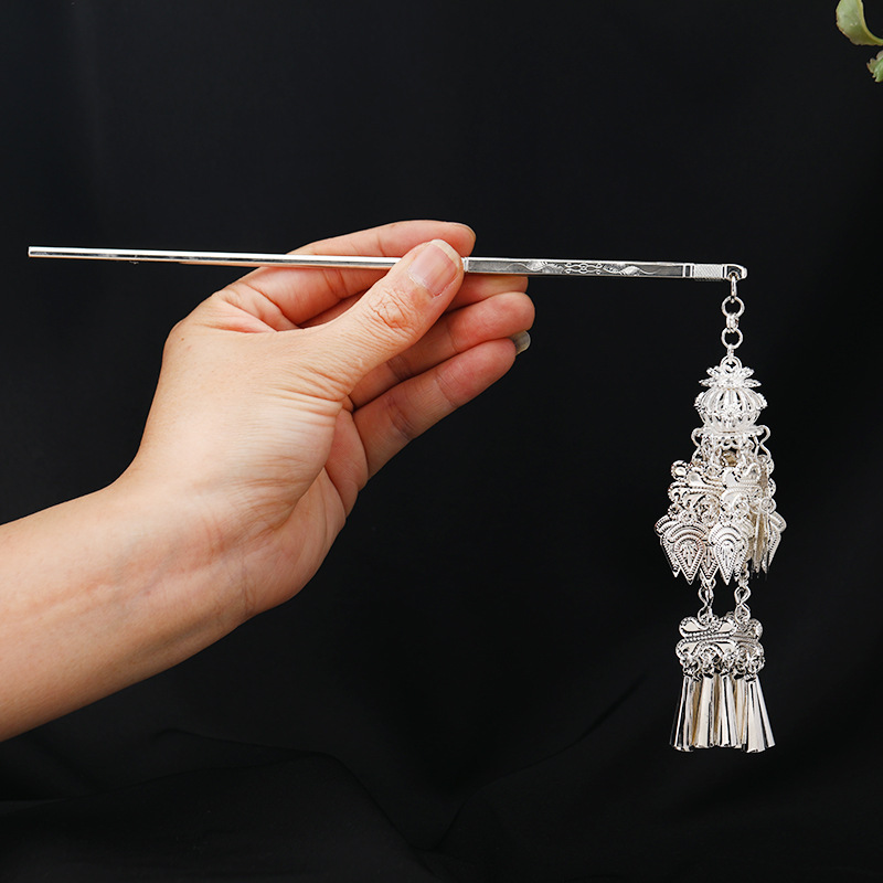 苗族手工苗银发簪少数民族风复古步摇流苏簪子发钗古风宫廷头饰女