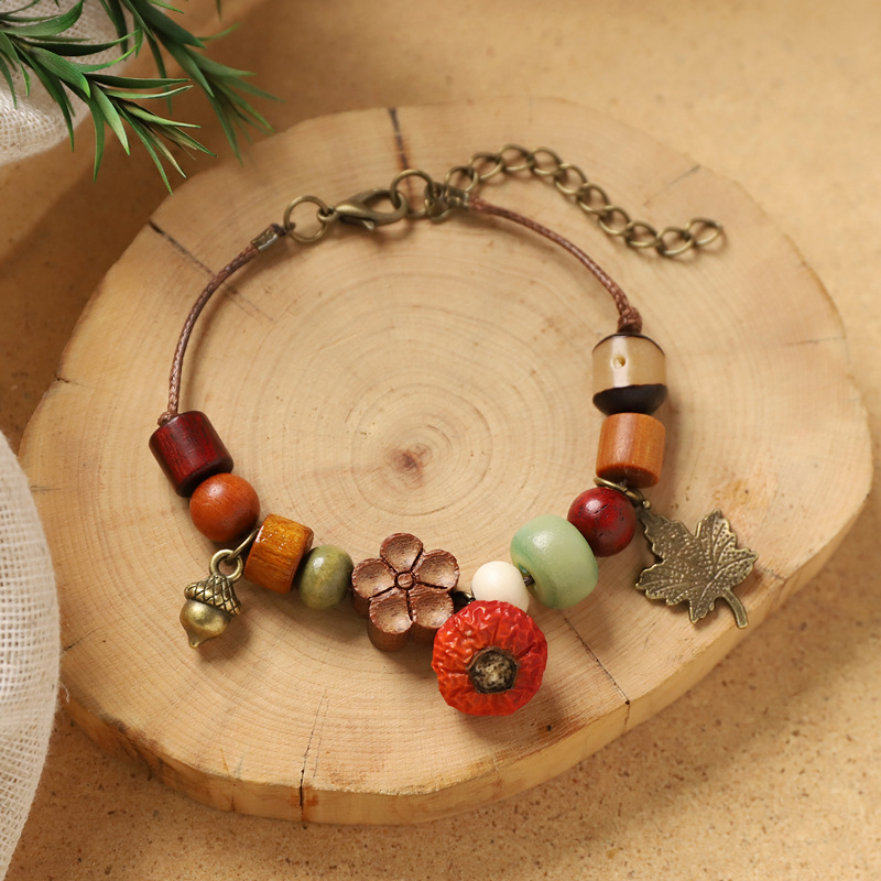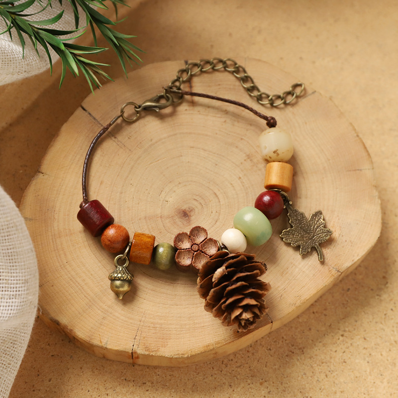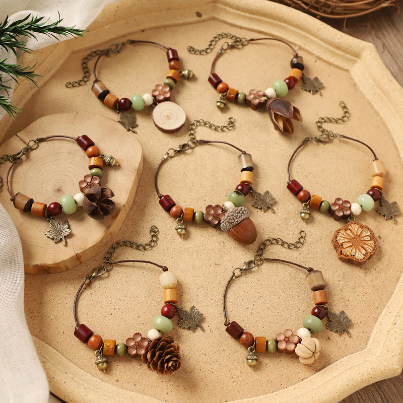 复古森系手工编织植物手链天然果实橡果手绳女小众文艺民族风手串