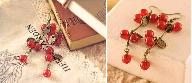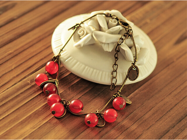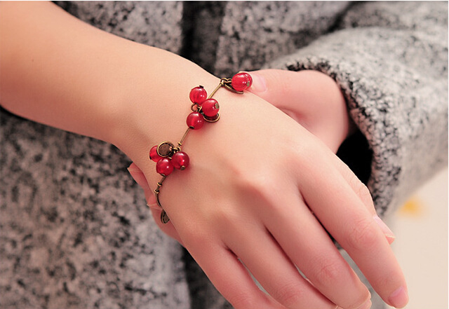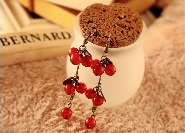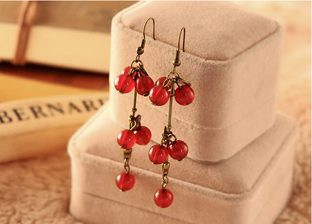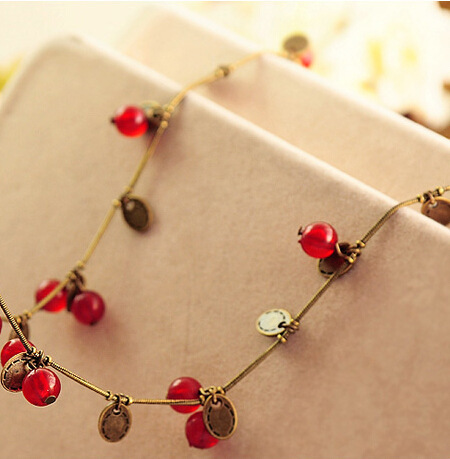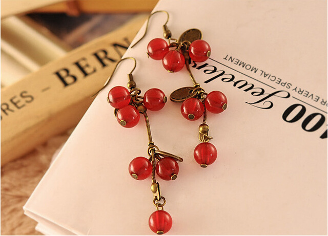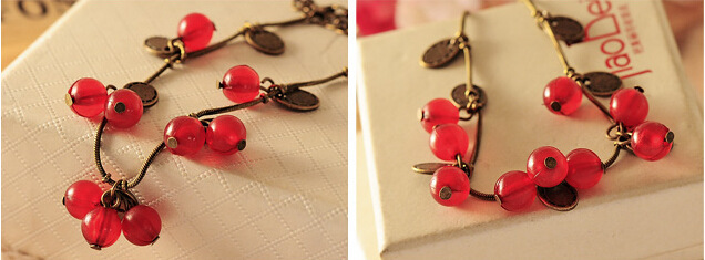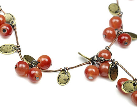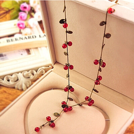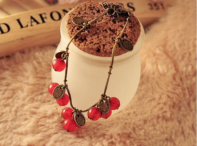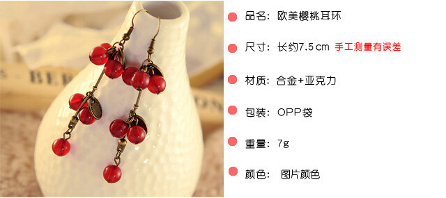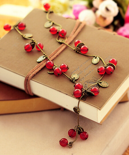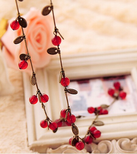 韩版复古森林少女系波西米亚樱桃项链甜美时尚红樱桃手链耳环套装