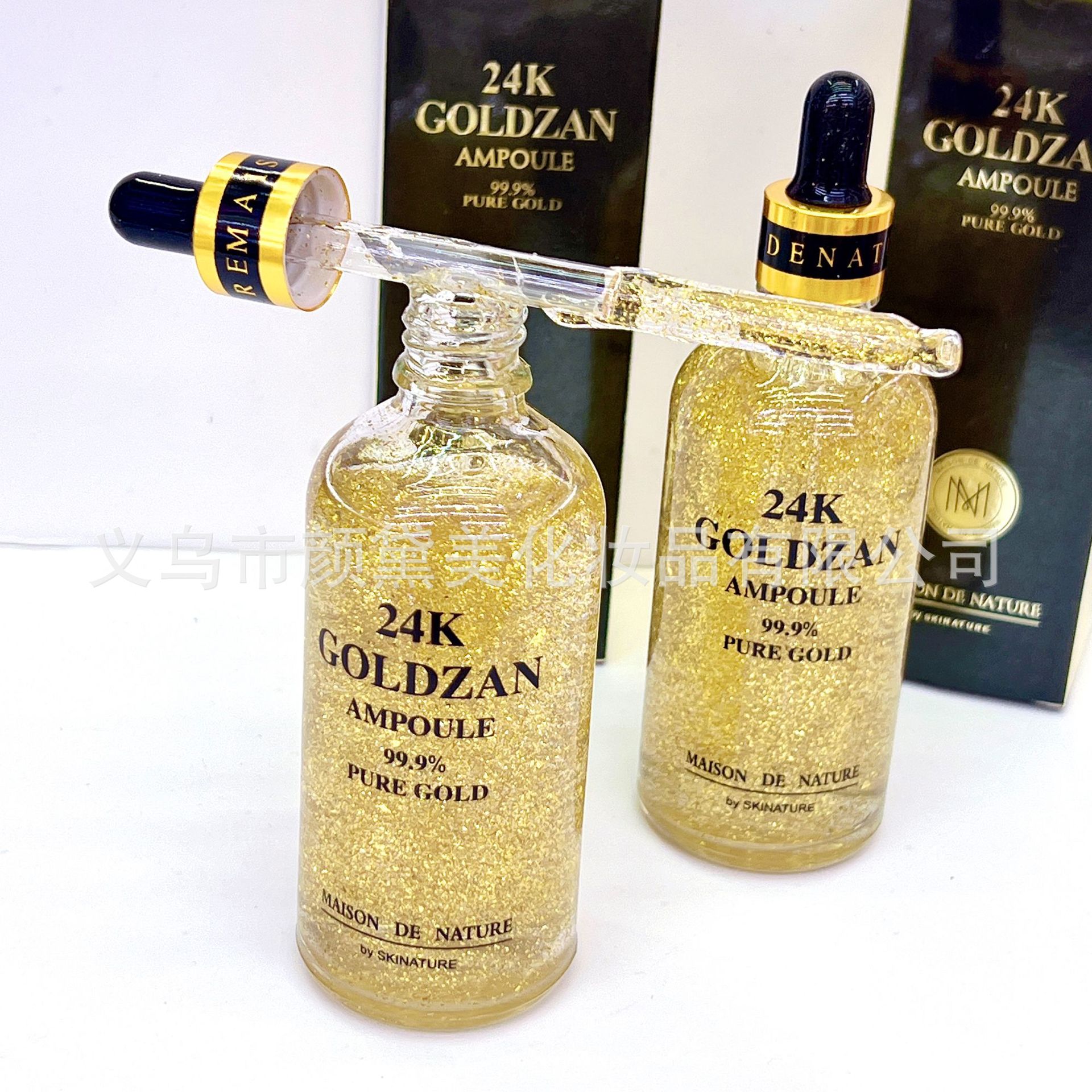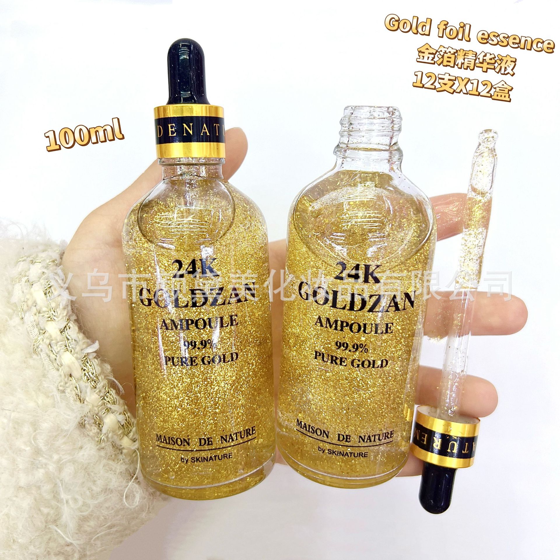 跨境热销24K金精华液补水保湿黄金箔精华液收缩毛孔原液提亮肤色