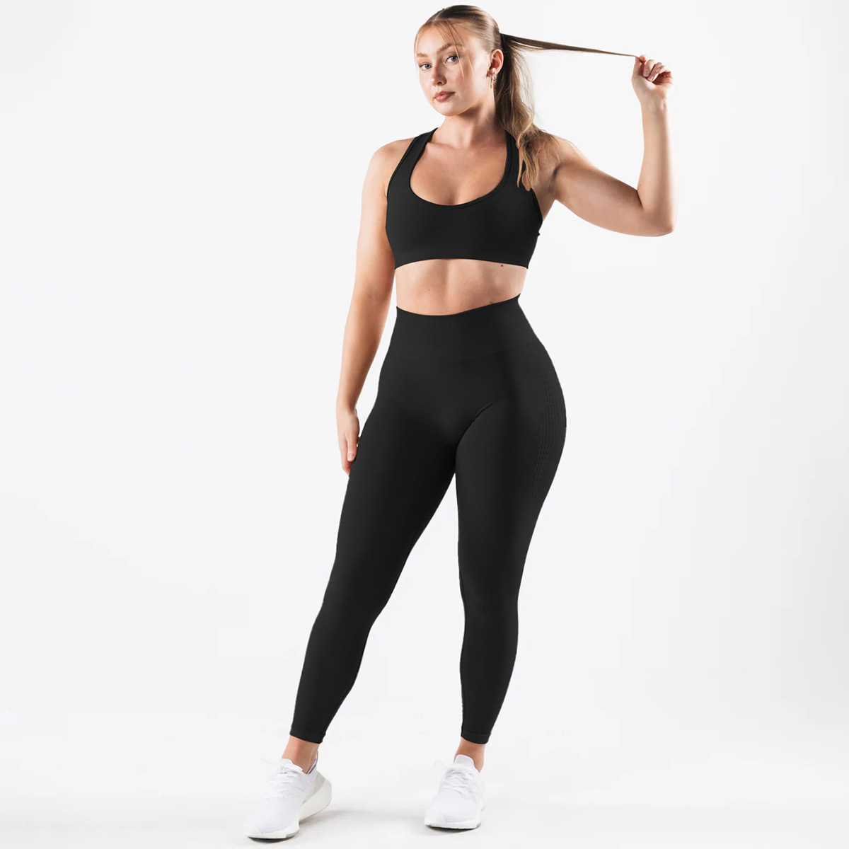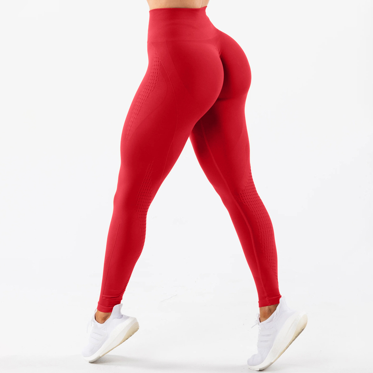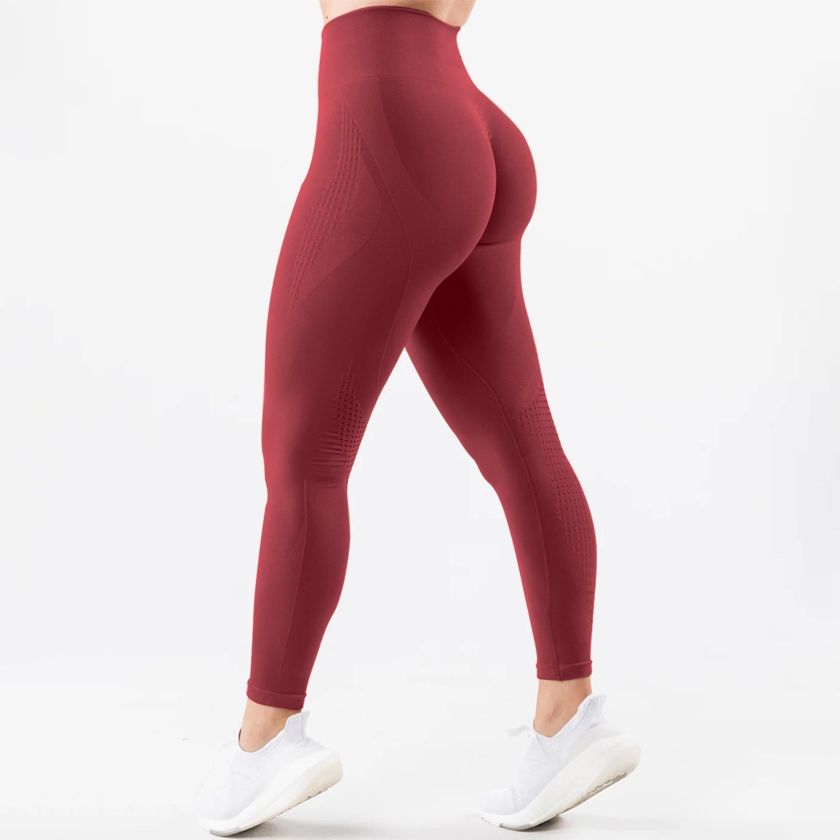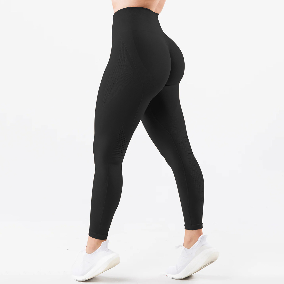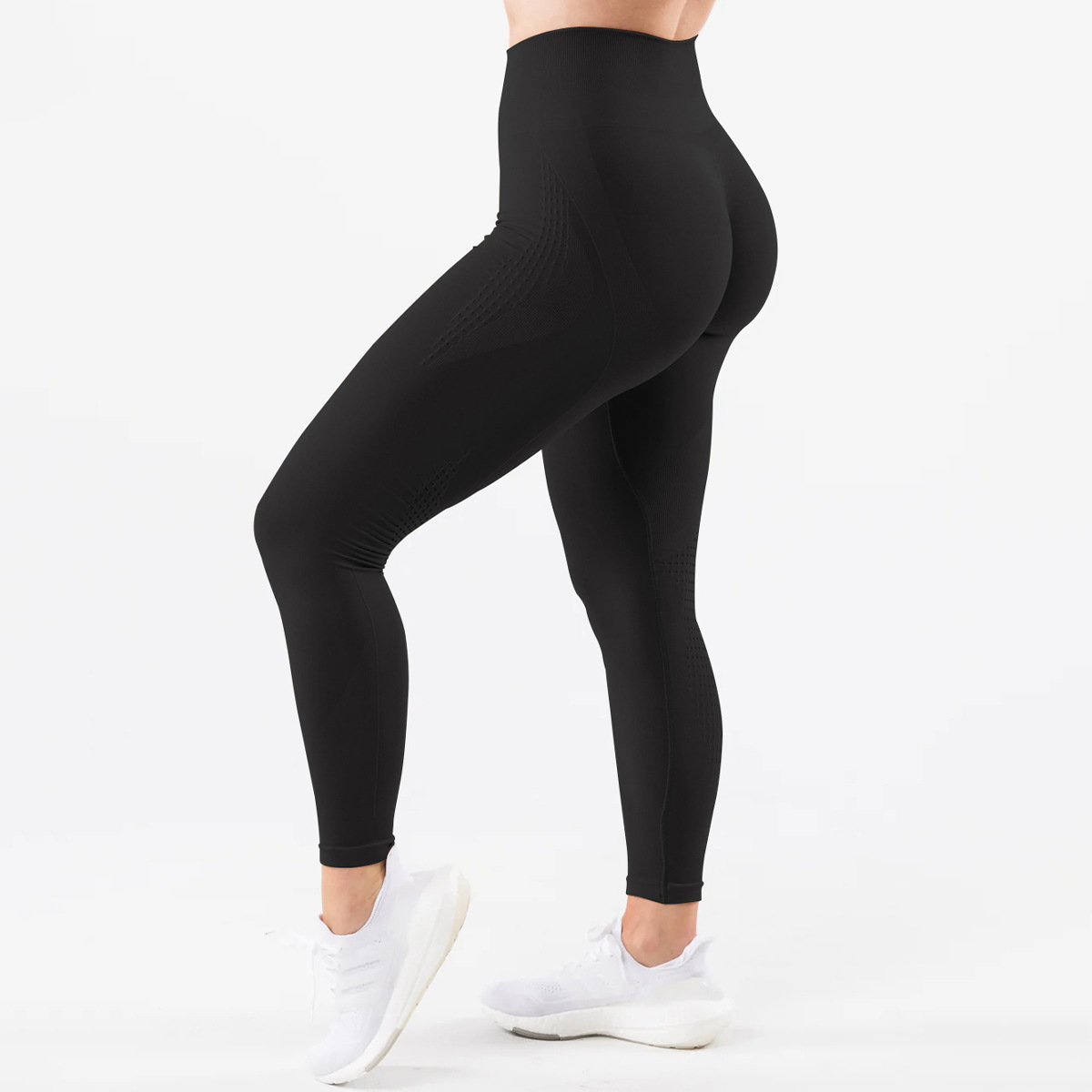 亚马逊 无缝阳离子瑜伽裤女高腰收腹提花运动跑步美体健身九分裤